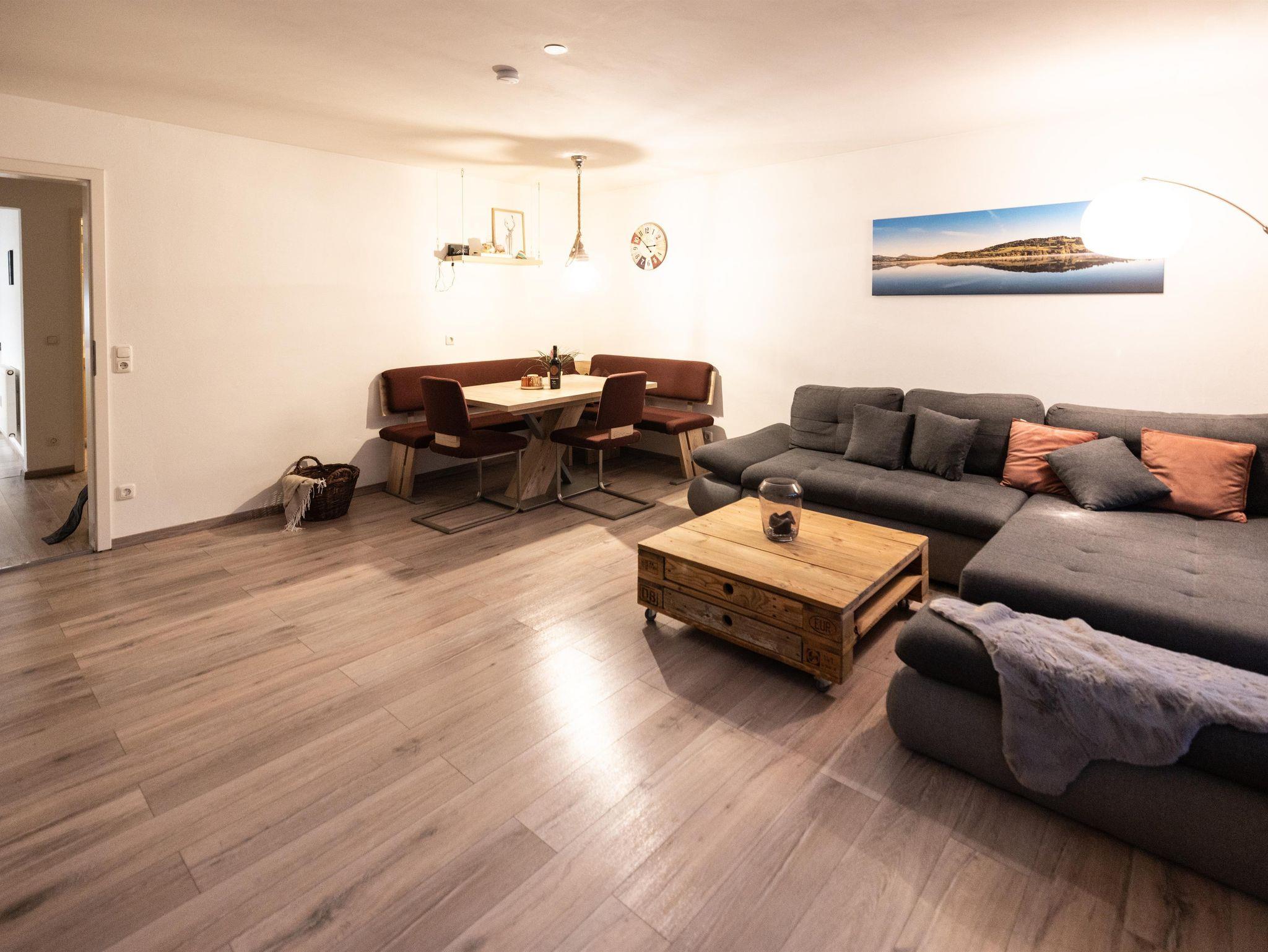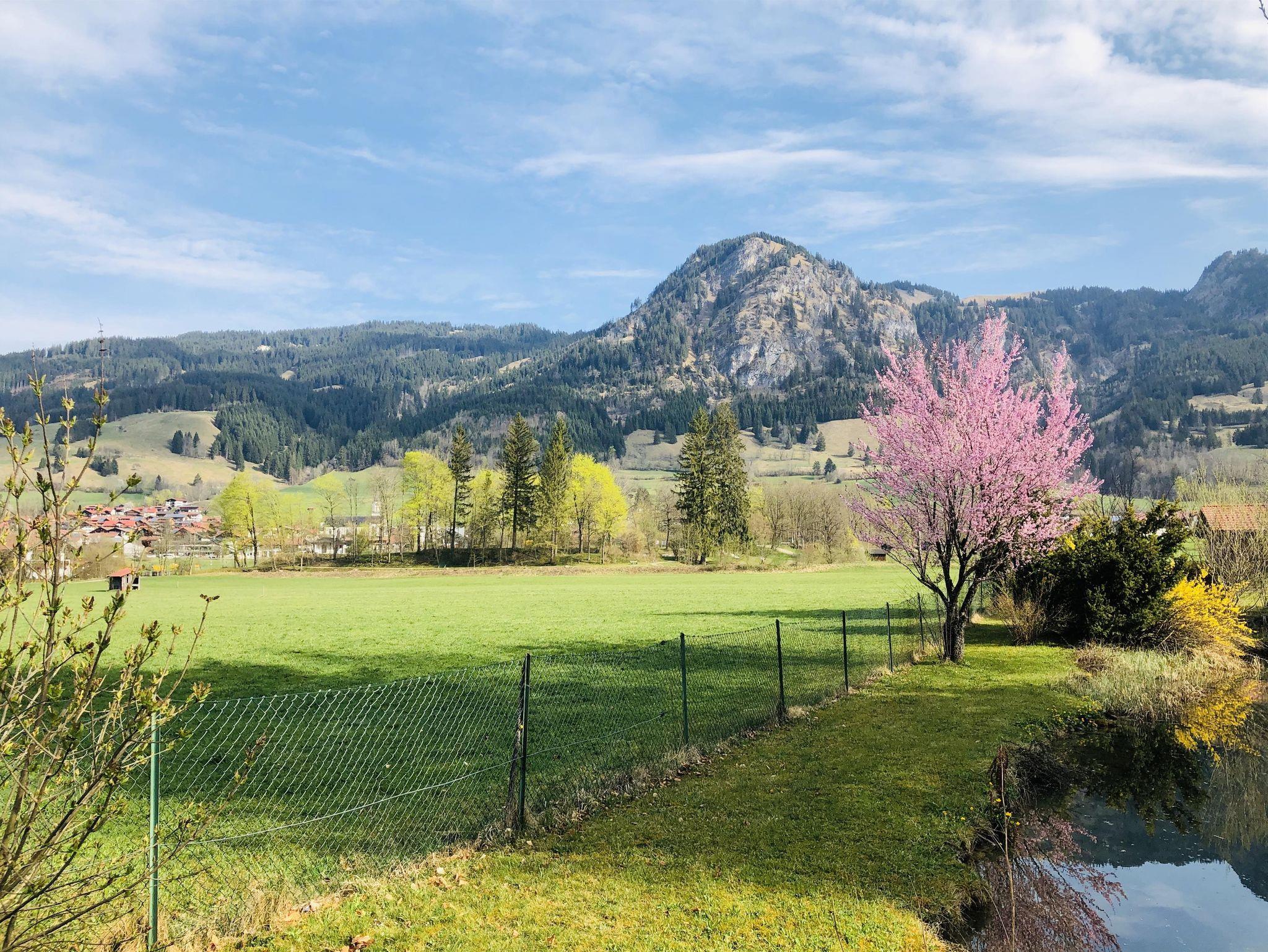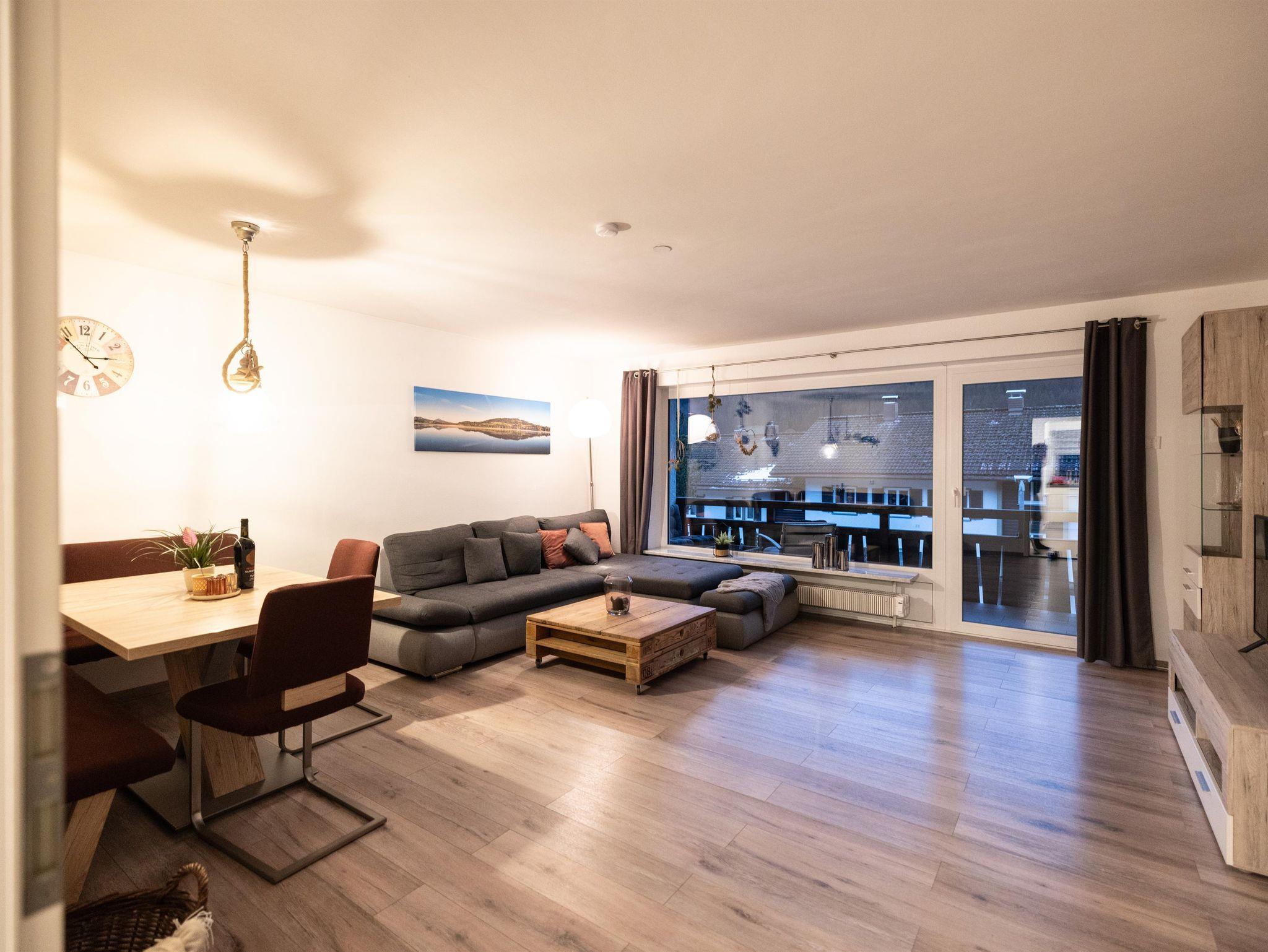 Gemütliche Ferienwohnung mit großzügigem Wohn-/Essbereich und direktem Zugang zum Südbalkon. Herrlicher Blick in die Hindelanger Bergwelt und die umliegende Natur.