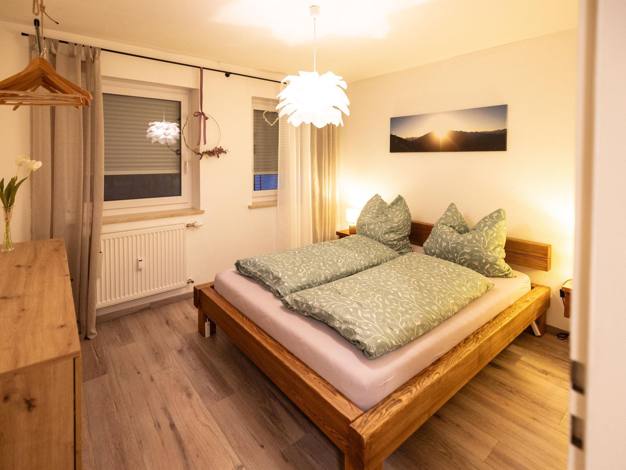 Fewo Alpentraum: Eine Ruheoase fürs Herz Stellen Sie sich vor, Sie wachen in der Fewo Alpentraum auf und genießen den atemberaubenden Ausblick auf die majestätischen Allgäuer Alpen. Die große Fensterfront Richtung Süden erhellt Ihr Urlaubsdomizil und lässt die Schönheit der Natur direkt in Ihr Zimmer strömen. Der Südbalkon lädt dazu ein, jeden Sonnenstrahl in vollen Zügen zu genießen – perfekt für entspannte Stunden mit Blick auf die umliegenden Berge.
