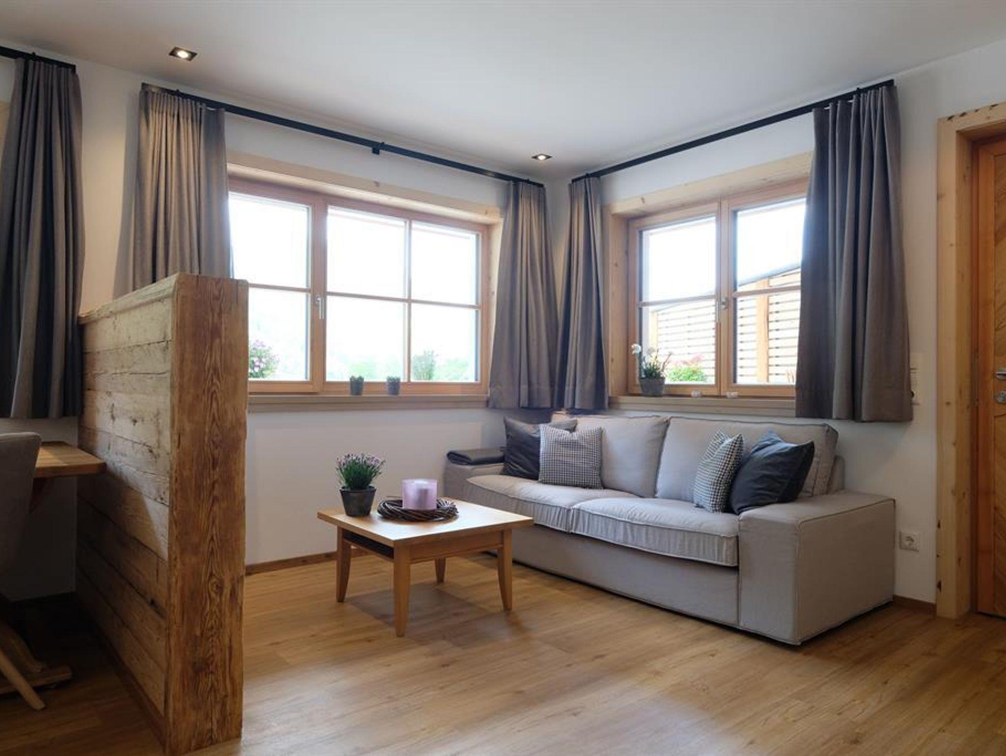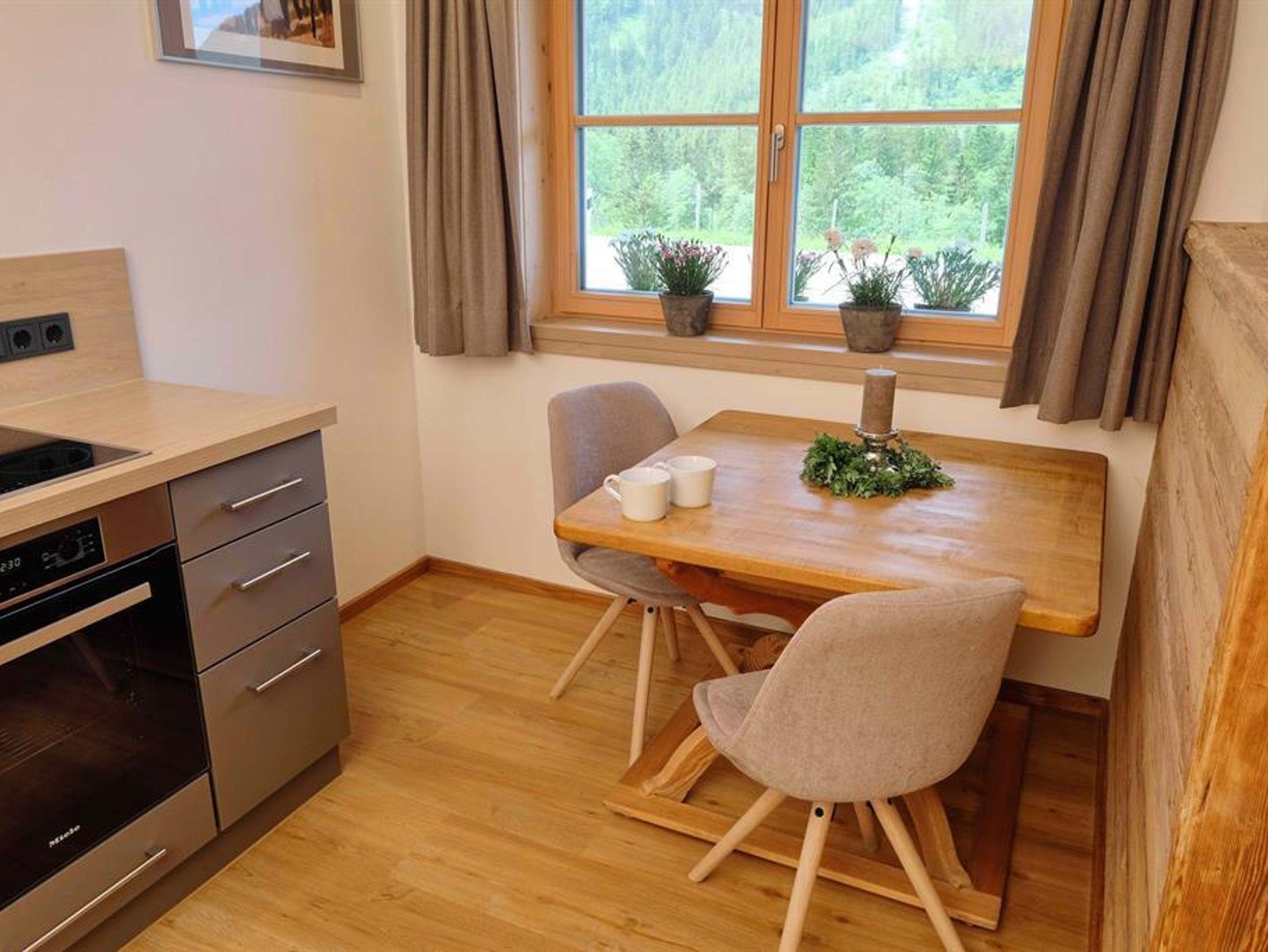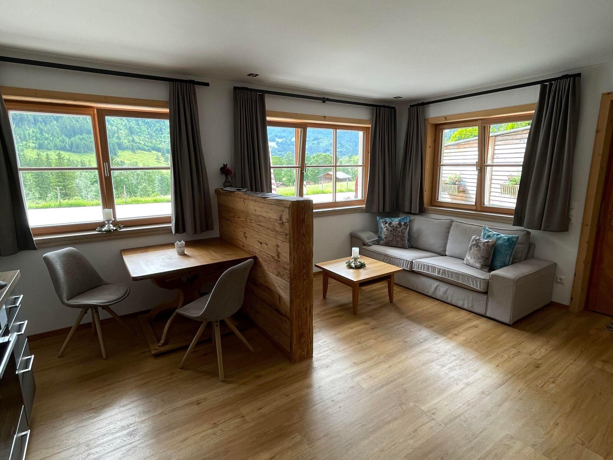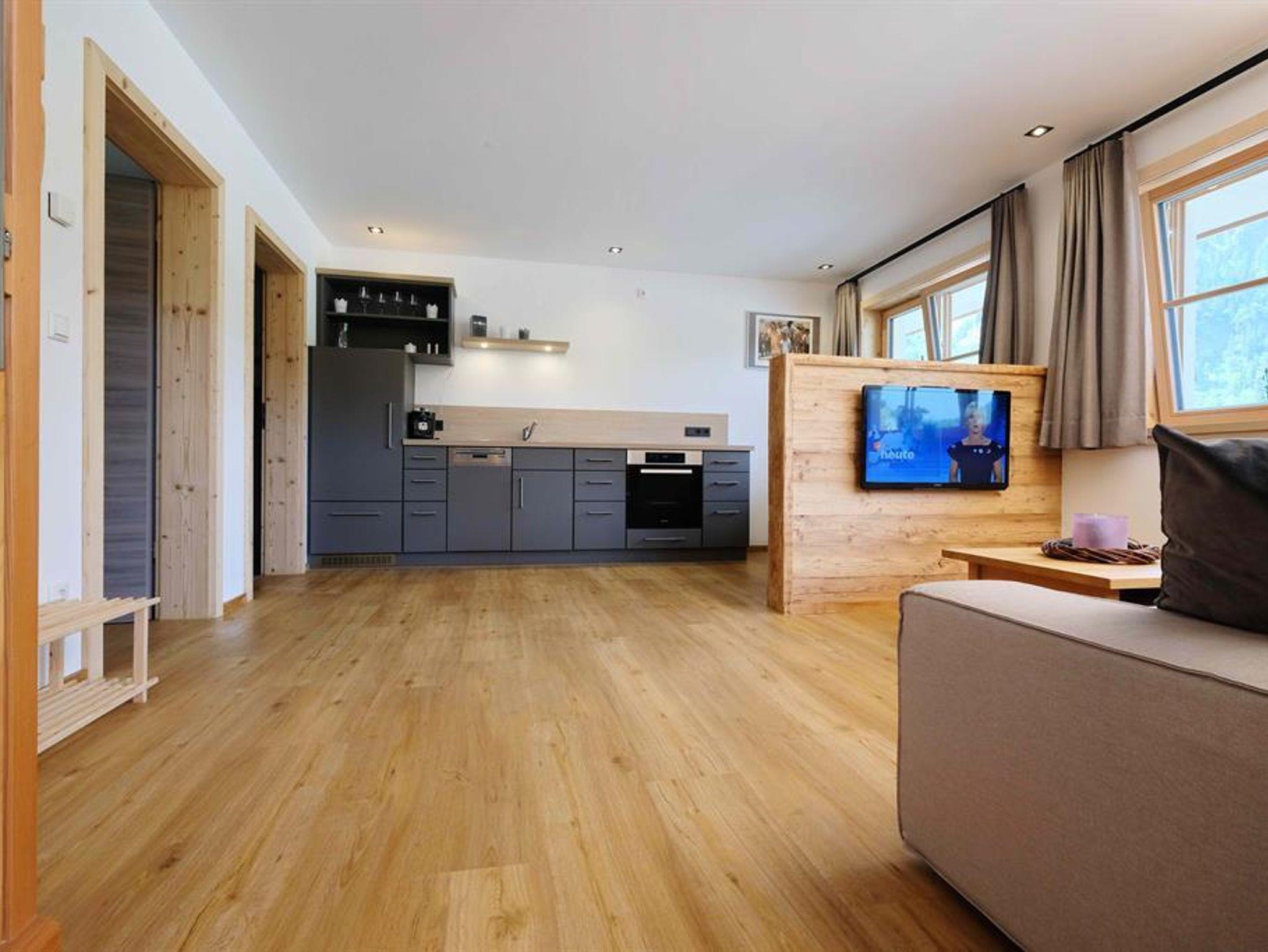Die kleine und feine Wohnung überzeugt mit Holz und Liebe zum Detail.Die Küche ist neu und mit allem was man benötigt ausgestattet. Eine Geschirrspülmaschine,Herd mit Zerankochfeld, Backofen und ein Kaffeevollautomat + Milchschäumer.Das Schlafzimmmer ist vom Wohnraum mit integrierter Küche getrennt.Das Bad ist mit Handtücher, Föhn, Kosmetikspiegel, Dusche und WC ausgestattet. Als kl. Highlight duschen Sie mit Vitamin-C angereichertem Hintersteiner Quellwasser.TV und WLAN sind selbstverständlich.