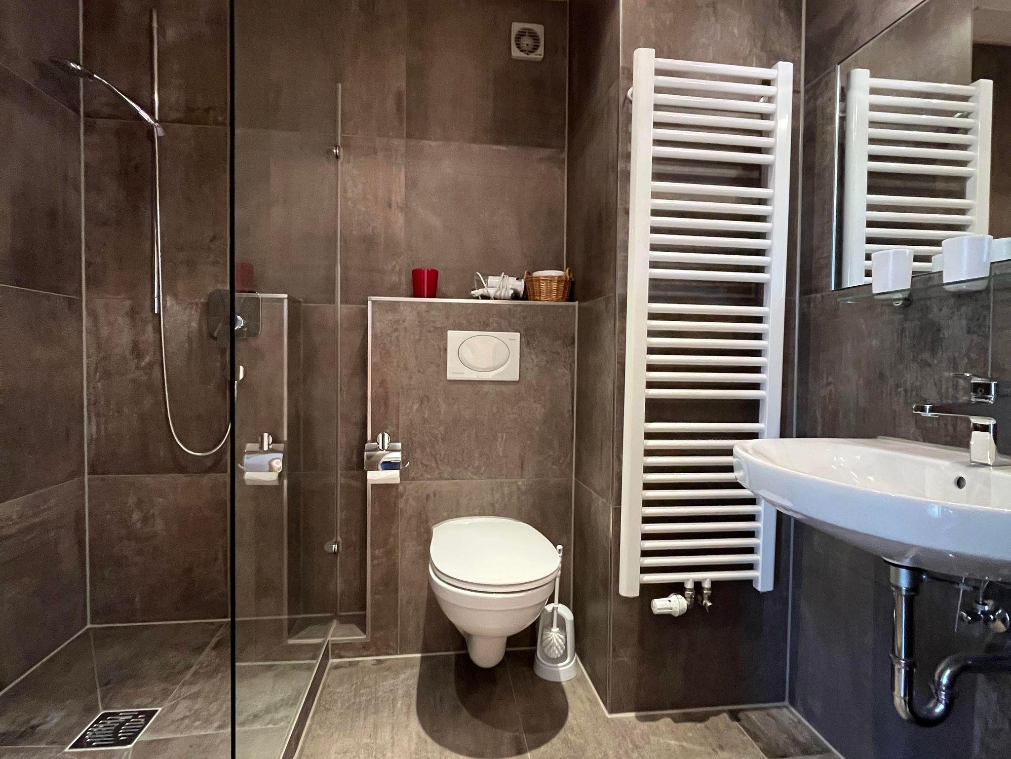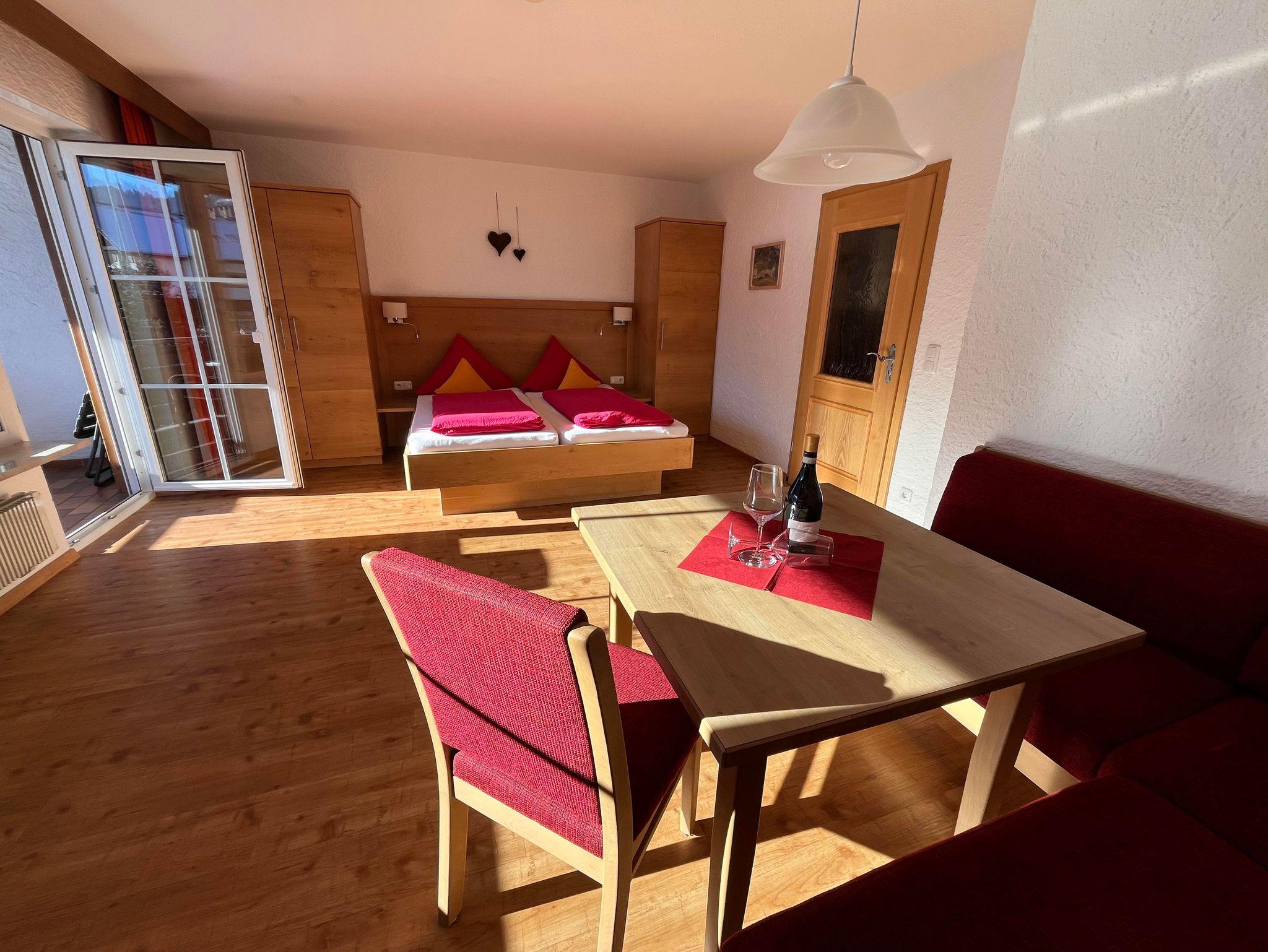 Alles neu renoviert ! Geeignet für 2-3 Personen (3 Person in Zustellbett). Lage: Südseitig, Hausmitte m.grossem überdachtem Balkon, grosses Wohn-/Schlafzimmer mit Doppelbett, Eckbank mit Tisch, komplette Küche mit Dunstabzug, Spülmasch. und Kühlschrank mit Gefriermöglichkeit, Bad-Dusche u. WC. Radio und Flachbildschirm-Sat-TV. Kinderbett auf Anfrage. Gesamt ca. 37 qm.