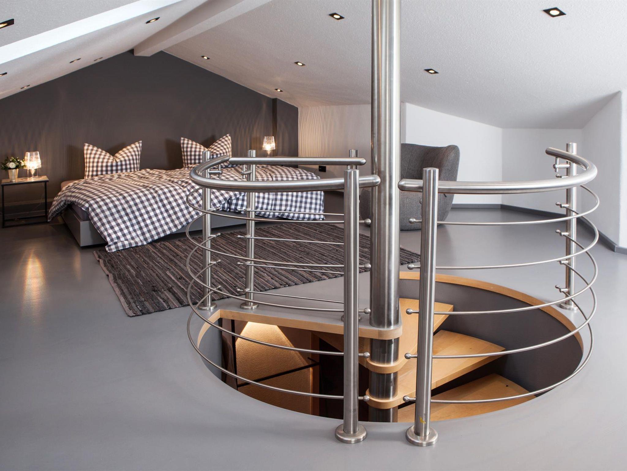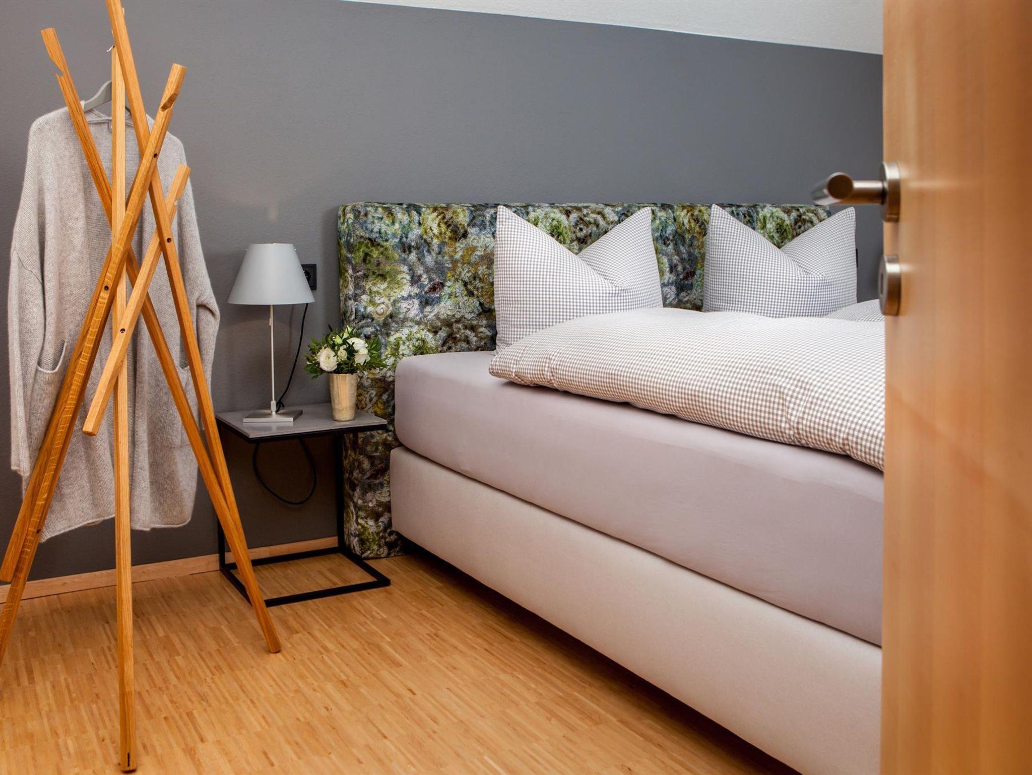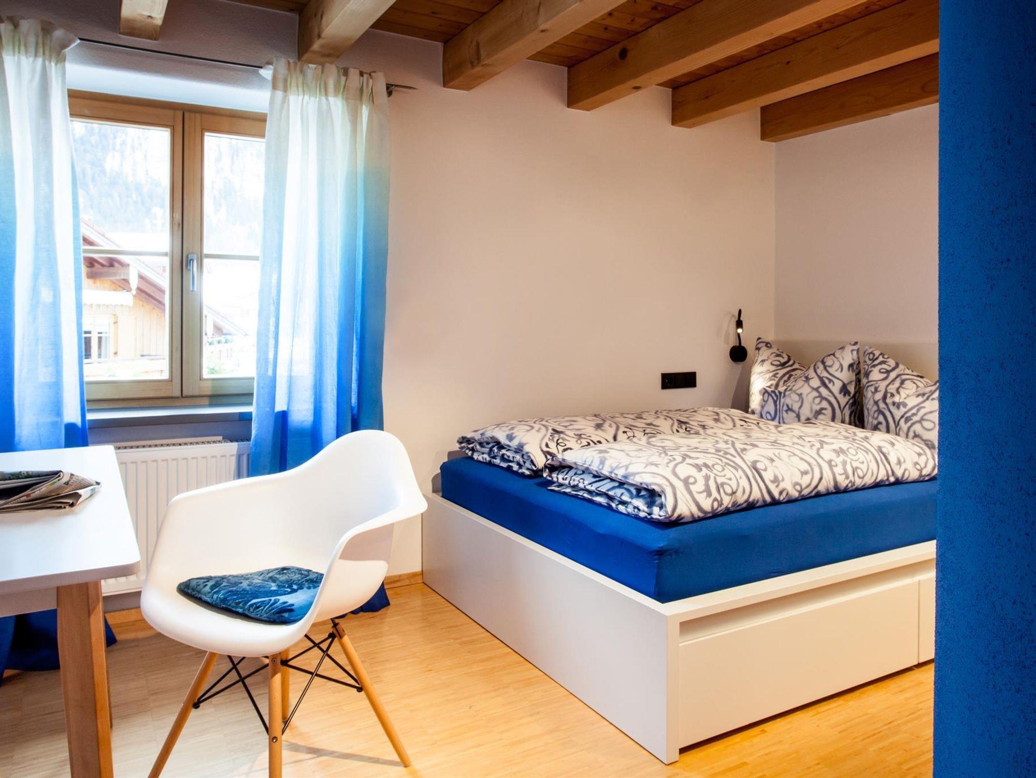 Ferienwohnung 5 - im Landhausstil eingerichtete Maisonettewohnung. Genießen Sie den Blick vom großen Südbalkon im Dachgeschoß auf die umliegenden Berge. Gemütlicher Wohnraum, Separate Küche mit Essbereich, ein Schlafzimmer mit komfortablem Doppelbett, ein Schlafzimmer mit breitem Einzelbett, ein offenes Schlafzimmer mit großem Doppelbett, Badezimmer mit Badewanne, Dusche und WC, zusätzliches zweites WC.