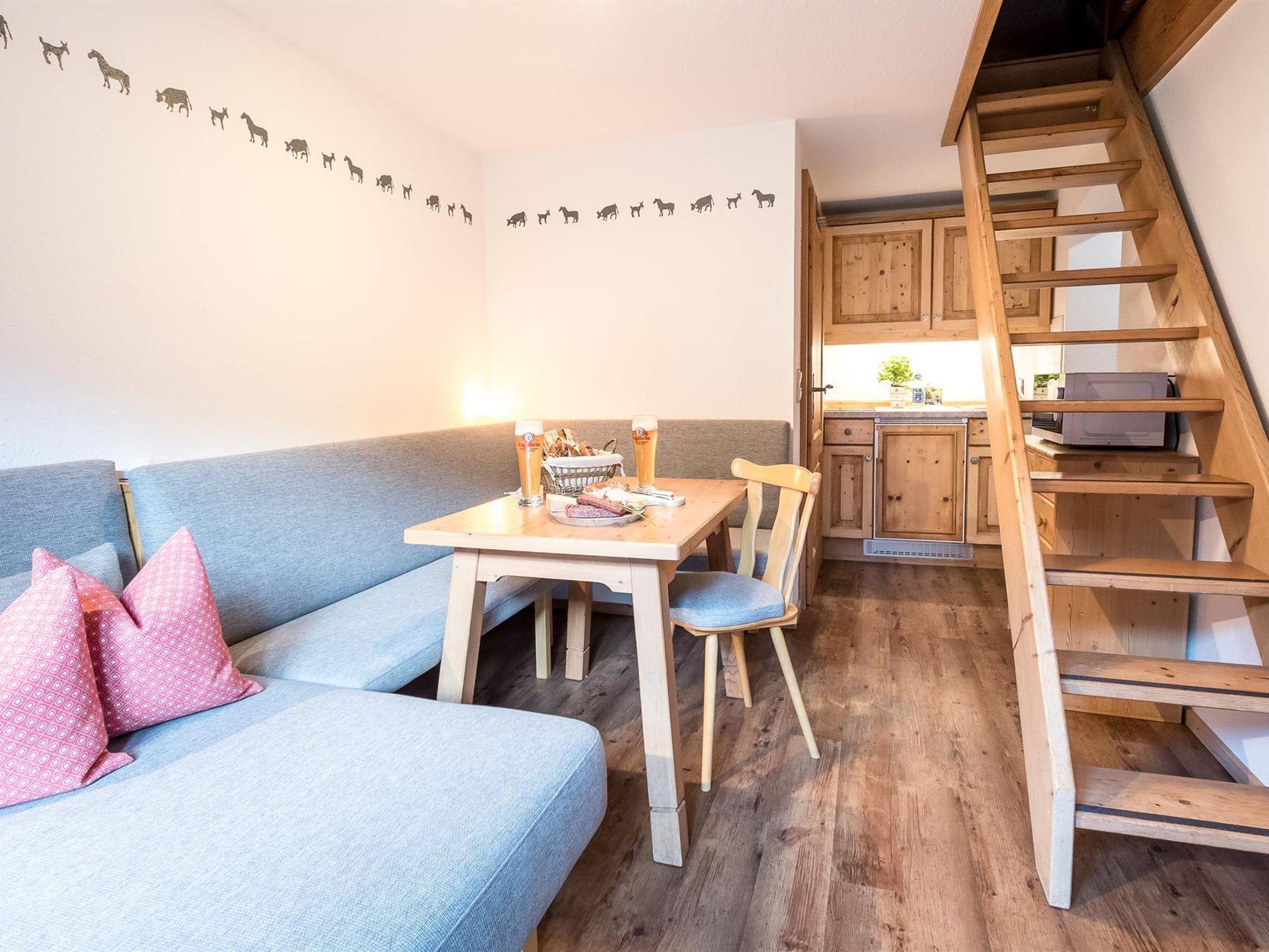 Die Ferienwohnung 3 ist nach Süden ausgerichtet und hat einen großen Balkon, Wohnküche, Schlafzimmer, einen seperaten Schlafraum im Dachgeschoß (Maisonette), DU/WC.