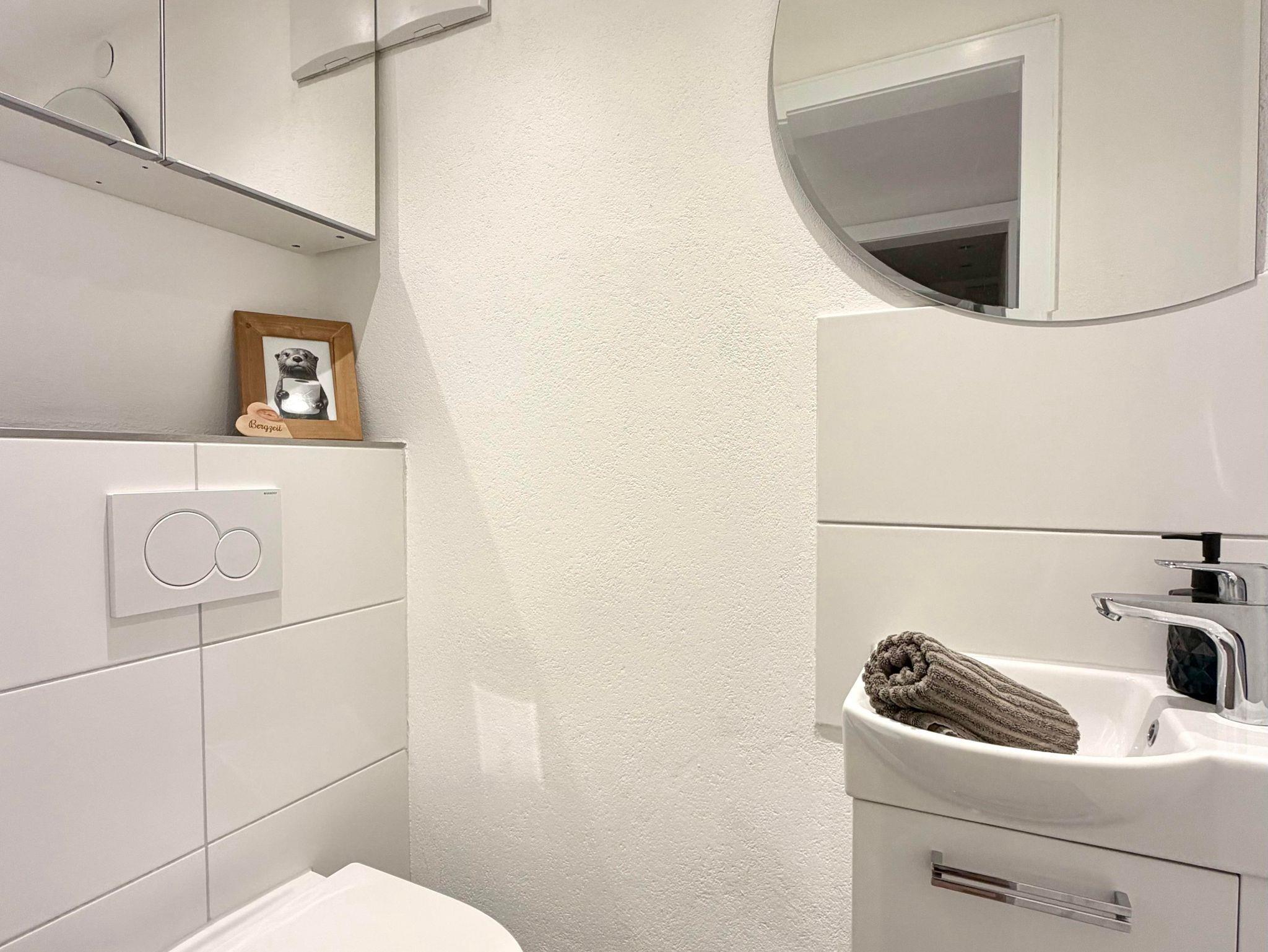 Die Bergzeit ist eine im Gartengeschoss befindiche Zweizimmerferienwohnung mit Badezimmer, separatem WC, Küche, Diele und großer Sonnenterrasse mit südlicher Ausrichtung.