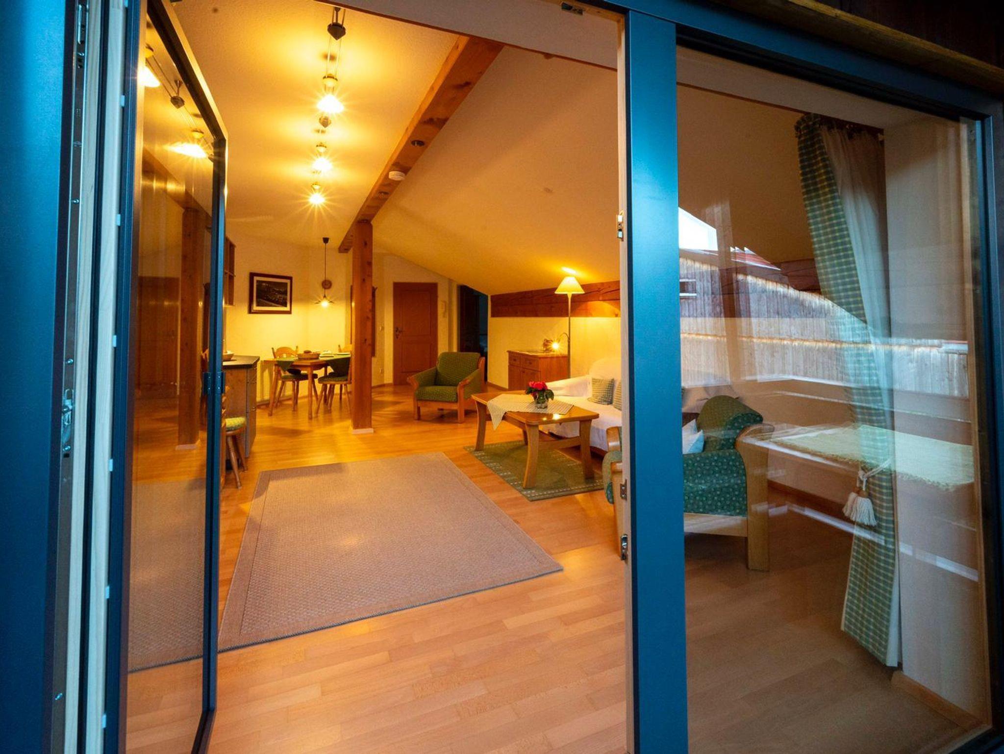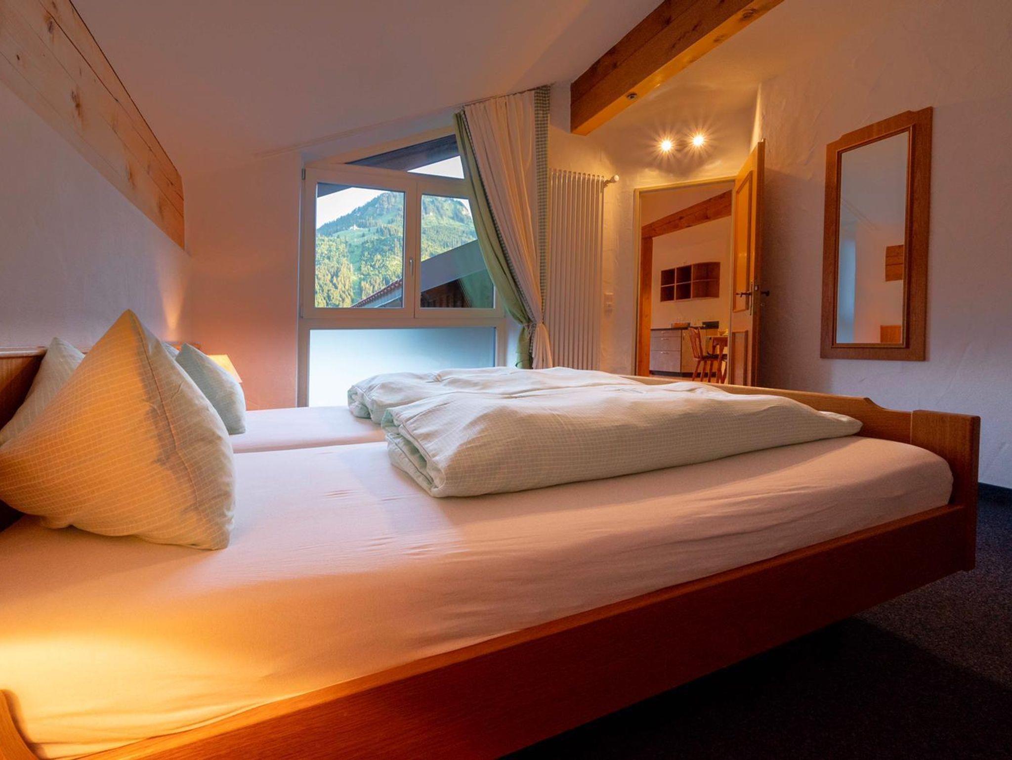 Die gemütlich eingerichtete und allergikerfreundlich ausgestattete Ferienwohnung besitzt ein helles, großzügiges Wohnzimmer mit Zugang zum Südbalkon inkl. Blick in die Hindelanger und Hintersteiner Berge. Hier finden Sie eine bequeme Sitzgruppe mit Flachbildfernseher sowie einen Essplatz für die ganze Familie. Ein separates Schlafzimmer mit Doppelbett und die ruhige Lage unseres Hauses machen Ihren erholsamen Urlaub sicher zu einem besonderen Erlebnis.
