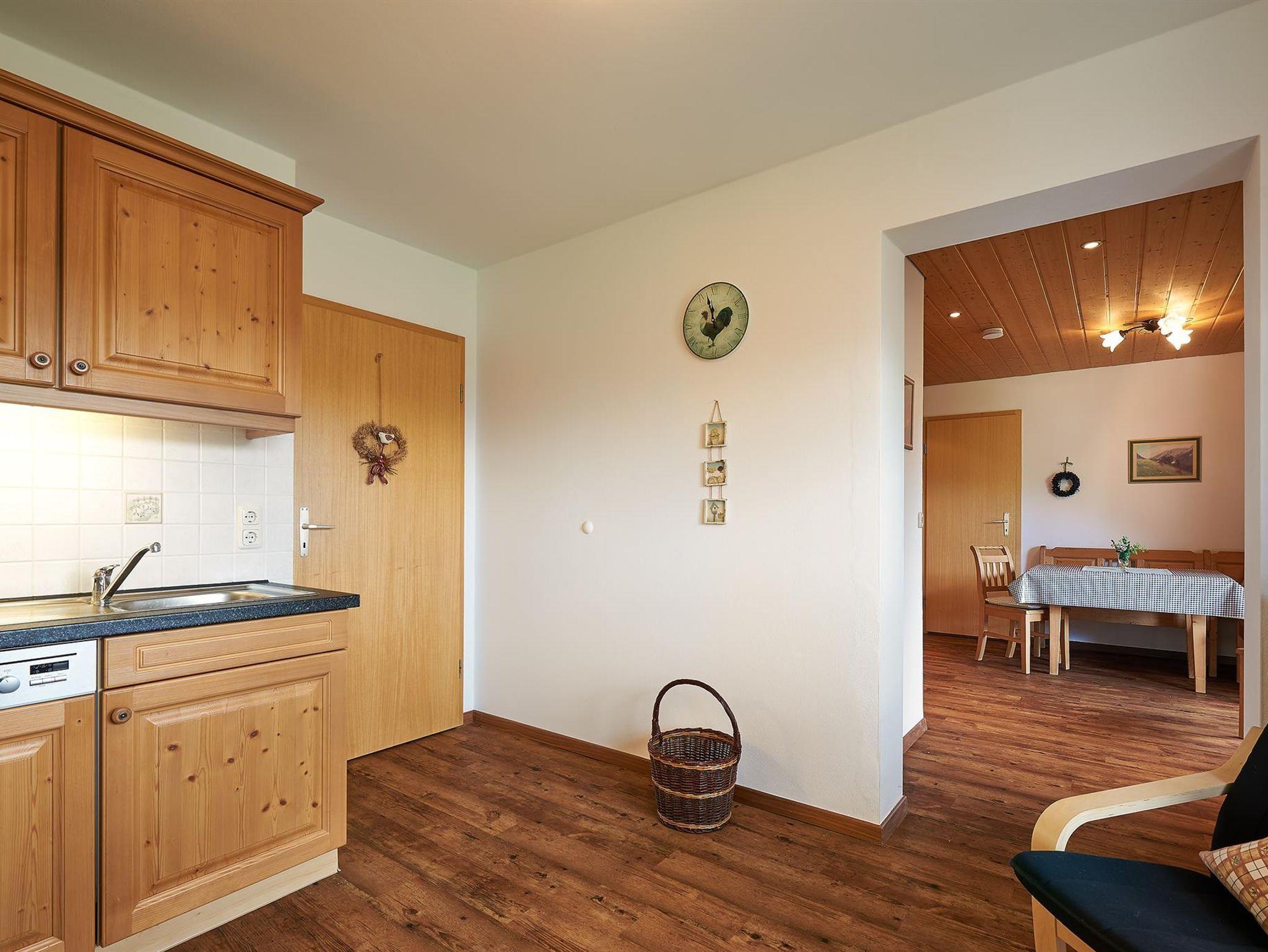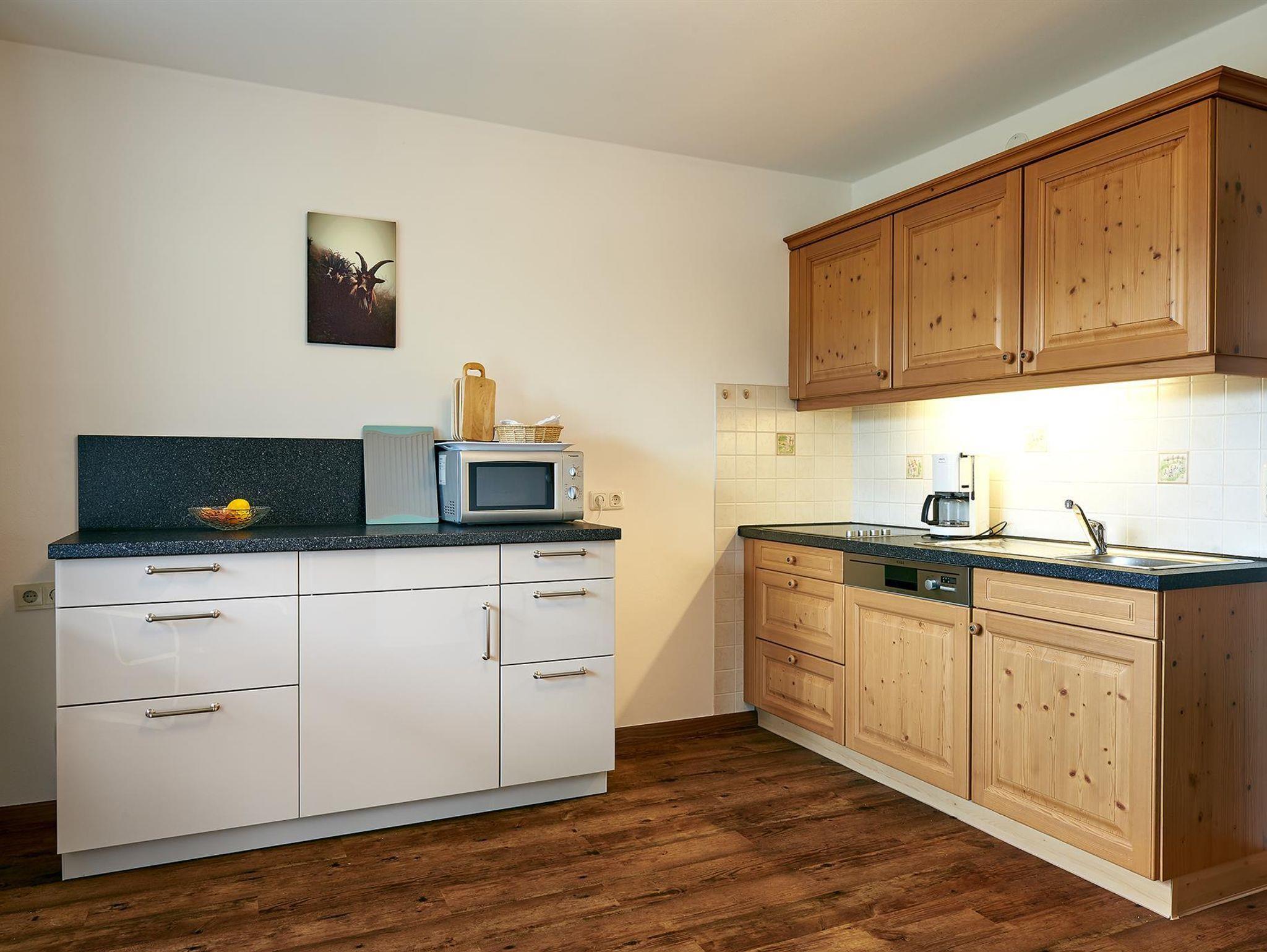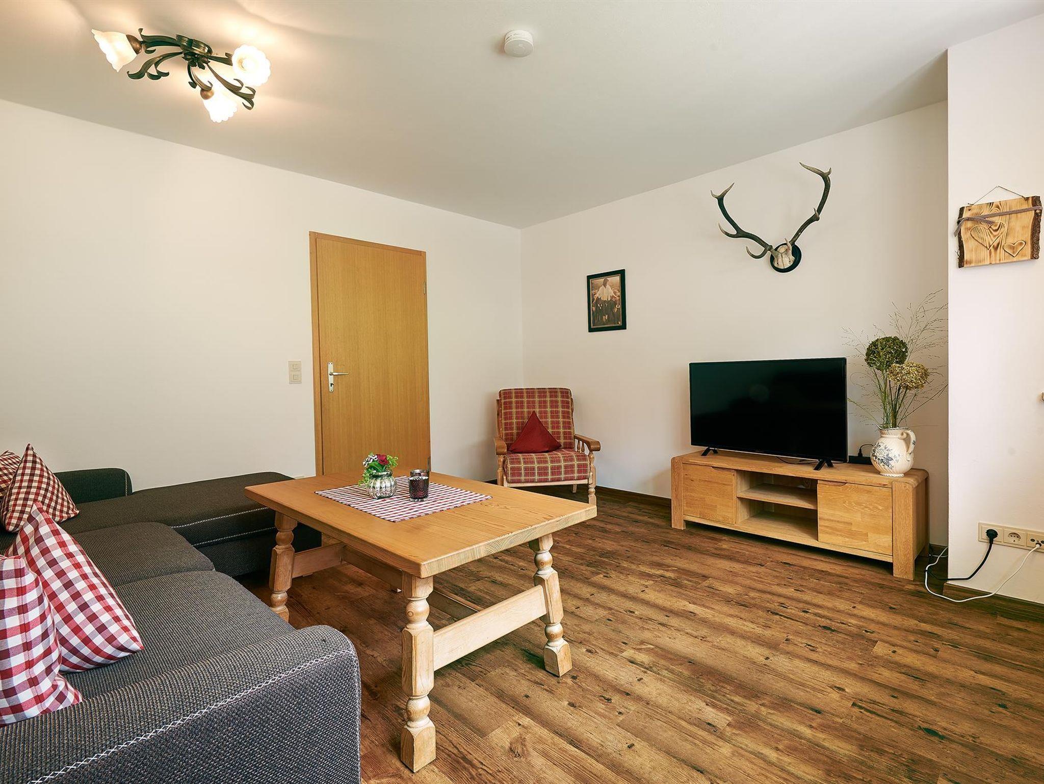 Ferienwohnung für 2 Personen: • großer überdachter Südbalkon mit Bergblick • separates Schlafzimmer mit Doppelbett • ein weiterer Raum zum getrennt Schlafen ist in der Wohnung vorhanden • Bad mit Dusche/WC, Fön, Kosmetikspiegel, Hand –und Duschtücher mit Wechsel nach Bedarf • Betten in Komforthöhe • gemütlicher Wohnraum mit Essecke • Sat-TV, Radio, CD-Player • DSL-Internetzugang (WLAN) • Küchenecke mit Mikrowelle, 4er Ceran-Kochfeld, Kühlschrank mit Gefrierfach, Spülmaschine • Nichtraucher