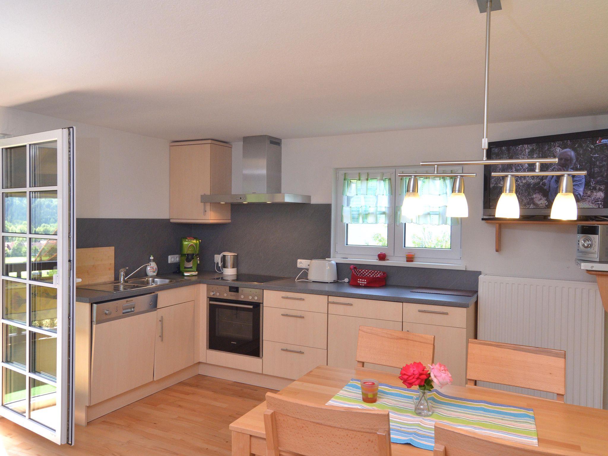 Küche mit Backofen, 4 Plattenherd, Geschirrspüler und Dunstabzug,