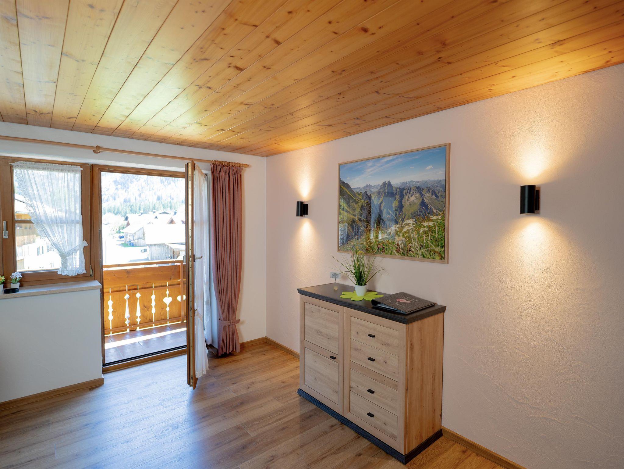Unsere gemütliche Ferienwohnung bietet auf 80m² Platz für 1-3 Erwachsene & Jugendliche ab 14 Jahren. Vom sonnigen Südbalkon genießen Sie einen herrlichen Blick in die Berge des Hintersteiner Tals.