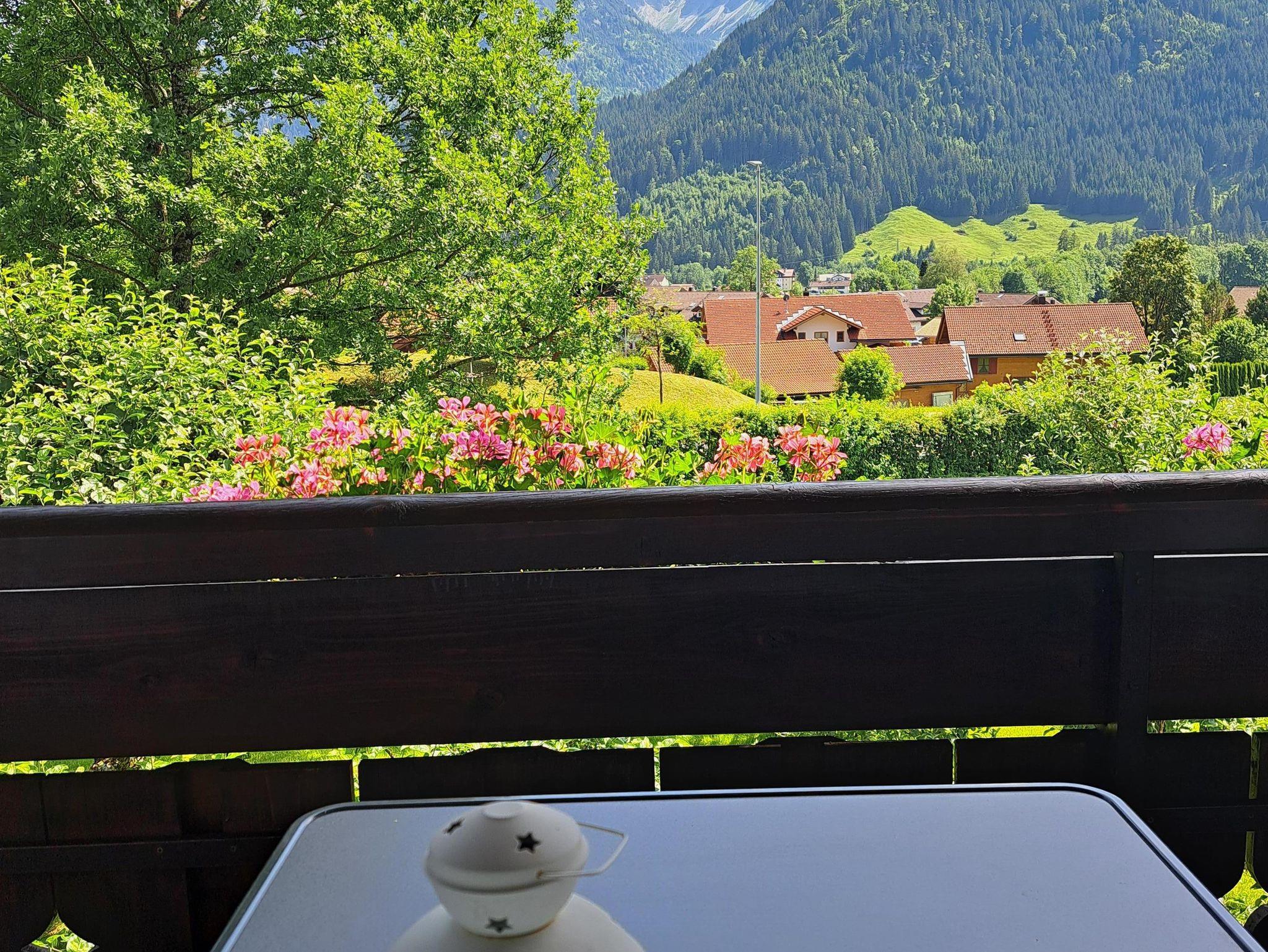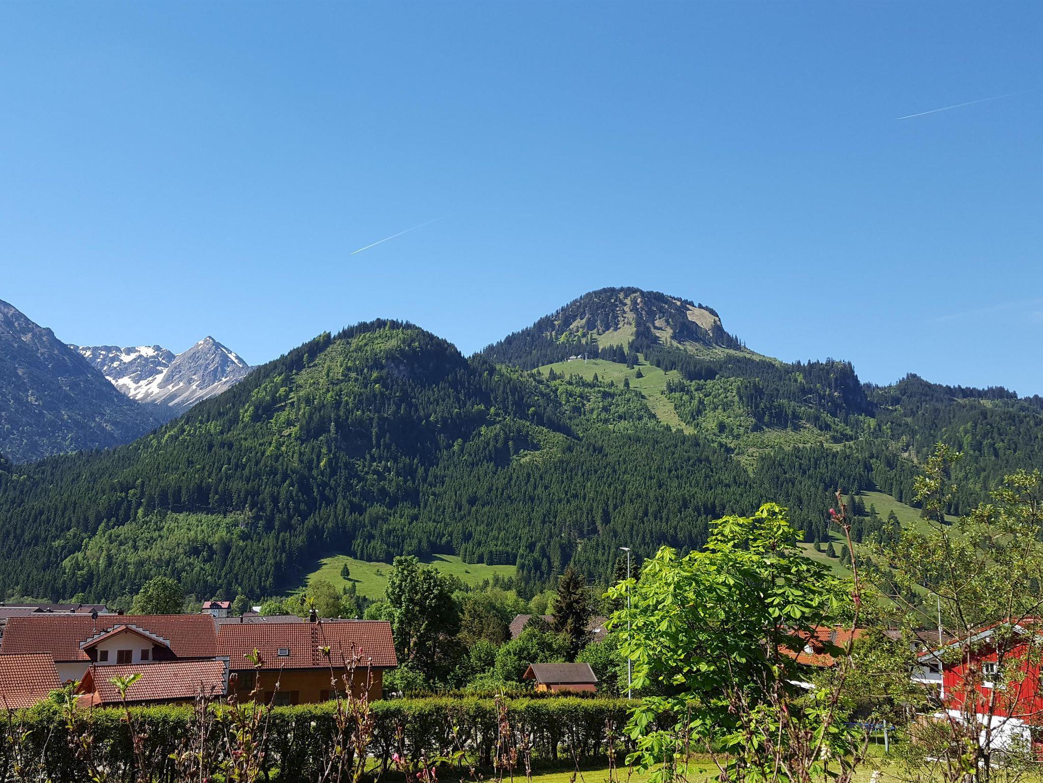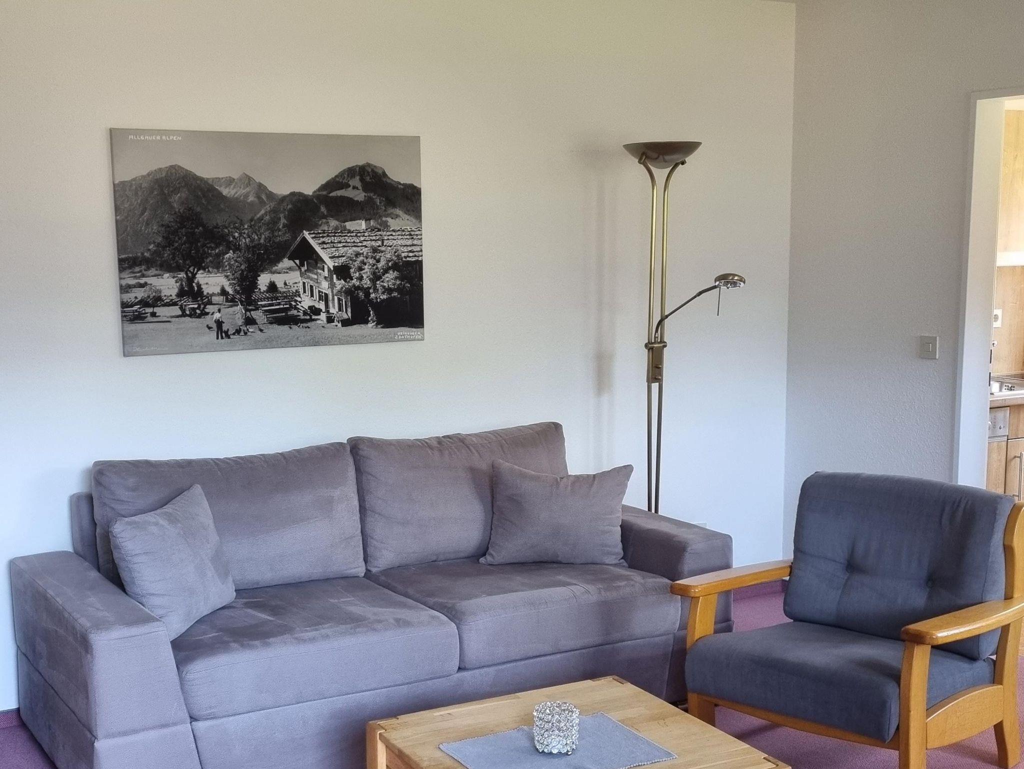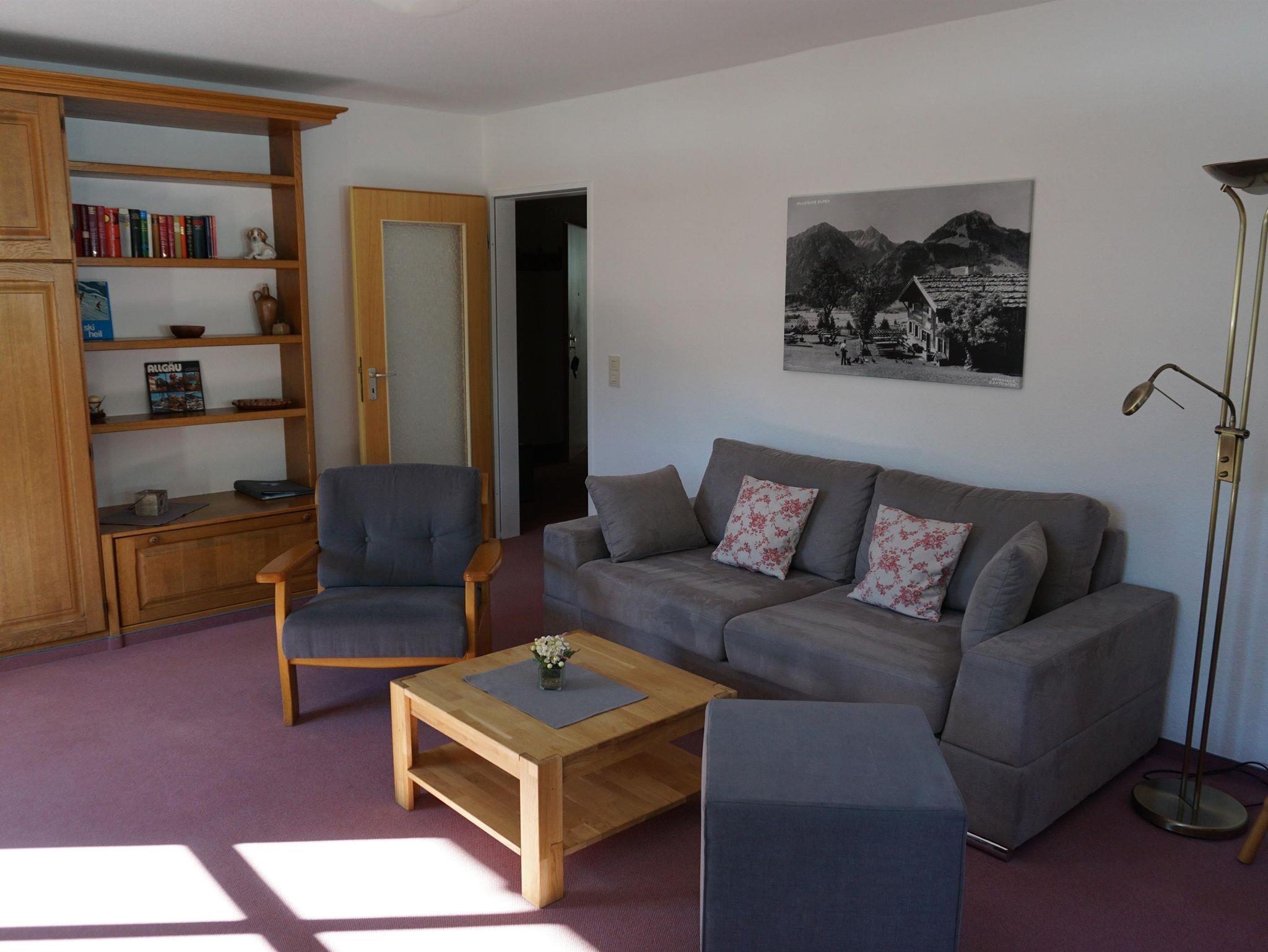 3 Sterne Ferienwohnung im 1 OG, Südbalkon, Wohnzimmer mit Ausziehcouch, Schlafzimmer, Küche, Bad-WC; Landhausstil, freie Gebirgsaussicht; keine Haustiere; auf Wunsch Allergiker Bettwäsche; Bad Hindelang PLUS Betrieb.