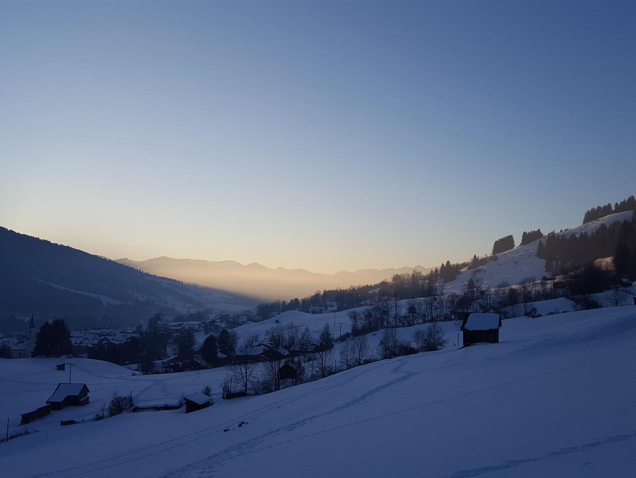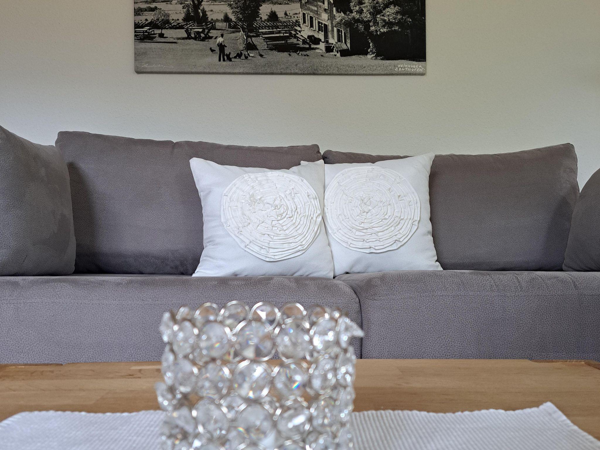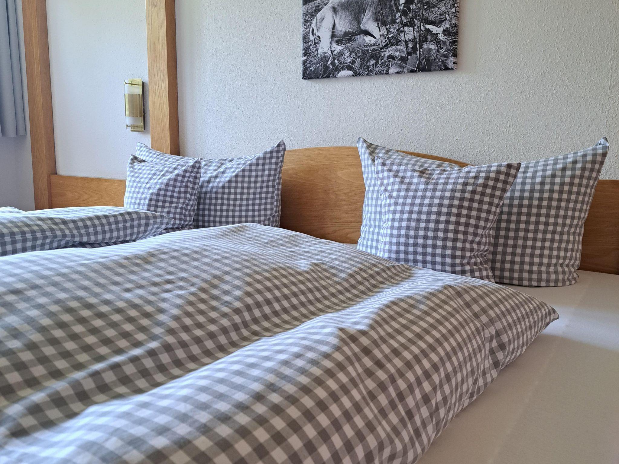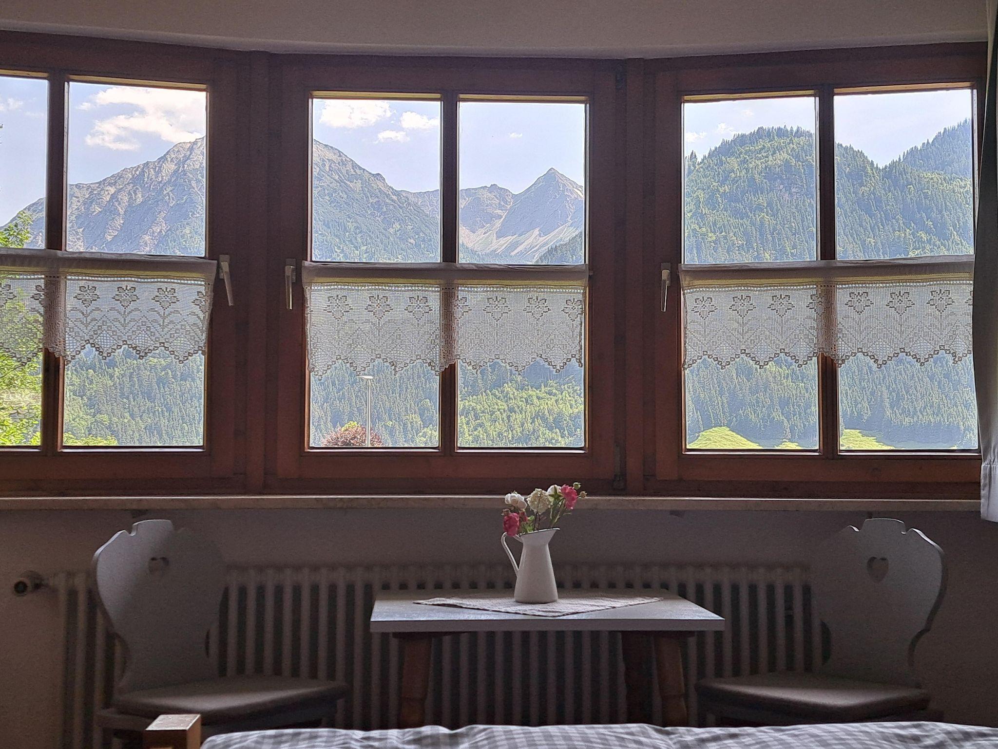 3 Sterne Ferienwohnung im 1 OG, Südbalkon, Wohnzimmer mit Ausziehcouch, Schlafzimmer, Küche, Bad-WC; Landhausstil, freie Gebirgsaussicht; keine Haustiere; auf Wunsch Allergiker Bettwäsche; Bad Hindelang PLUS Betrieb.