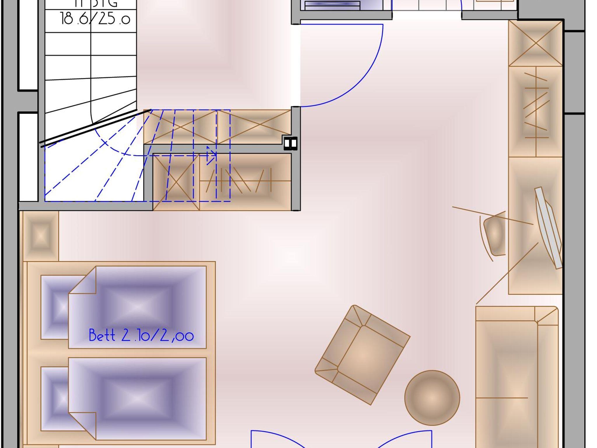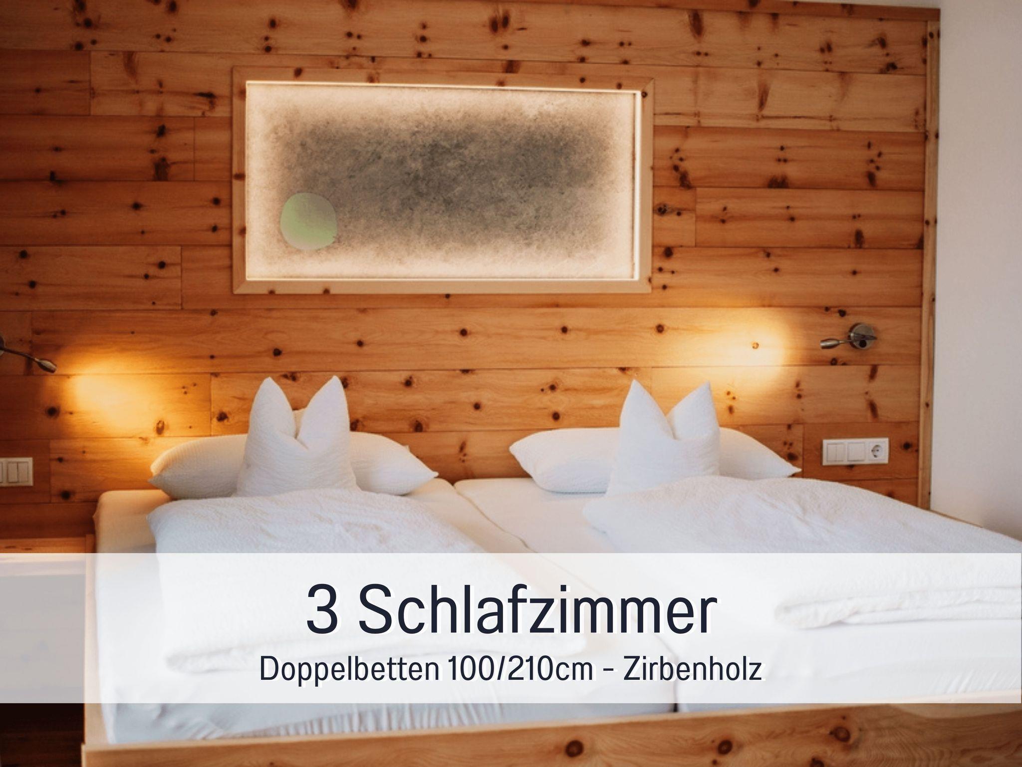 • drei getrennte SZ mit Zirben-Doppelbetten in Überlänge