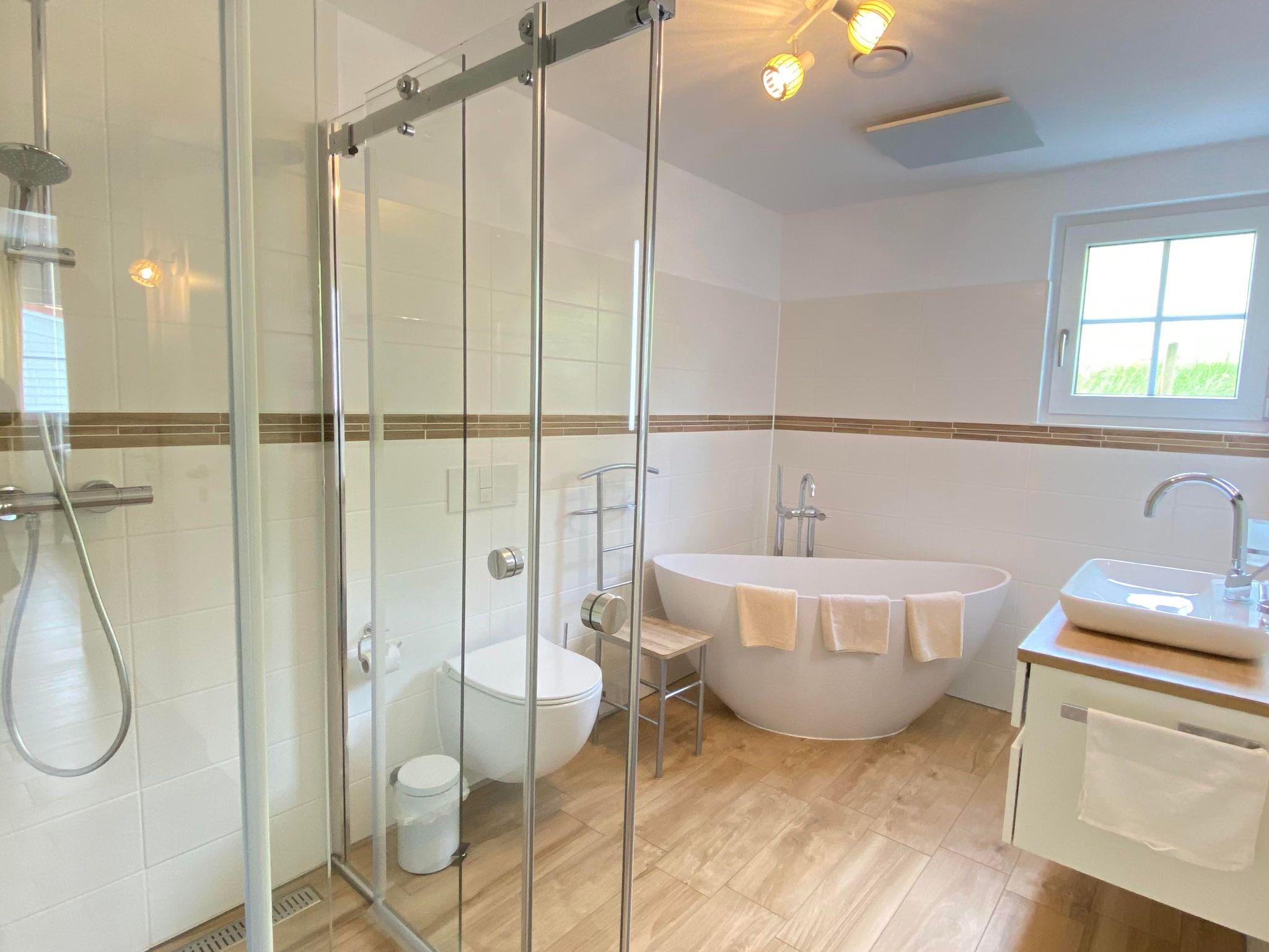Alle drei Wohnungen haben zwei sep. Schlafräume, eine sep. Küche komplett ausgestattet auch mit Spülmaschine, ein gemütliches Wohnzimmer mit großer Couchgarnitur, Tageslicht-Badezimmer und ein zweites sep. WC.