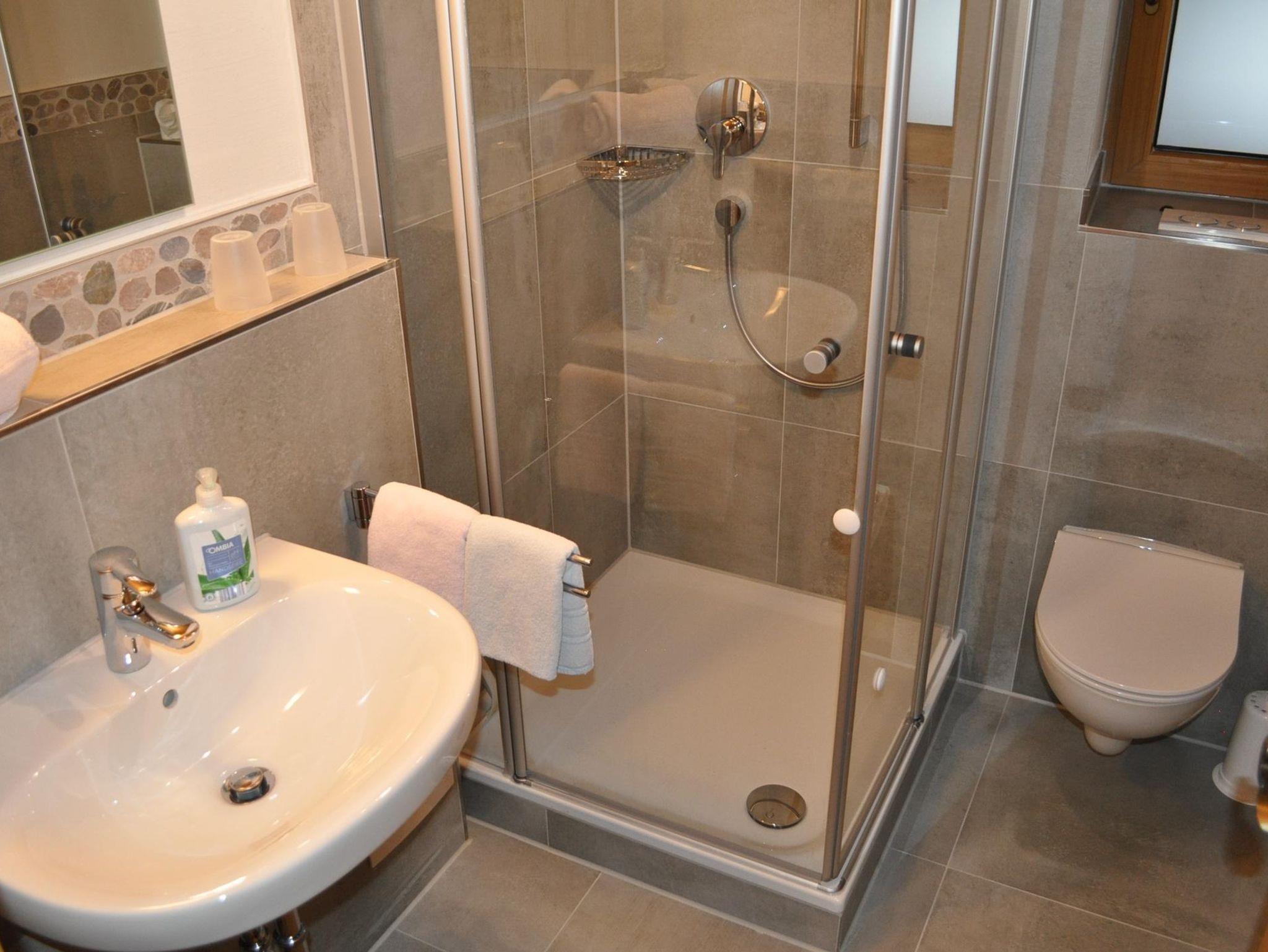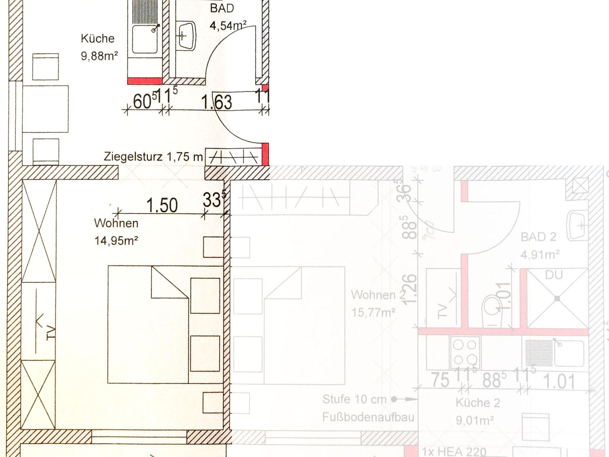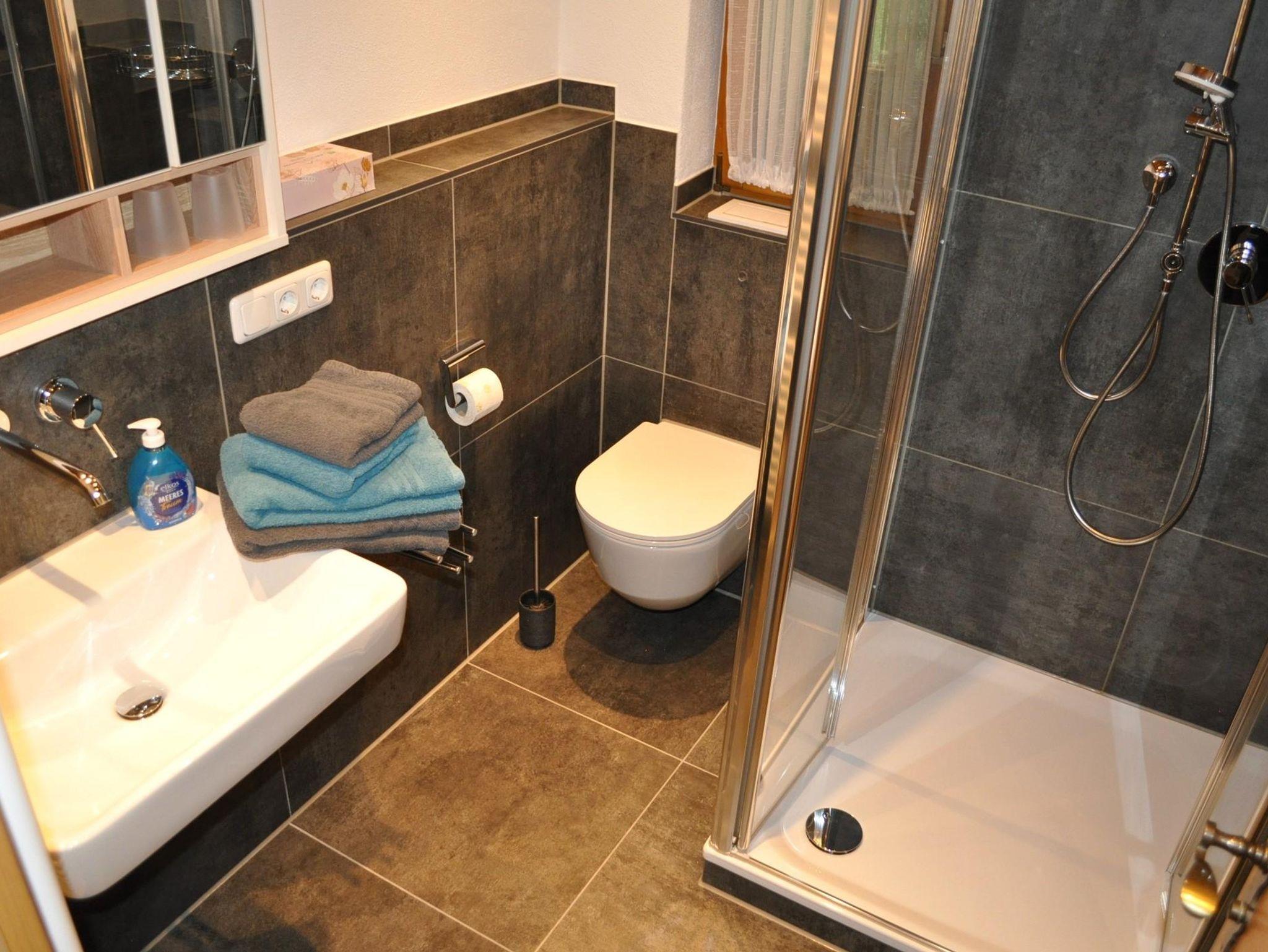 Neue Ferienwohnung mit Südbalkon, Wohn-Schlafraum, Wohnküche, Dusche und WC.