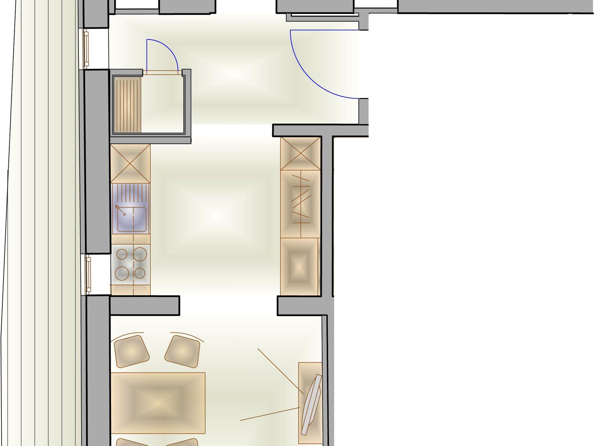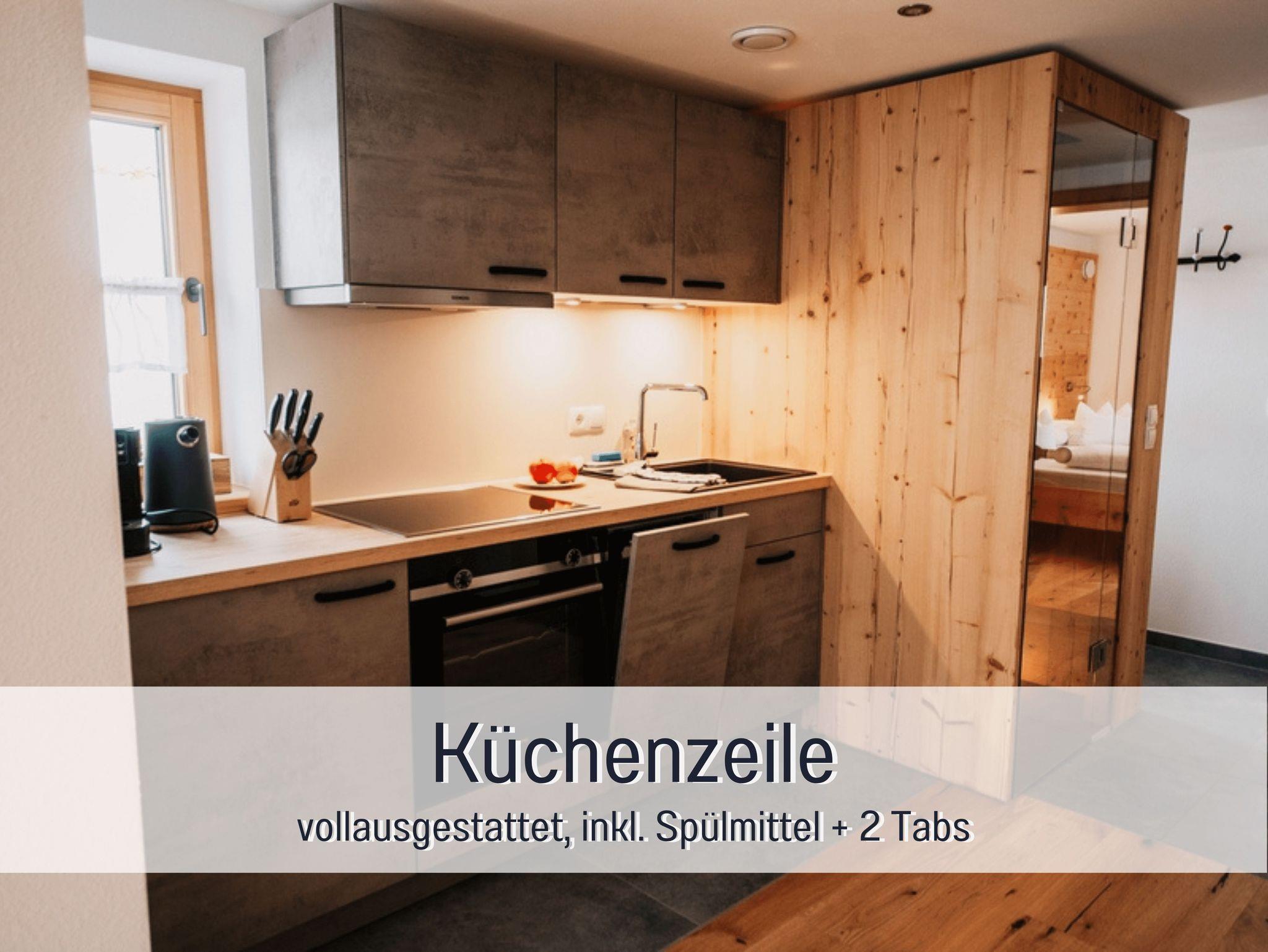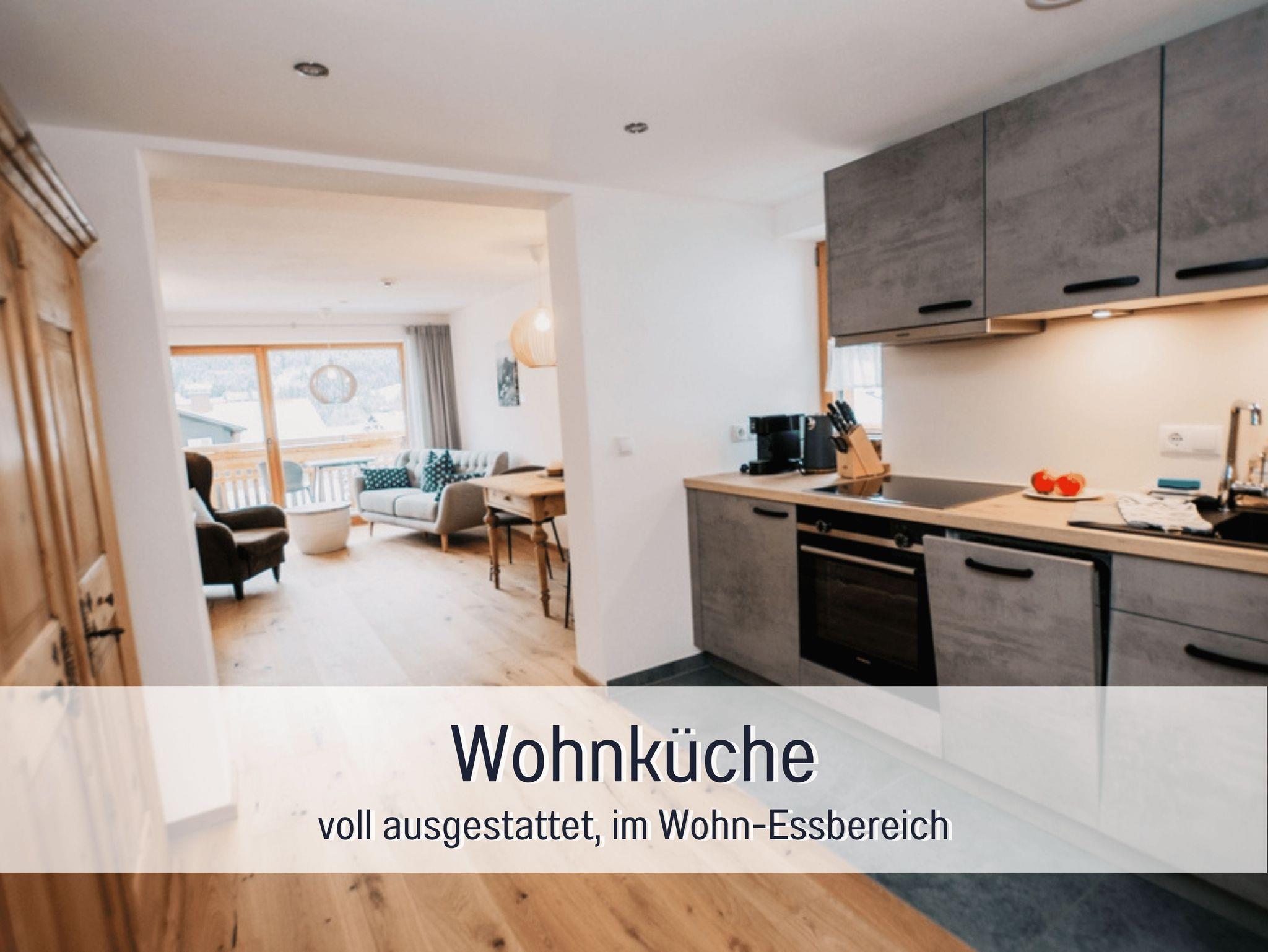 • vollausgestattete, moderne Küchenzeile, Esstisch und Couch