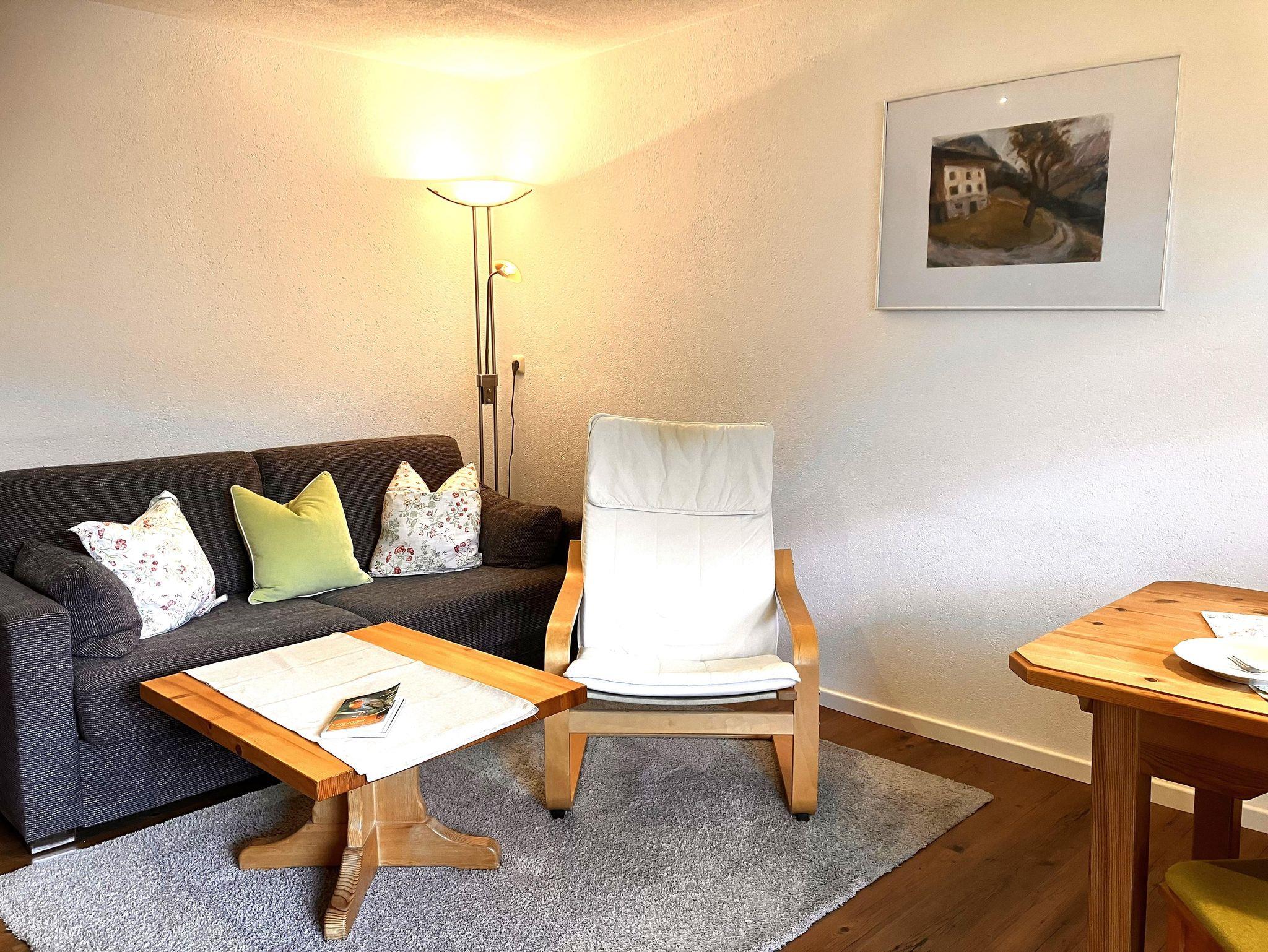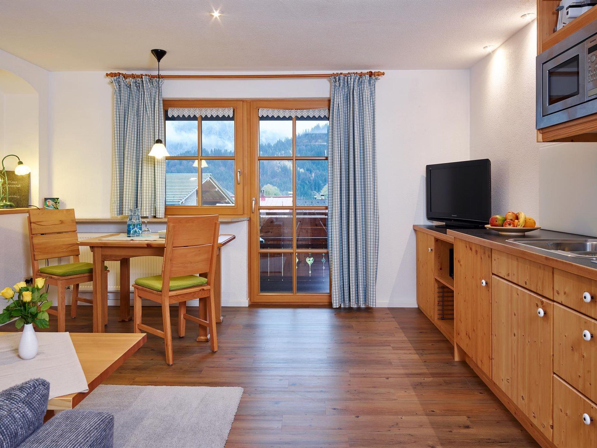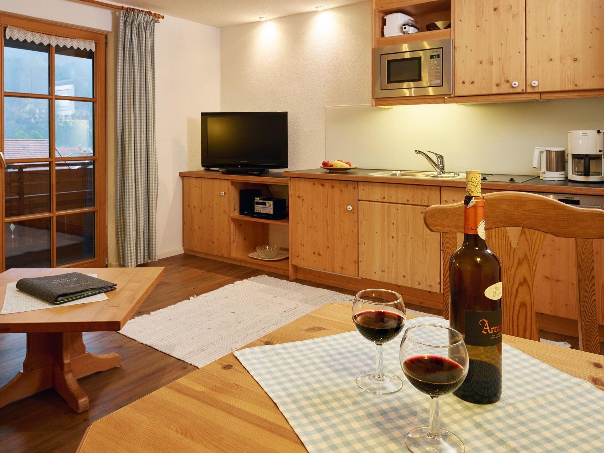 Die allergikerfreundliche 4*Wohnung ist 46 qm groß, verfügt über 1 sep. Schlafzimmer Komfortbetten und Leseecke, DU/WC mit Regendusche, Wohnraum mit Sitz-und Eßecke, integr. Küche mit 2 Plattenherd, großer, überdachter Süd-Ostbalkon mit freiem, traumhaften Bergblick.Getrennte Schlafmöglichkeit vorhanden. Die Betten sind bezogen, Hand-und Duschtücher liegen bereit und können nach Bedarf gewechselt werden. Auf Wunsch: Brötchenservice, Bademantel, Zusatzdecken. Ankommen, Wohlfühlen und Geniessen!