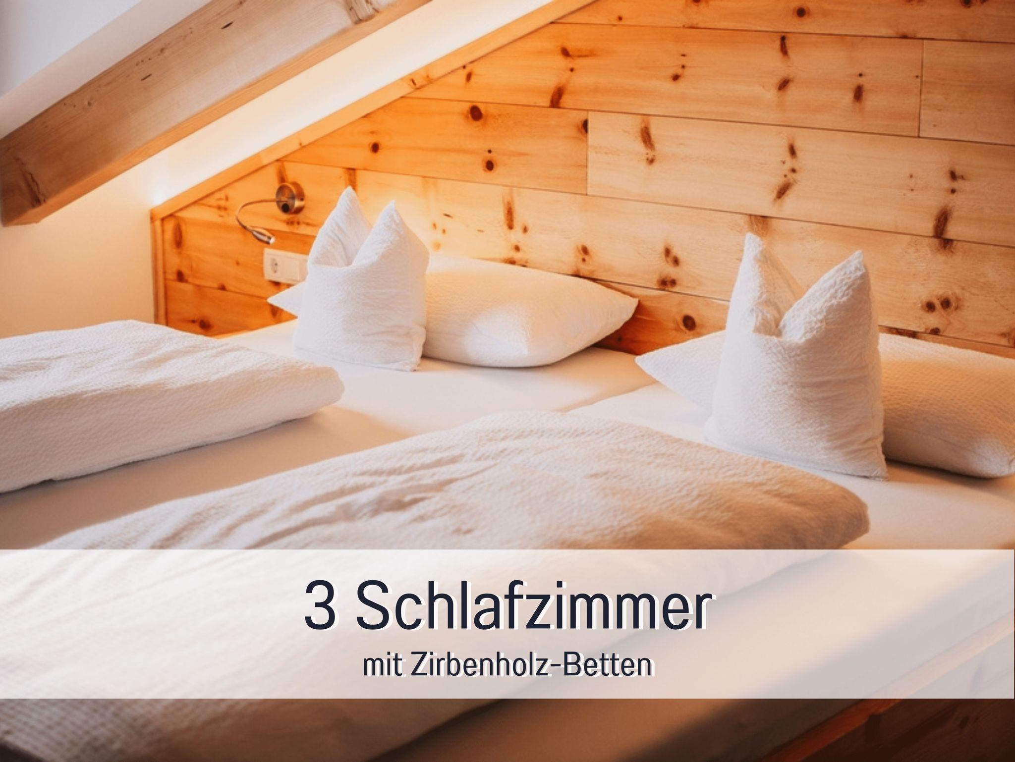 • zwei getrennte SZ mit Doppelbetten aus Zirbe in Überlänge
