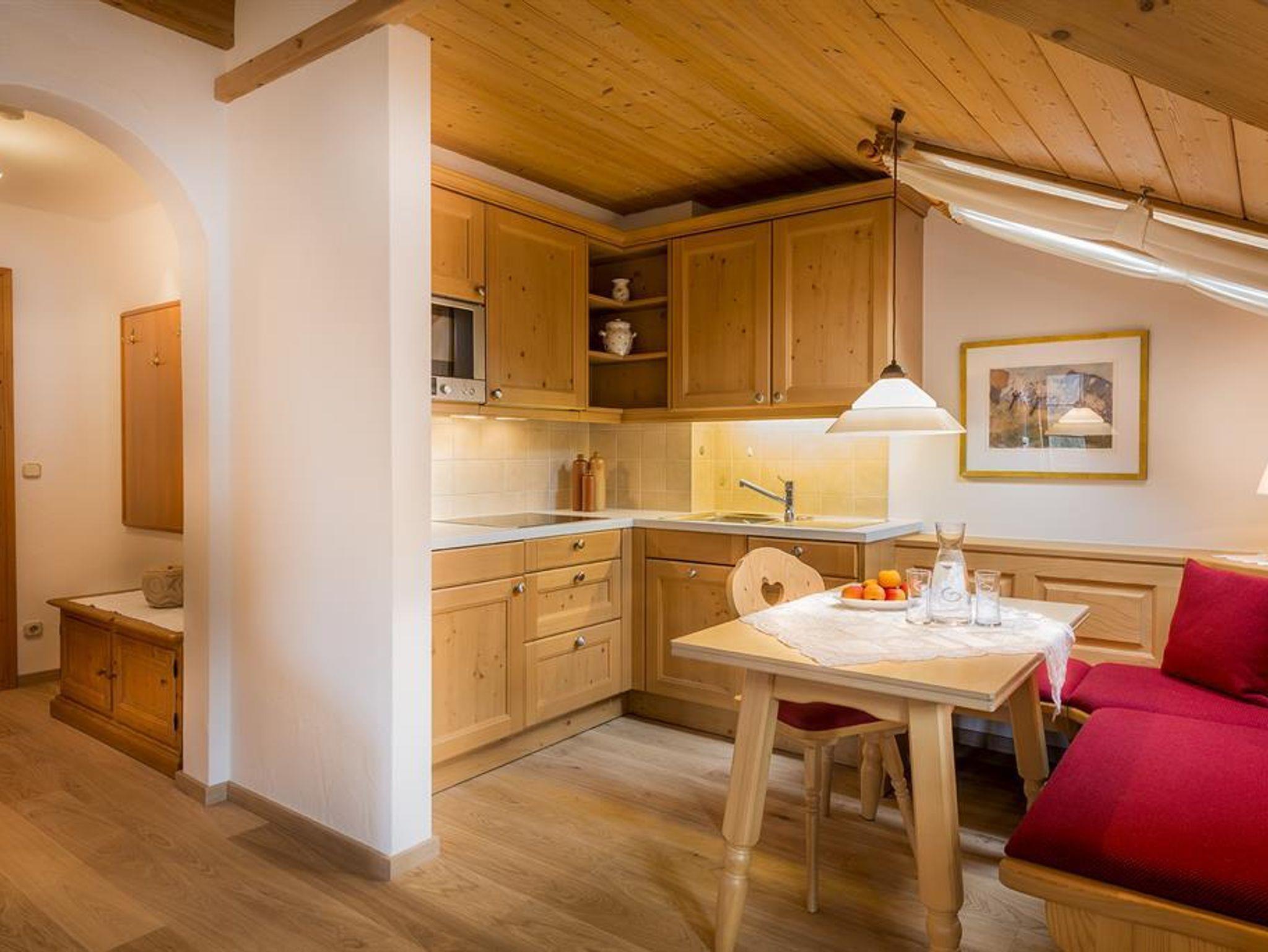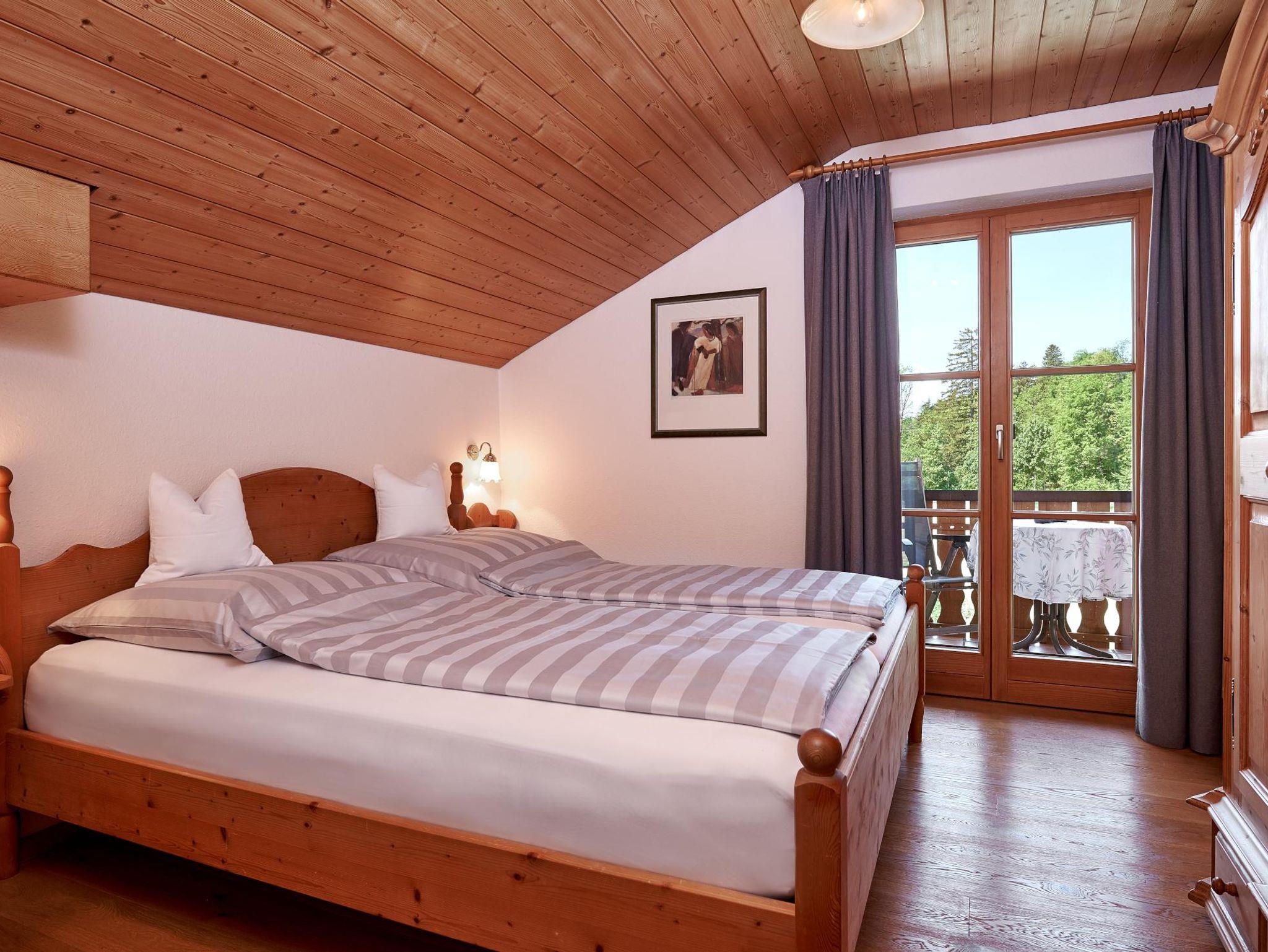 1. OG für 2 Personen Wohnzimmer mit stilvoller Eßecke, hochwertiger Couchgarnitur, Holzdecke (frei bis Giebel), Kabel-TV, Telefon. 1 separates Schlafzimmer mit Doppelbett, Holzdecke. Komplett ausgestatte Küche mit Spülmaschiene. Bad mit Dusche und WC, Diele mit Haustelefon. Großer, eigener Südbalkon und abgegrenzter Westbalkon.