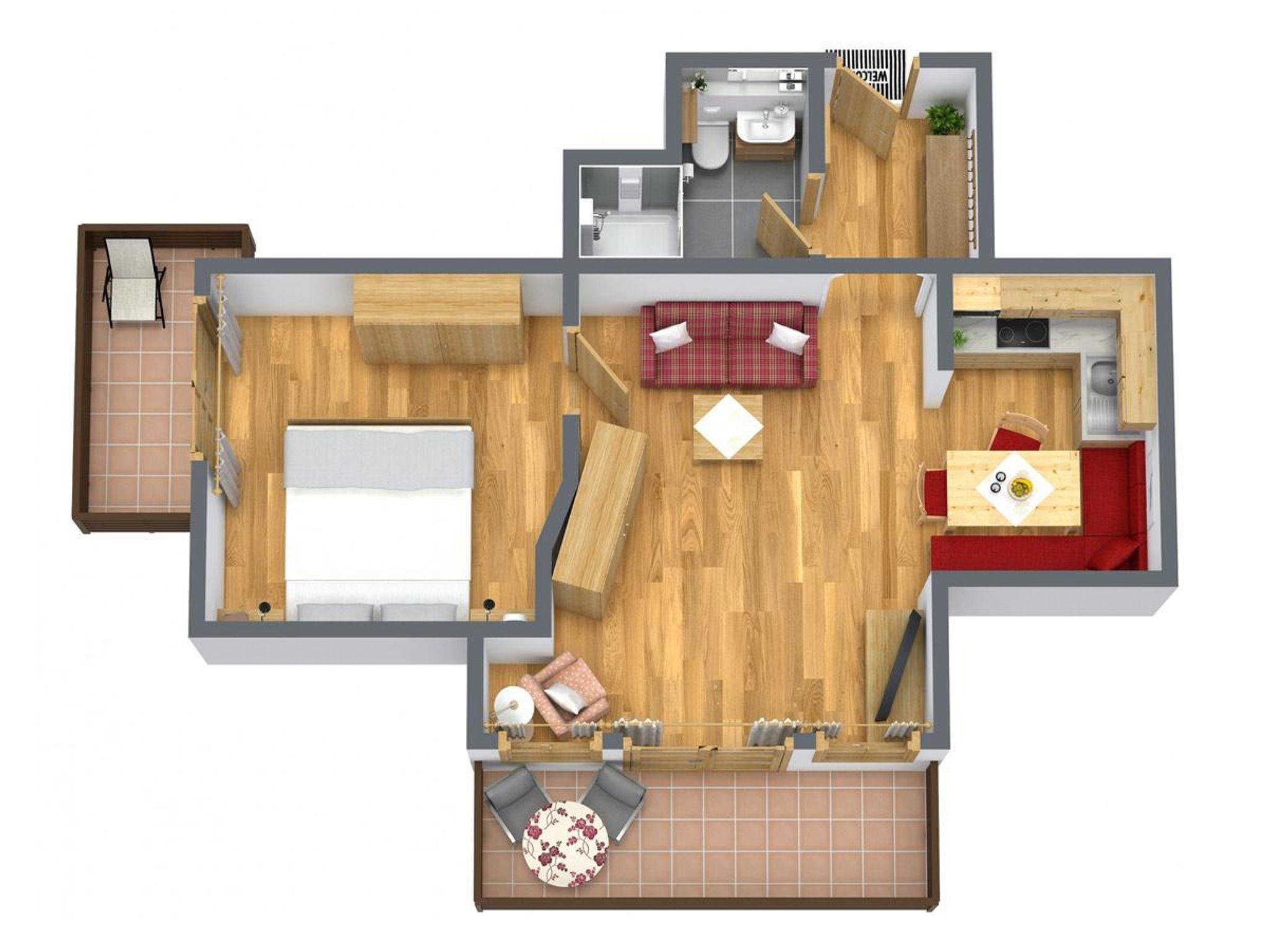 Unsere 3 Ferienwohnungen für 2 - 4 Personen haben alle einen Balkon und getrennte 1- oder 2-Schlafzimmer.