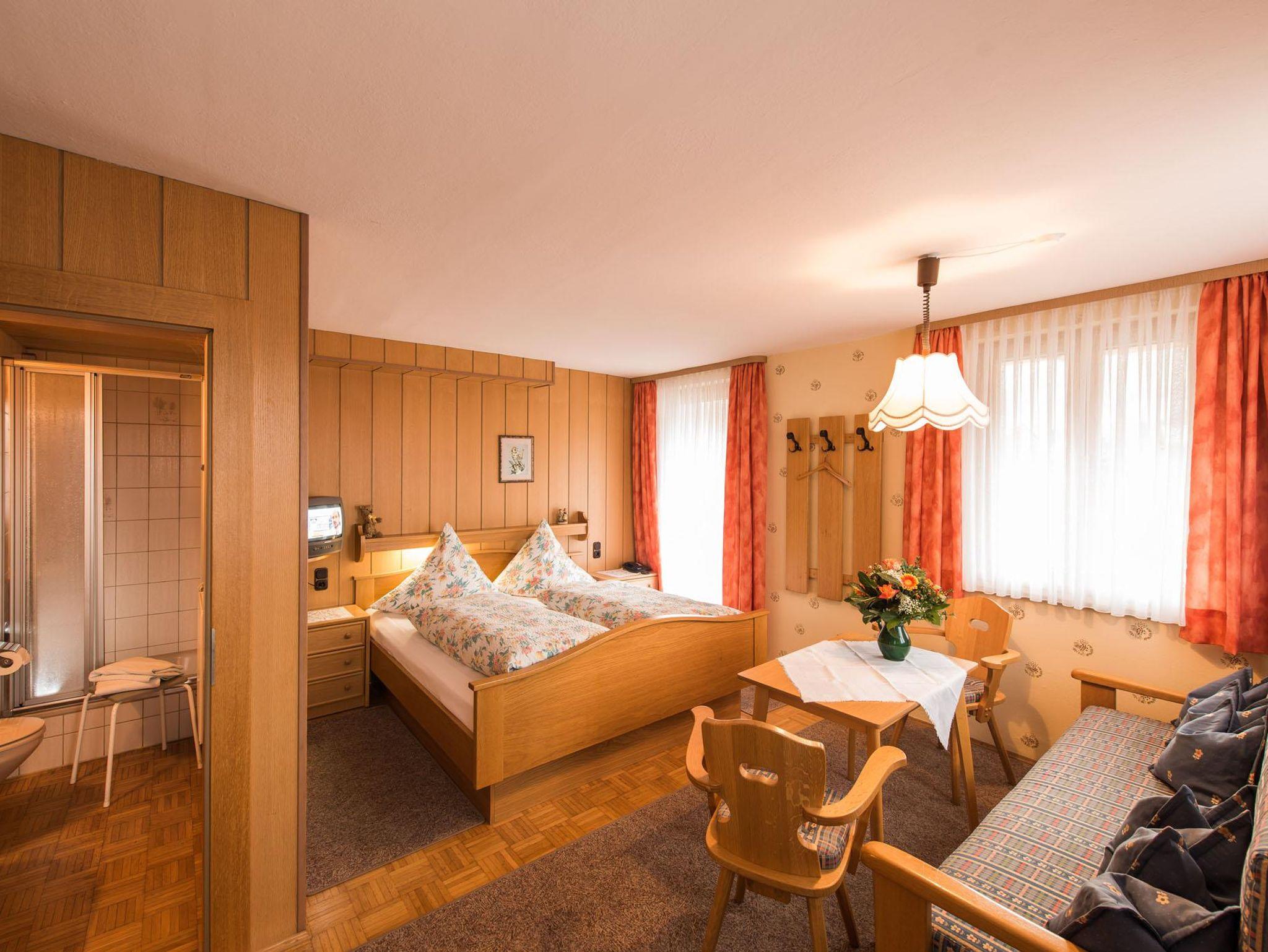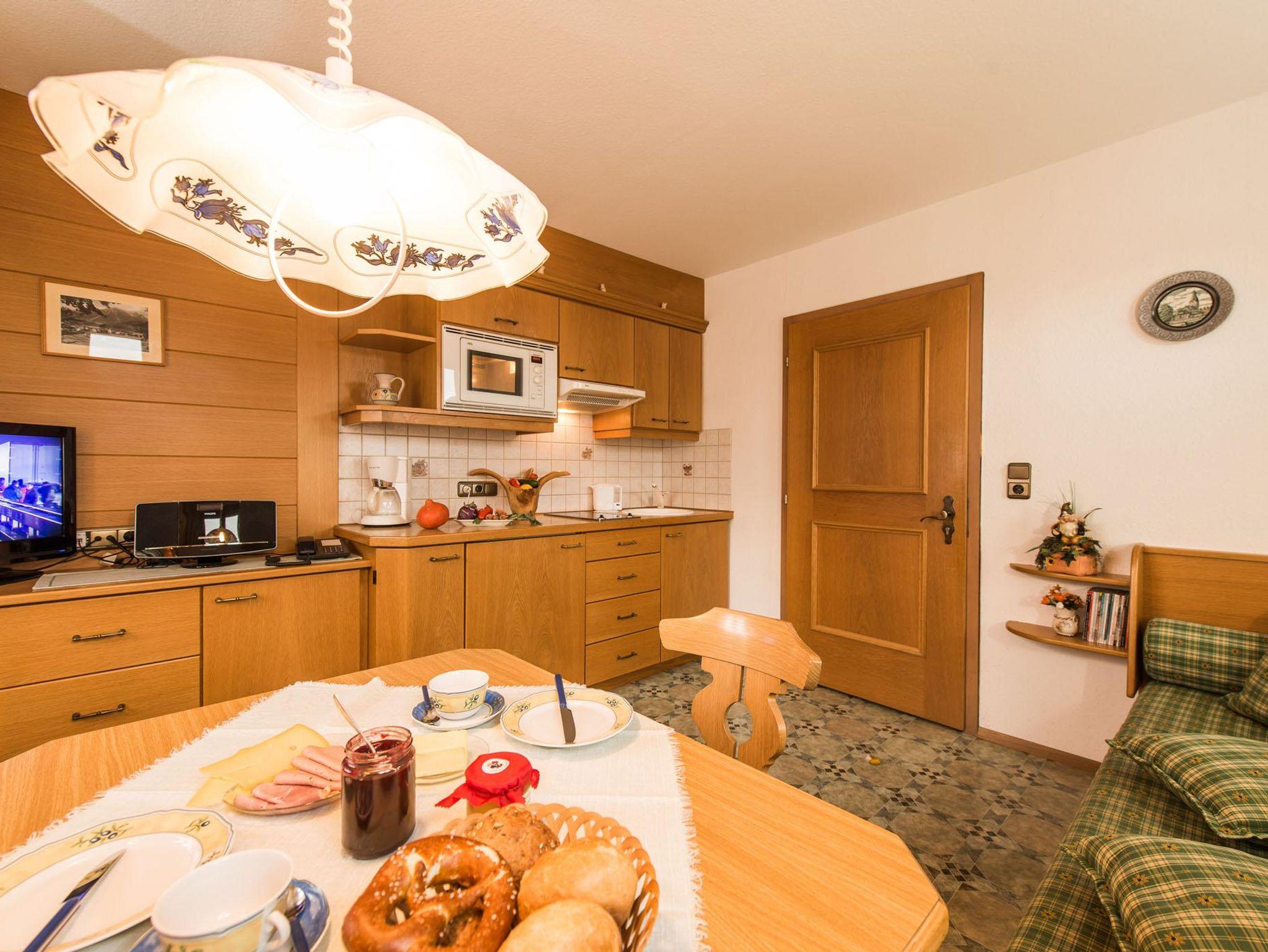 Appartement mit Schlafzimmer, Wohnküche, Süd- u. Westbalkon, LCD-Kabel-TV, DVD, schnelles Lan und W-Lan, Frühstückservice. Begehbare Dusche.