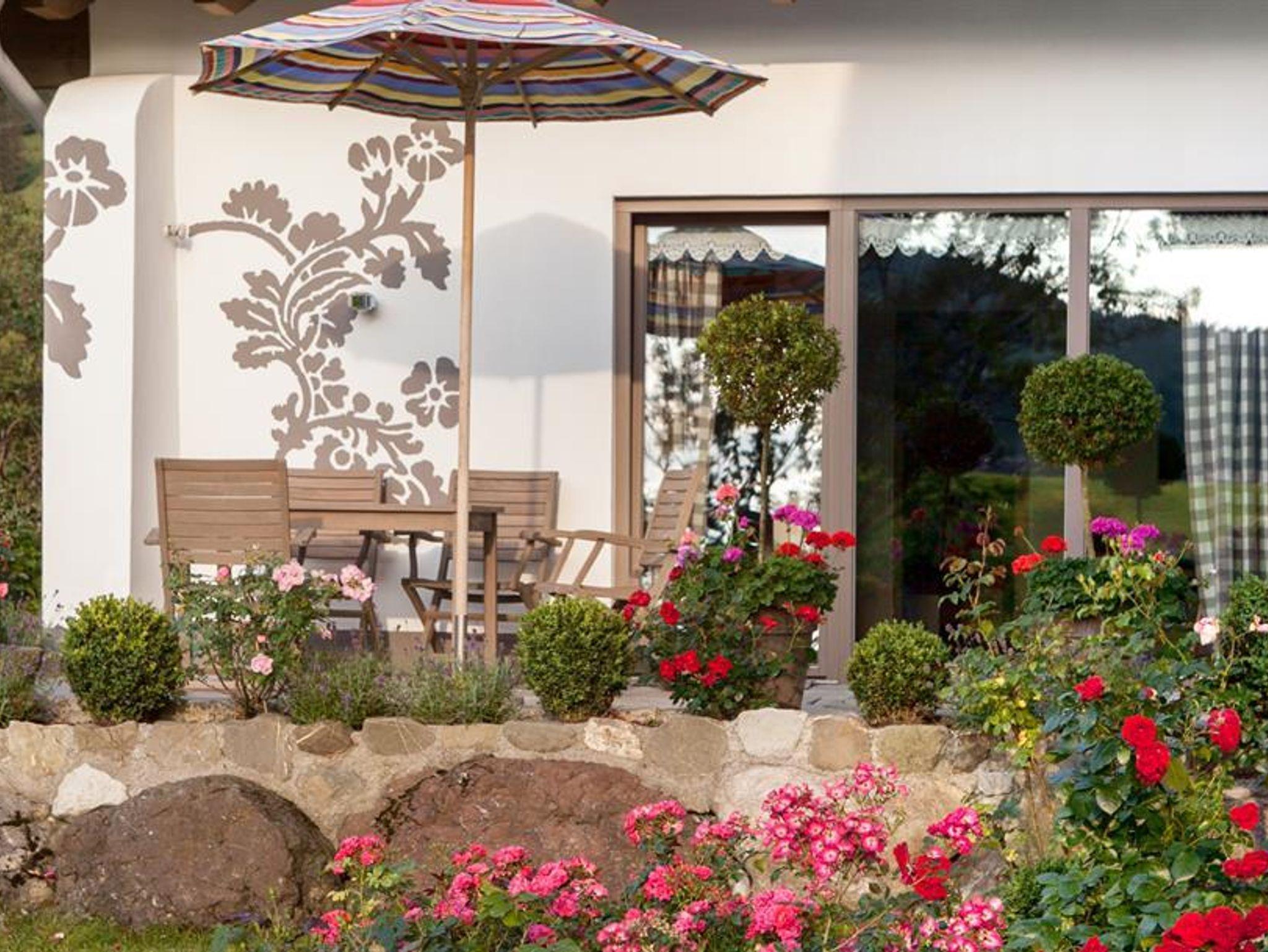 Im Garten lädt unsere neue Gartensauna mit Infrarotkabine, Panorama-Sauna und Ruheraum zur Entspannung ein – und gleich daneben schenkt der BiotopNaturwasserpool frische Leichtigkeit und Bergblick pur.