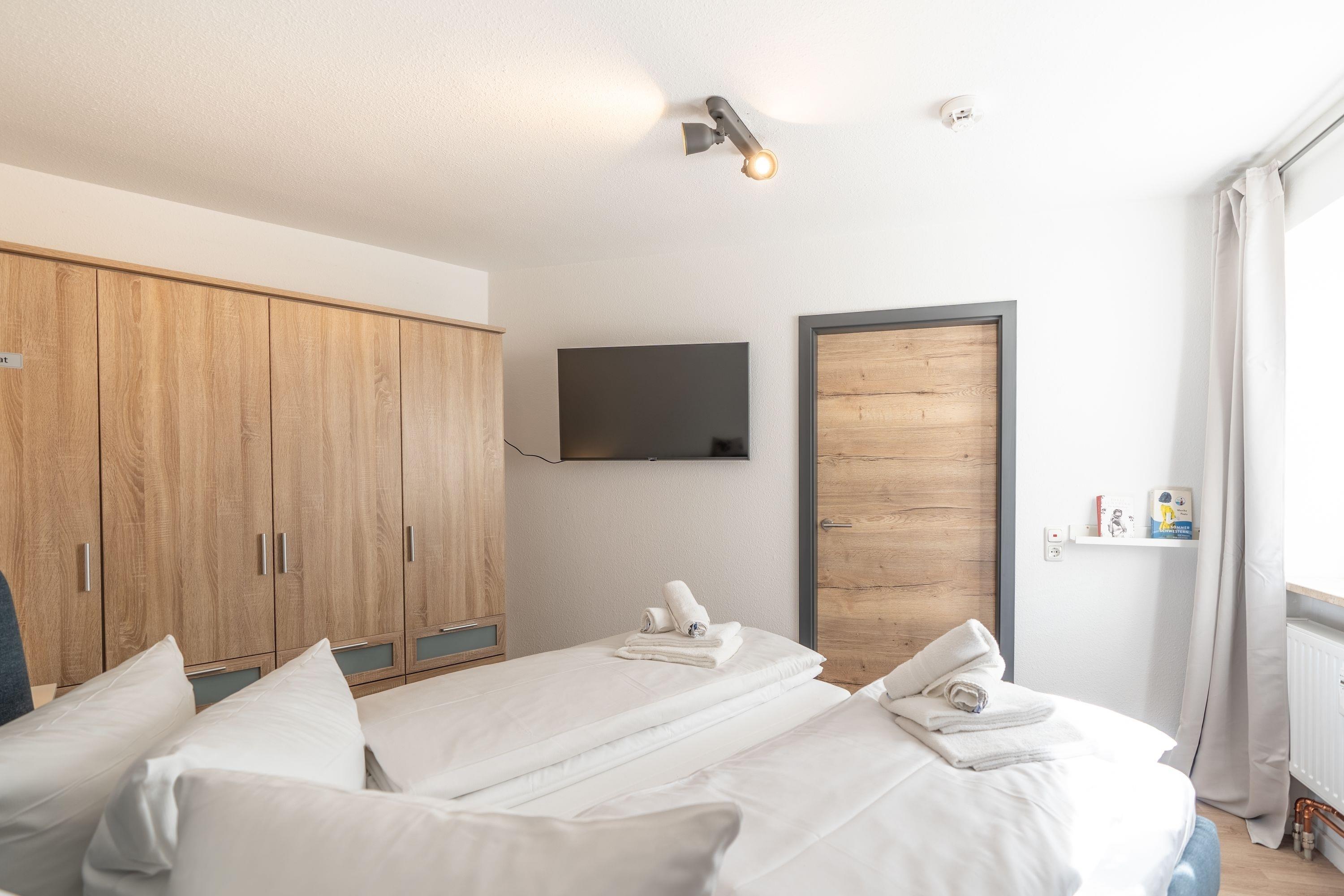 Die Wohnung bietet Ihnen den perfekten Rückzugsort für einen entspannten Urlaub. Sie ist komplett mit Laminat ausgestattet und verfügt über einen großzügigen Wohnraum, der eine offene Küche und eine gemütliche Essecke beherbergt. Das separate Schlafzimmer bietet Ihnen erholsame Nächte in einem komfortablen Doppelbett, begleitet von einem großzügigen Kleiderschrank und einem Flachbildfernseher für Ihre Unterhaltung. Wenn Sie zusätzliche Schlafplätze benötigen, steht Ihnen ein bequemes Schlafsofa im Wohnzimmer zur Verfügung.