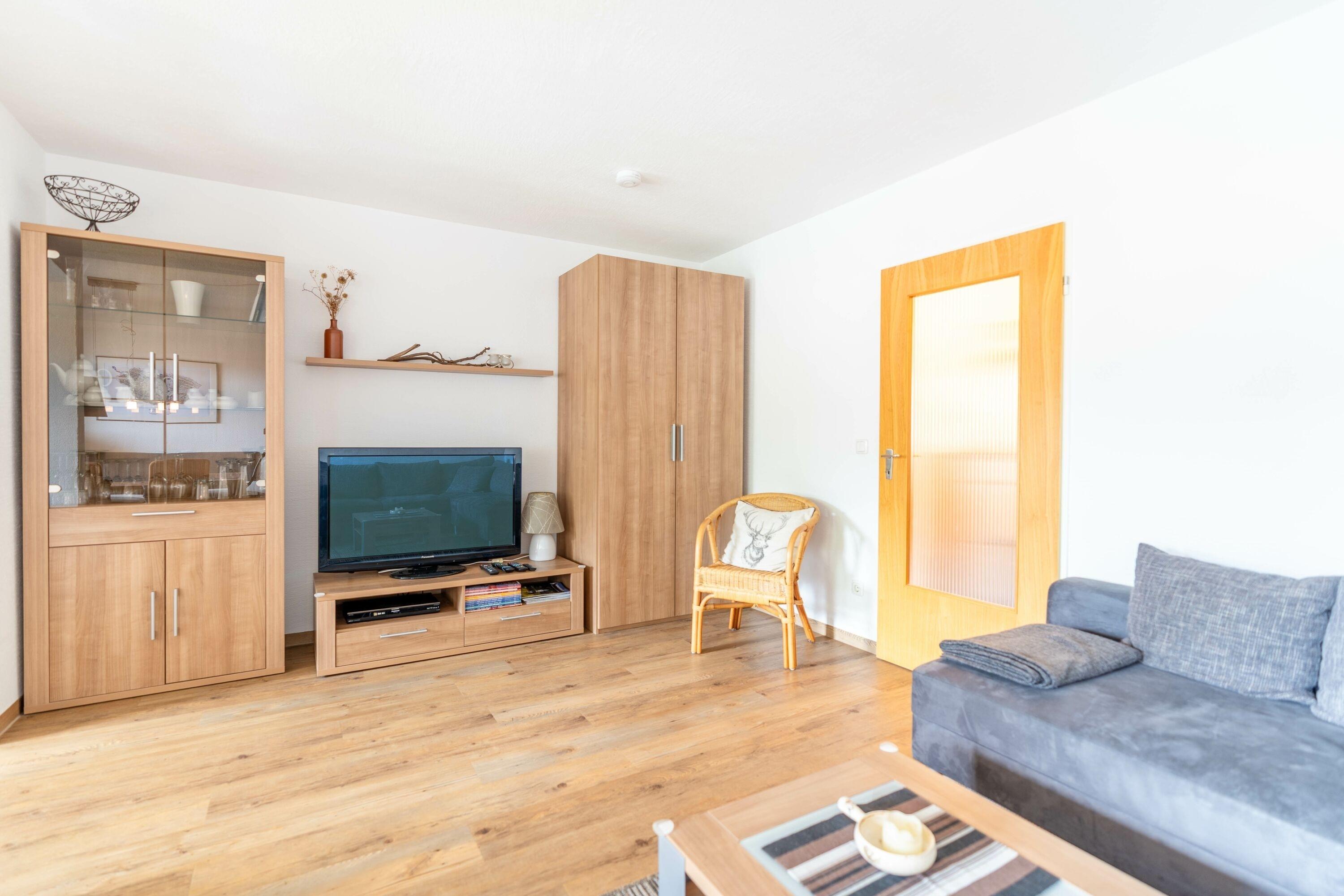 Diese schöne 2-Zimmer-Ferienwohnung für 4 Personen bietet Ihnen einen gemütlichen Wohnraum mit angenehmer Sitz- und Essecke sowie bequemer Schlafcouch, ein TV-Gerät steht Ihnen hier zur Verfügung. Das Schlafzimmer ermöglicht Ihnen mit dem gemütlichen Doppelbett einen erholsamen Schlaf und genügend Stauraum für Ihre Urlaubsgarderobe. Das Badezimmer beinhaltet eine Dusche, ein Waschbecken, WC sowie eine Waschmaschine.
