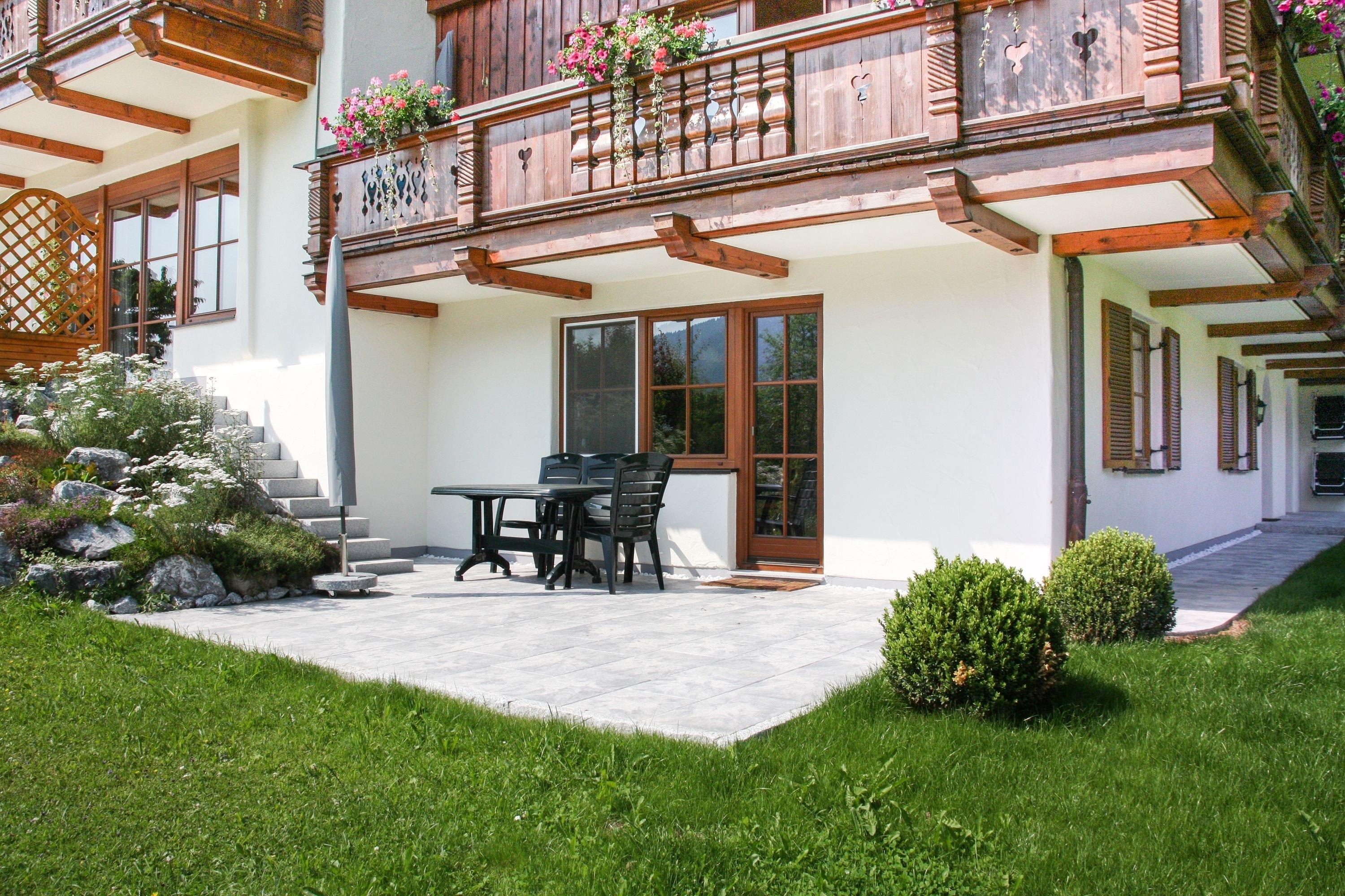 Beginnen Sie Ihren Tag mit einer erfrischenden Dusche im modernen Badezimmer. In der voll ausgestatteten Ku¨che finden Sie alles was Sie beno¨tigen, um ko¨stliche Mahlzeiten zuzubereiten - vom Backofen bis zur Spu¨lmaschine. Im großzu¨gigen und hellen Wohn- und Essbereich mit herrlichen Bergblick und direktem Terrassenzugang ko¨nnen Sie sich rundum wohlfu¨hlen.