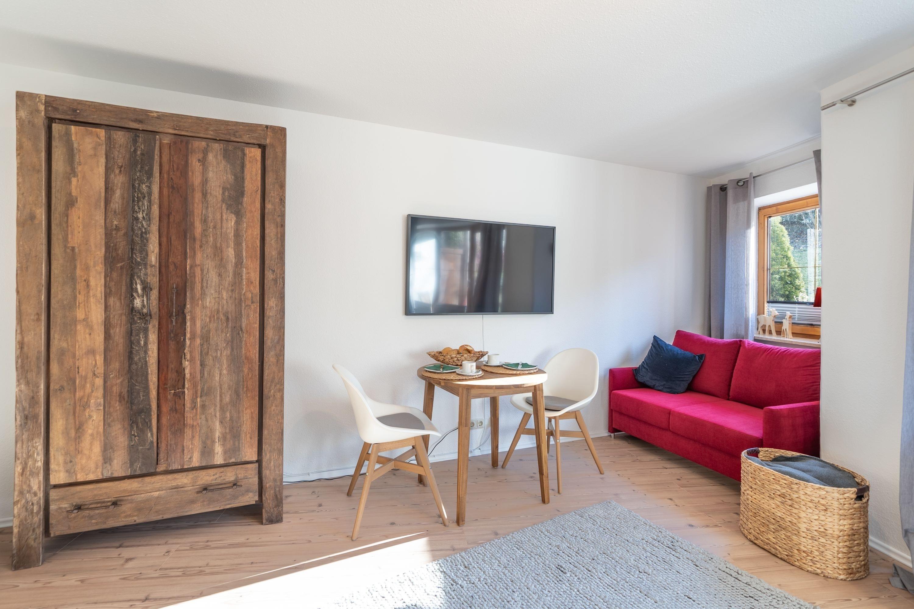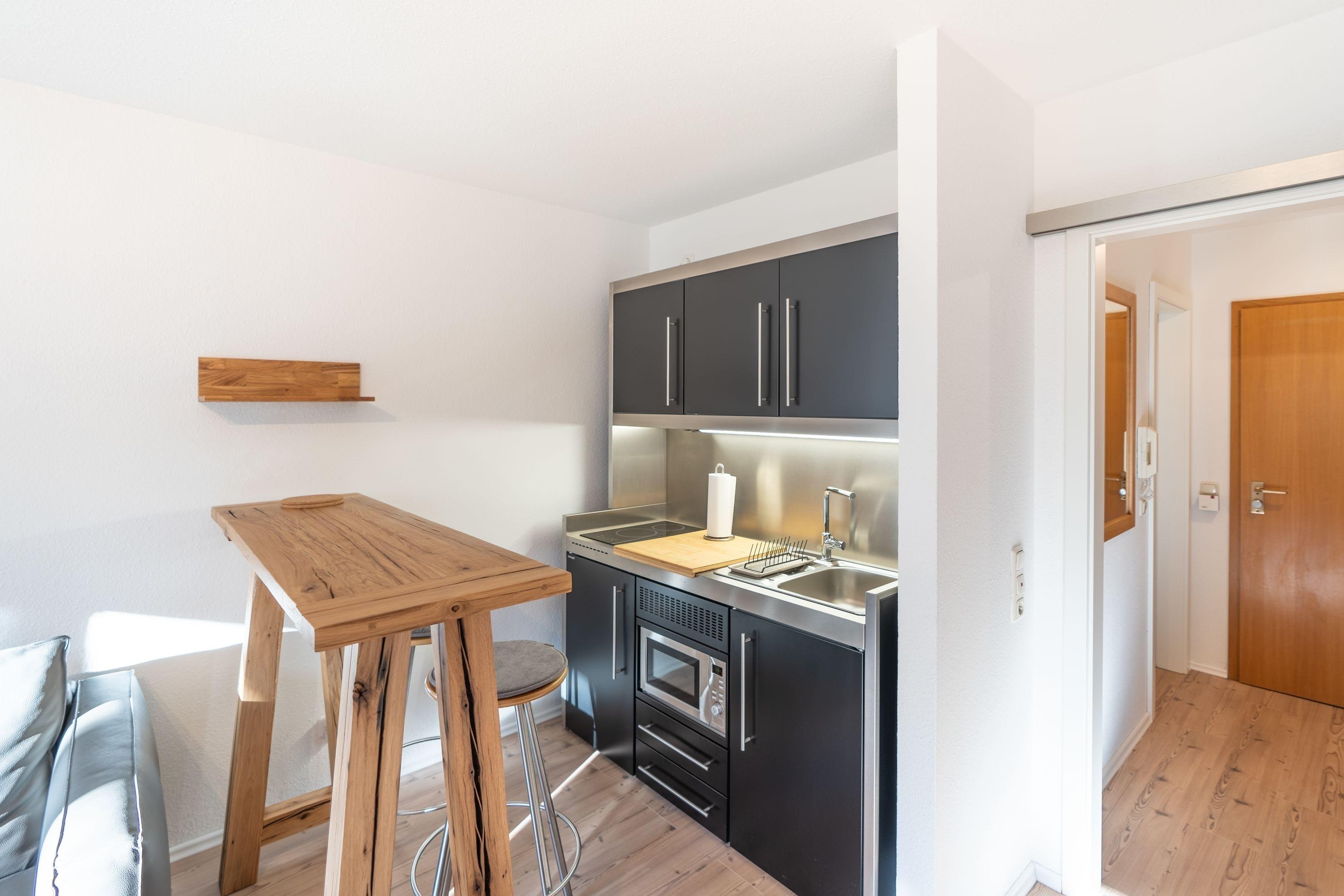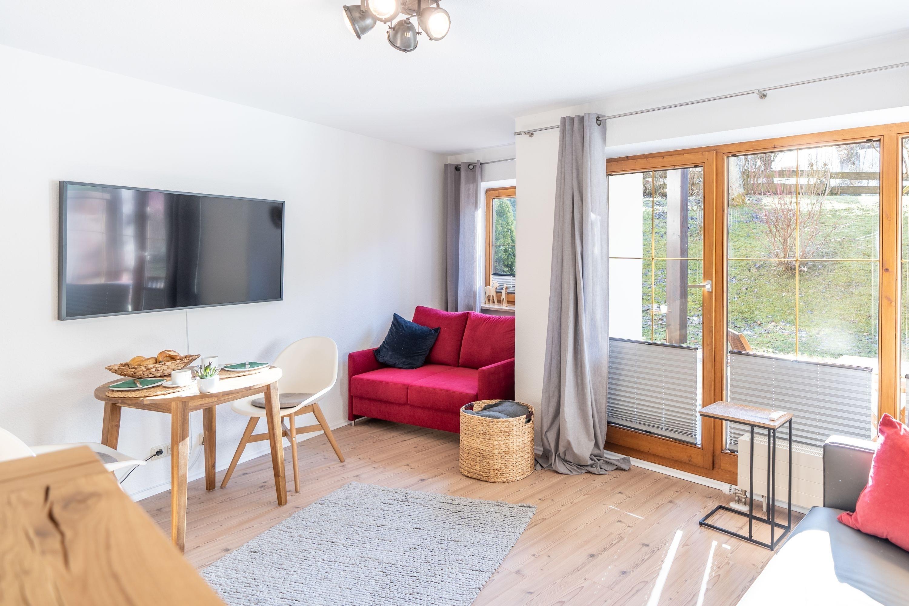 Die Wohnung bietet Ihnen den perfekten Rückzugsort für einen entspannten Urlaub zu zweit oder alleine. Das Einzimmerappartement verfügt über einen kombinierten Wohn-/Schlafraum mit einem bequemen Dauerschläfersofa und eine kleine offene Küche, die mit allem Wichtigen ausgestattet ist. Das moderne Badezimmer bietet Ihnen eine Badewanne mit Dusche, ein Waschbecken und ein WC. Genießen Sie den herrlichen Bergblick auf der Terrasse und verbringen Sie angenehme Stunden im Freien.