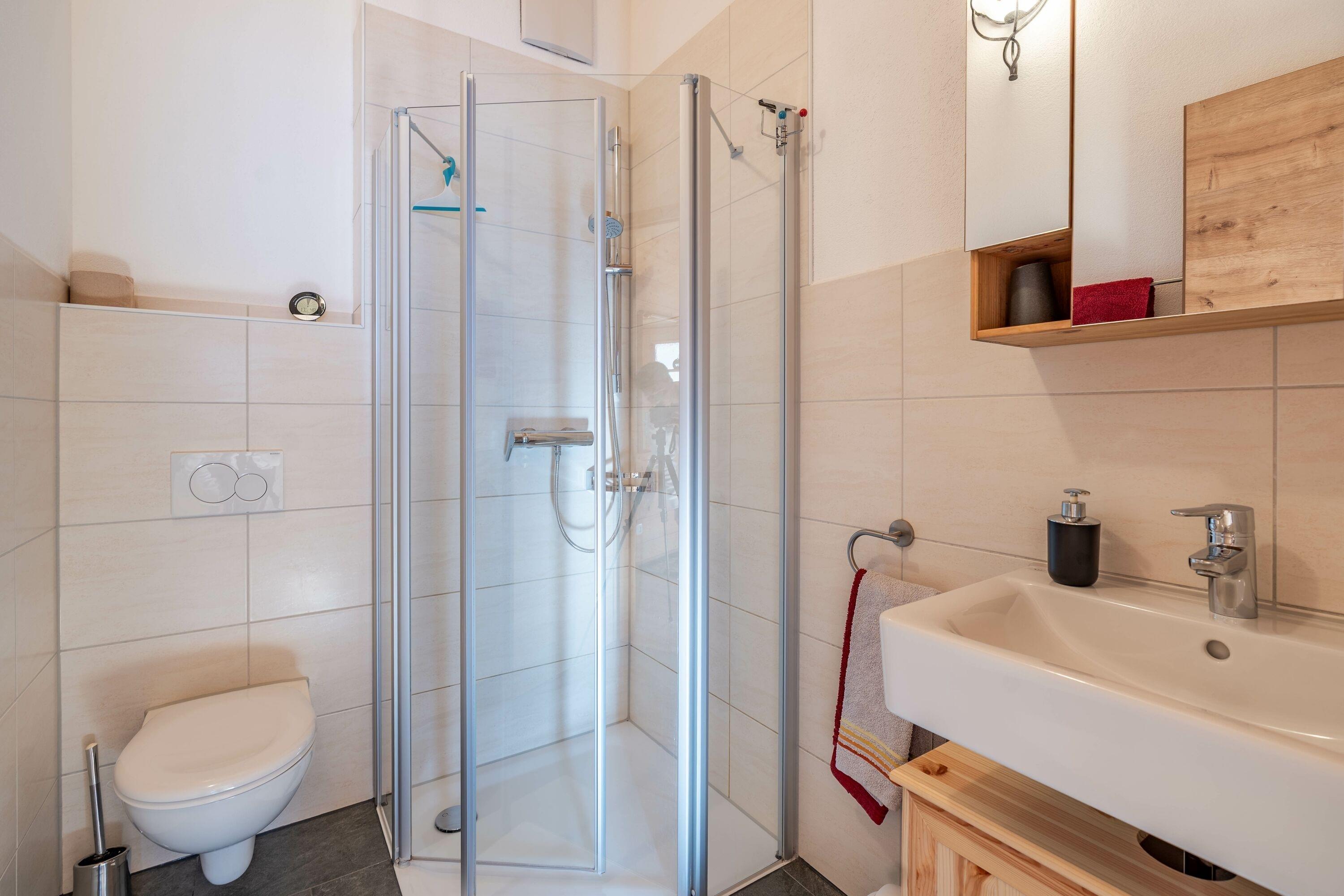 Die modern eingerichtete Küche sowie das Badezimmer mit Dusche sorgen für zusätzlichen Komfort während Ihres Aufenthalts.