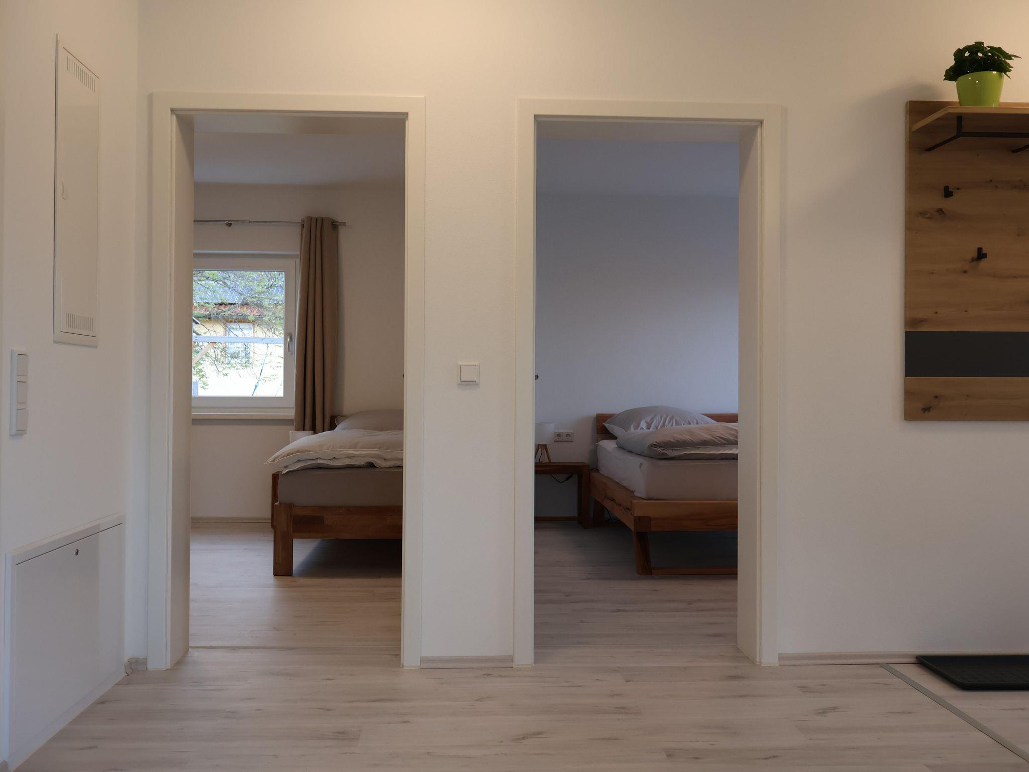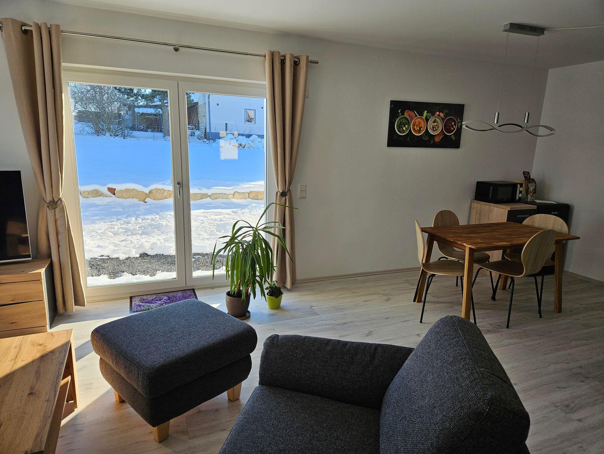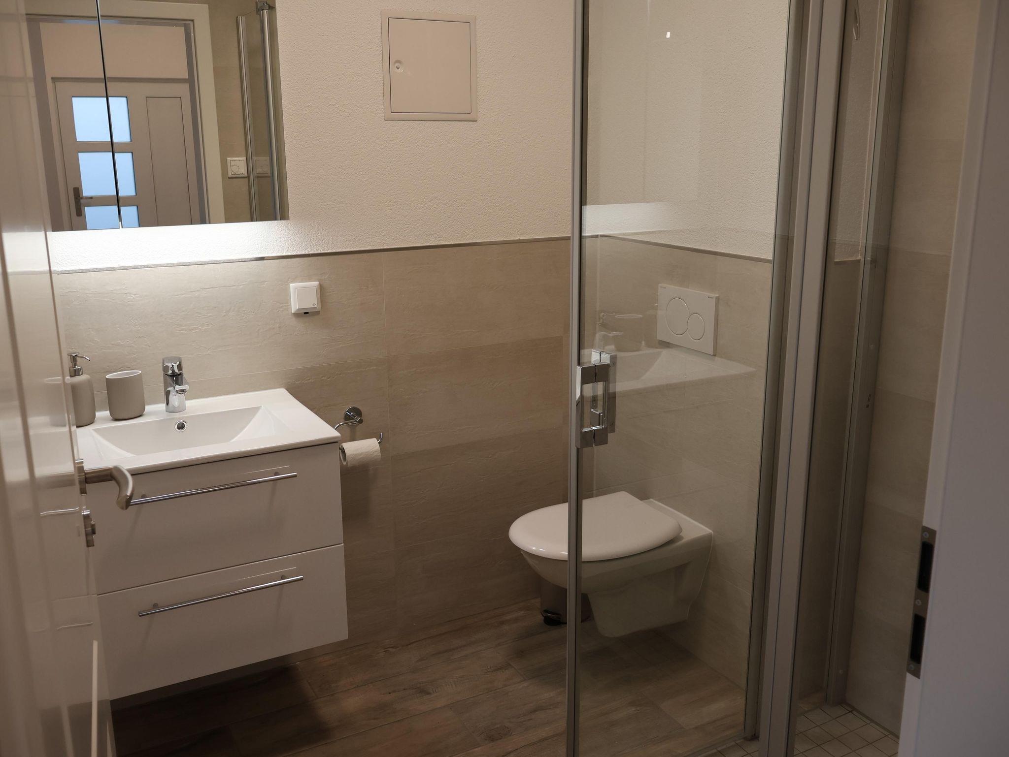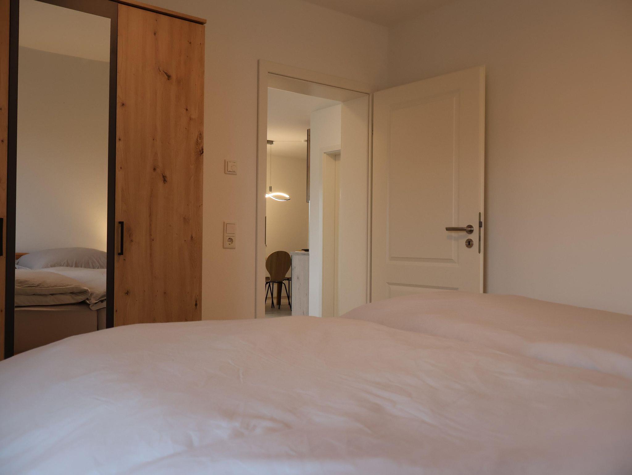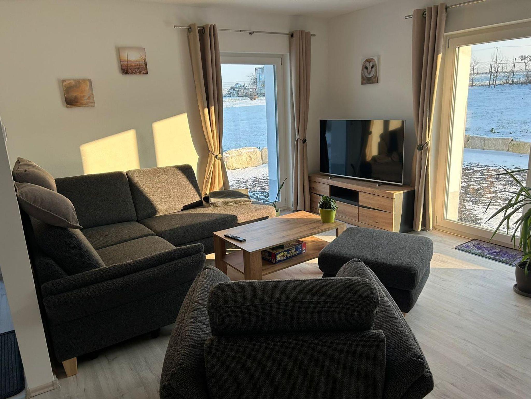 Unsere neue Ferienwohnung mit 71 m² Wohnfläche bietet im Erdgeschoss mit Gartenblick Platz für 1-4 Personen. Die gemütliche Wohnküche mit Sofa und Flachbild-TV lädt zum Verweilen ein. Die komplett ausgestattete Küchenzeile mit Geschirrspüler, Kühlschrank inkl. Gefrierfach, Herd, Backofen, Mikrowelle, Wasserkocher, Toaster und Kaffeemaschine lässt keine Wünsche offen. Die Ferienwohnung verfügt über zwei separate Schlafzimmer mit einem Doppelbett und zwei Einzelbetten. Das Badezimmer mit ebenerdiger Dusche, WC, Waschtisch und Handtuchtrockner rundet das Gesamtbild ab. Vor allem im Sommer können Sie entspannte Grillabende in unserem Garten verbringen. Bitte beachten Sie, dass keine Haustiere erlaubt sind. Das WLAN und den Parkplatz vor dem Haus können Sie kostenfrei nutzen.