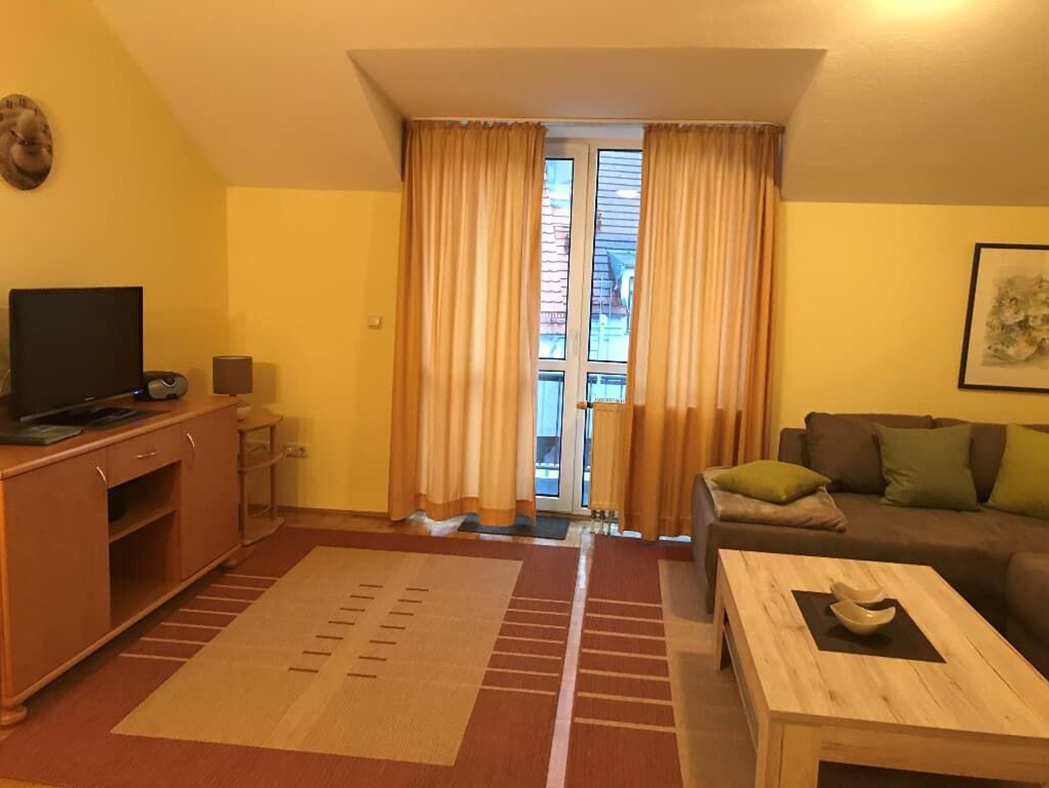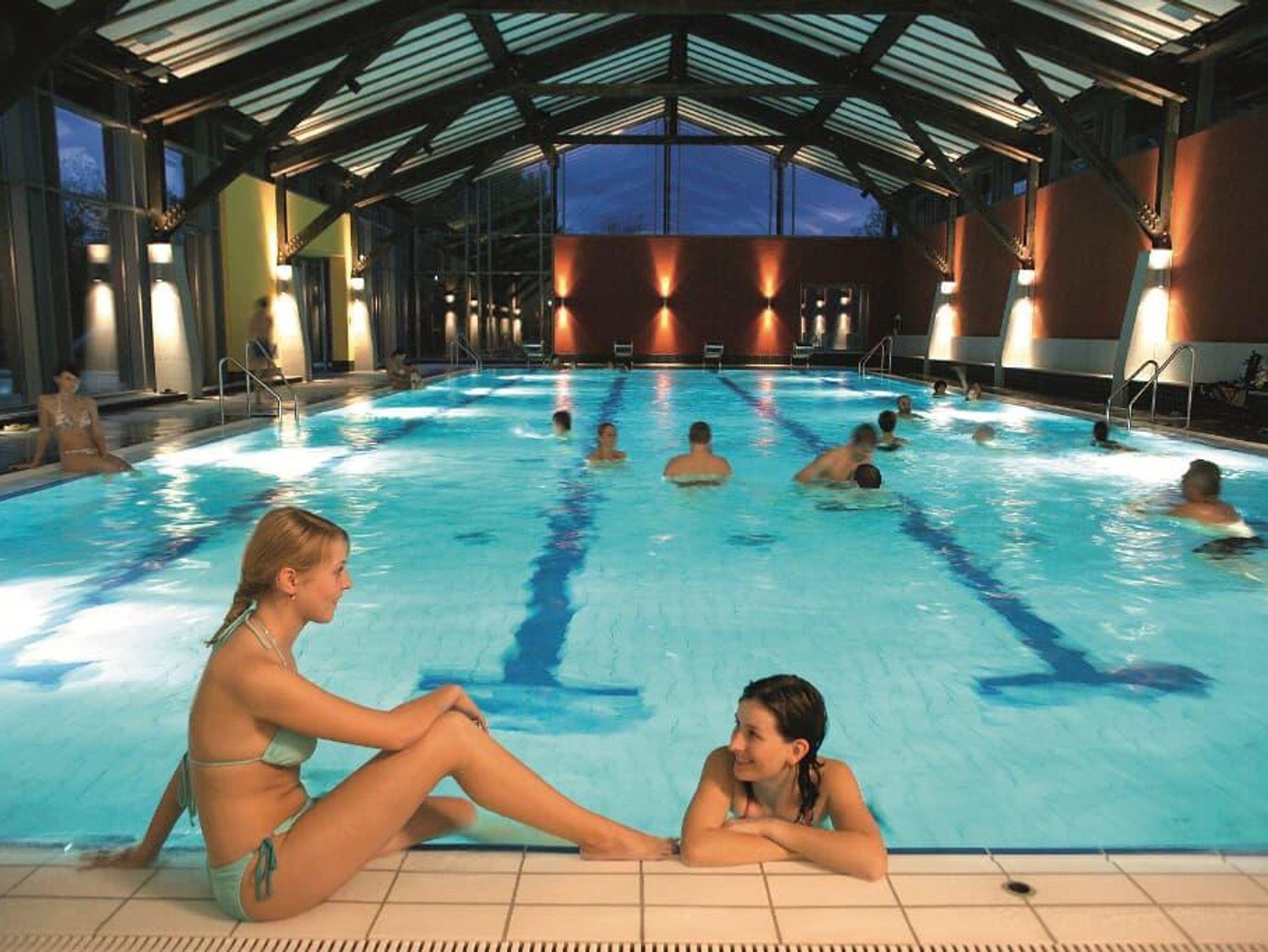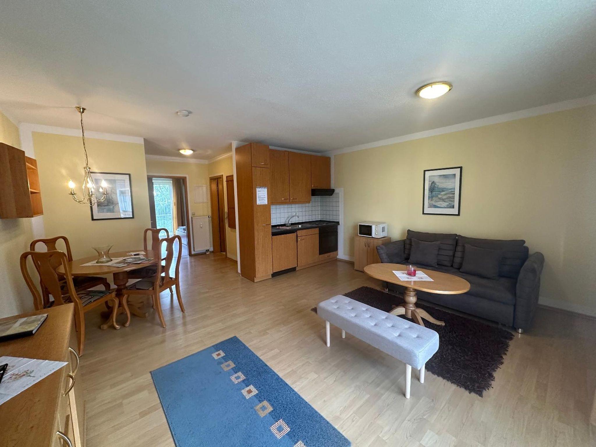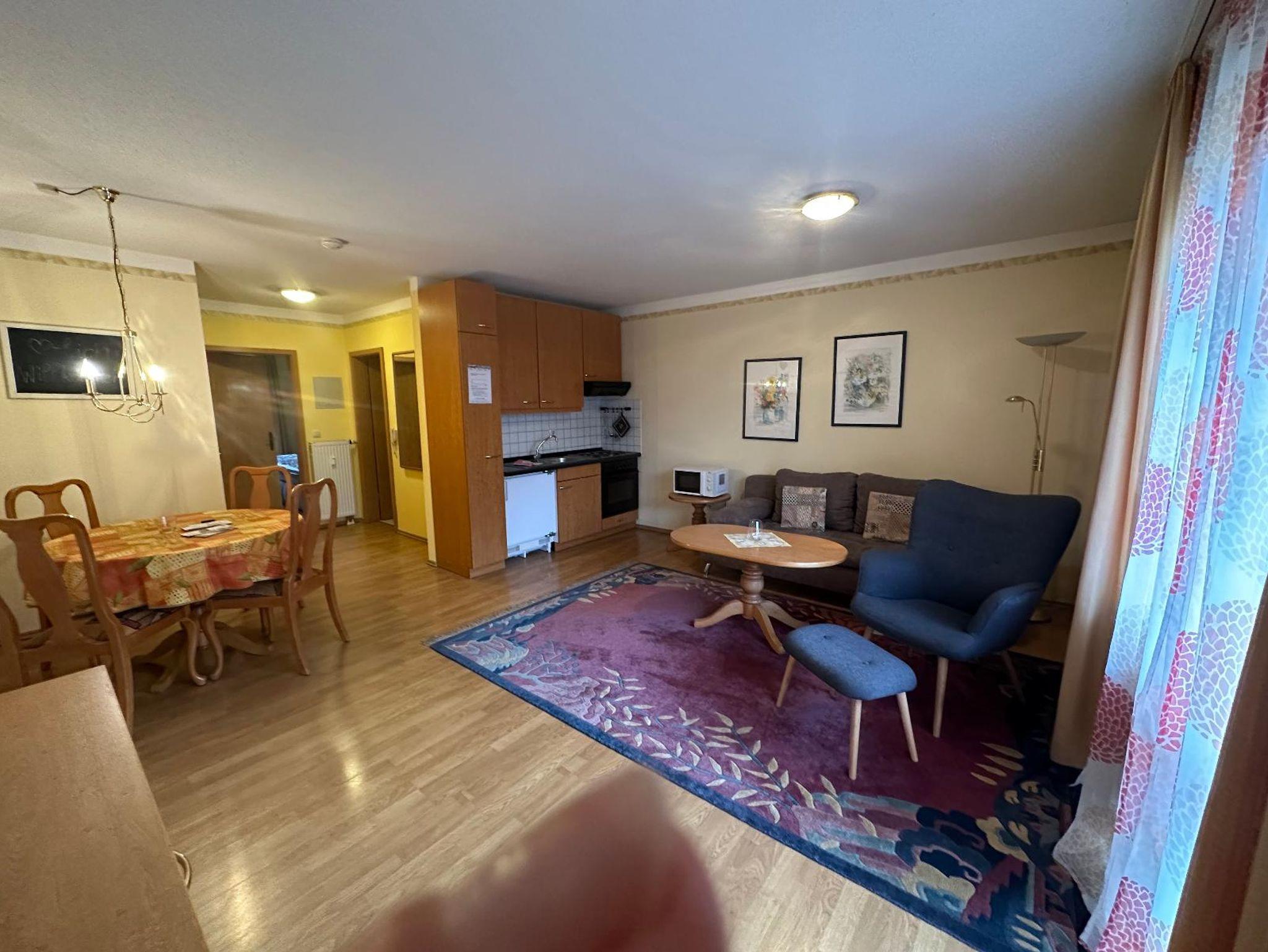 Ferienappartement mit einem sep. Schlafraum für 2 Personen mit Wohnküche, entweder Terrasse oder Balkon. Das Appartement verfügt über ein Badezimmer mit Dusche/WC und Fön. Im Wohnraum befindet sich eine ausgestattete Küche sowie ein Essplatz. Hier ist der Eintritt in die Bade- und Saunawelt für 2 Personen enthalten für 3 Std. täglich.