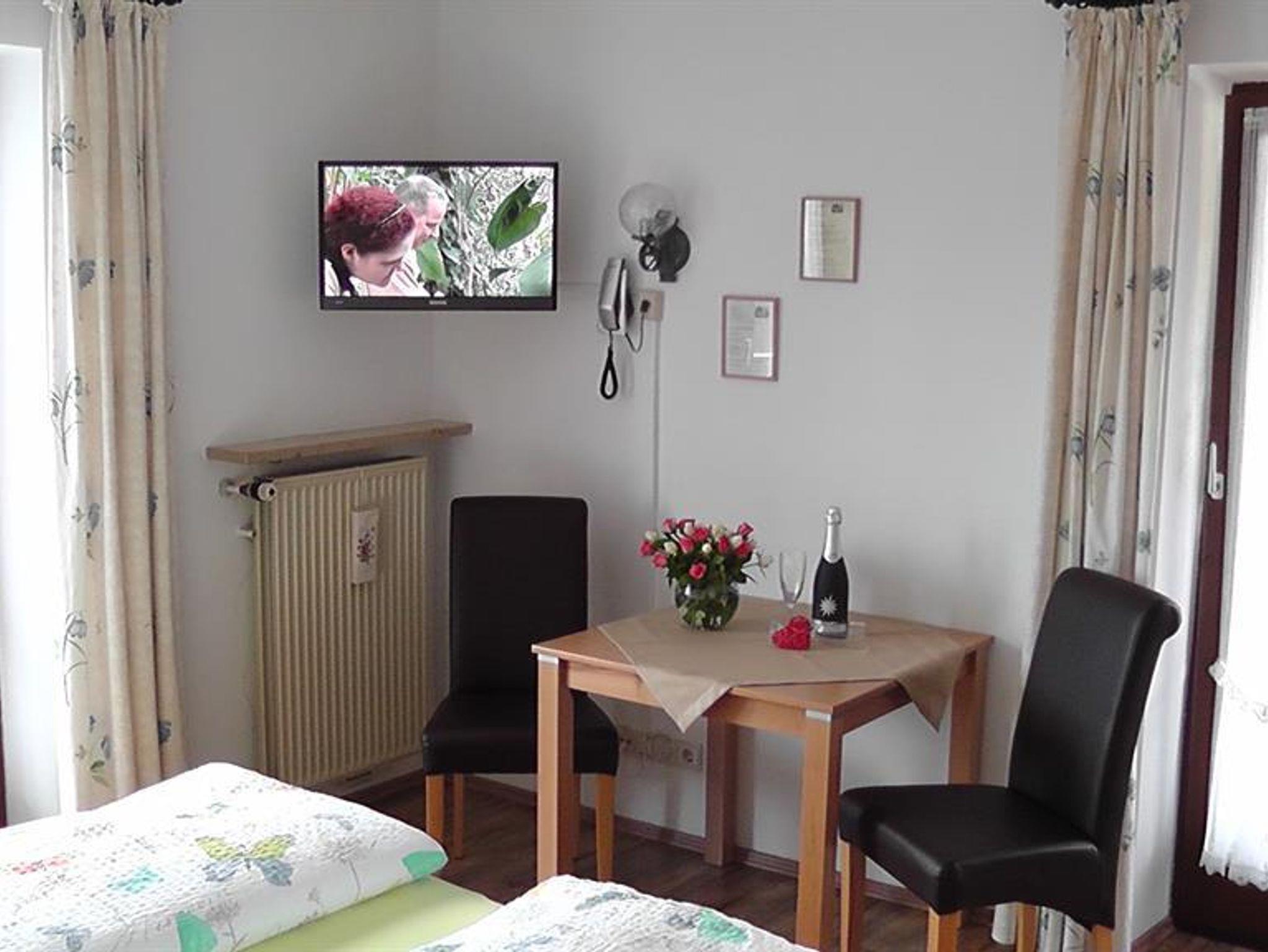 Komfortabel und liebevoll eingerichtete Doppelzimmer. Alle Zimmer verfügen über Balkon und Blick aufs Murnauer Moos oder aufs Hörnle (Hausberg). Dusche und WC, Haarfön und div. Kosmetikartikel, Durchwahltelefon, LED-Sat TV. W-Lan kostenlos. Ruhig gelegen. Nähe Kurpark und unmittelbarer Nähe zu den Kurmittelhäusern. Parkplatz am Haus. Reichhaltiges Frühstücksbuffet. Seperat, komplett eingerichtete Gästeküche; Gästekühlschrank; Getränkeservice.