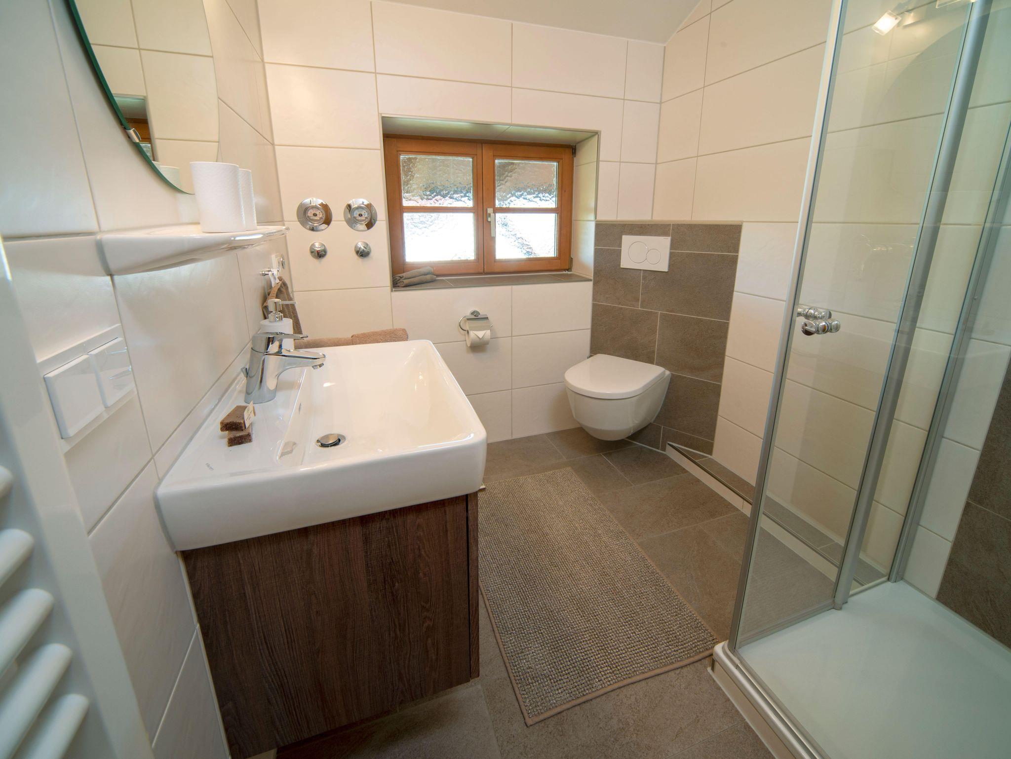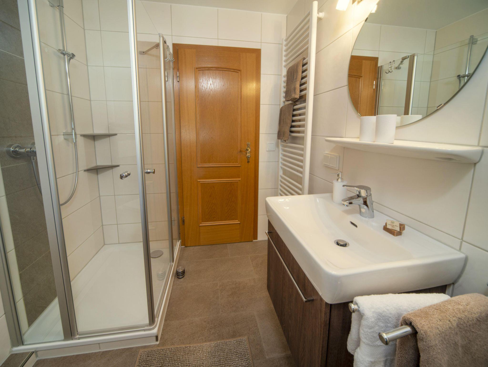 • Bad mit begehbarer Dusche, WC, Handtuchtrockner, Fön, Bademäntel