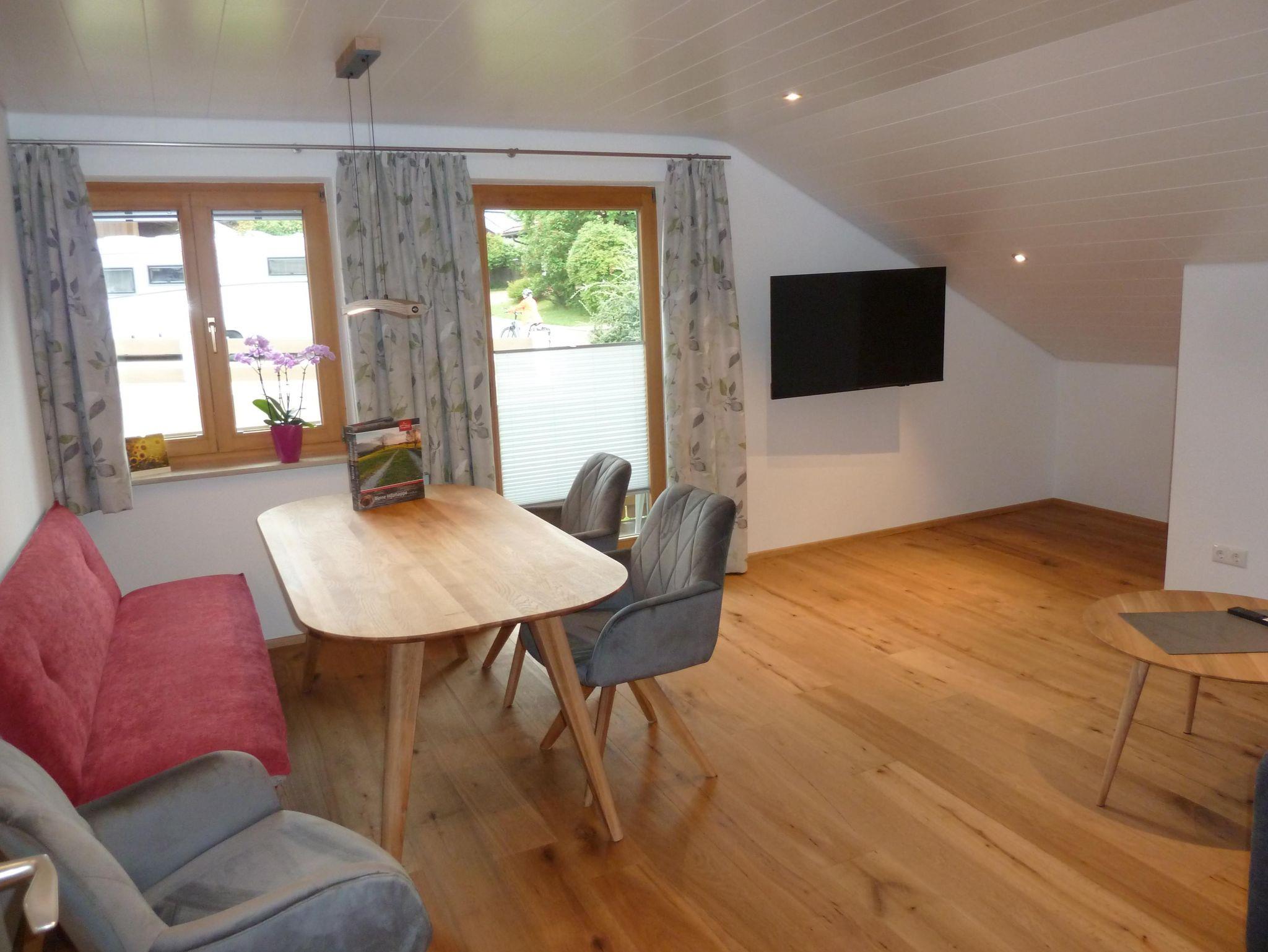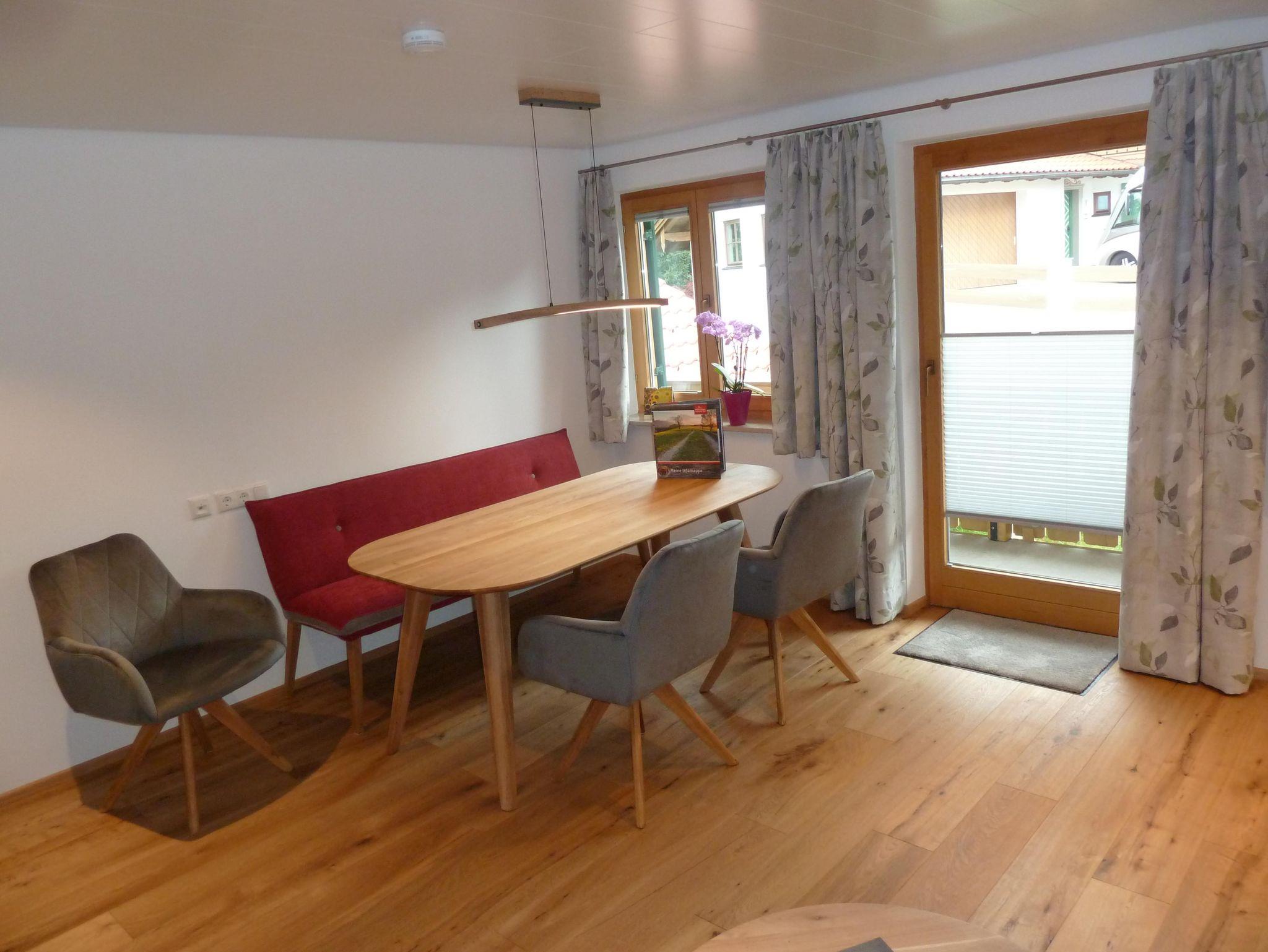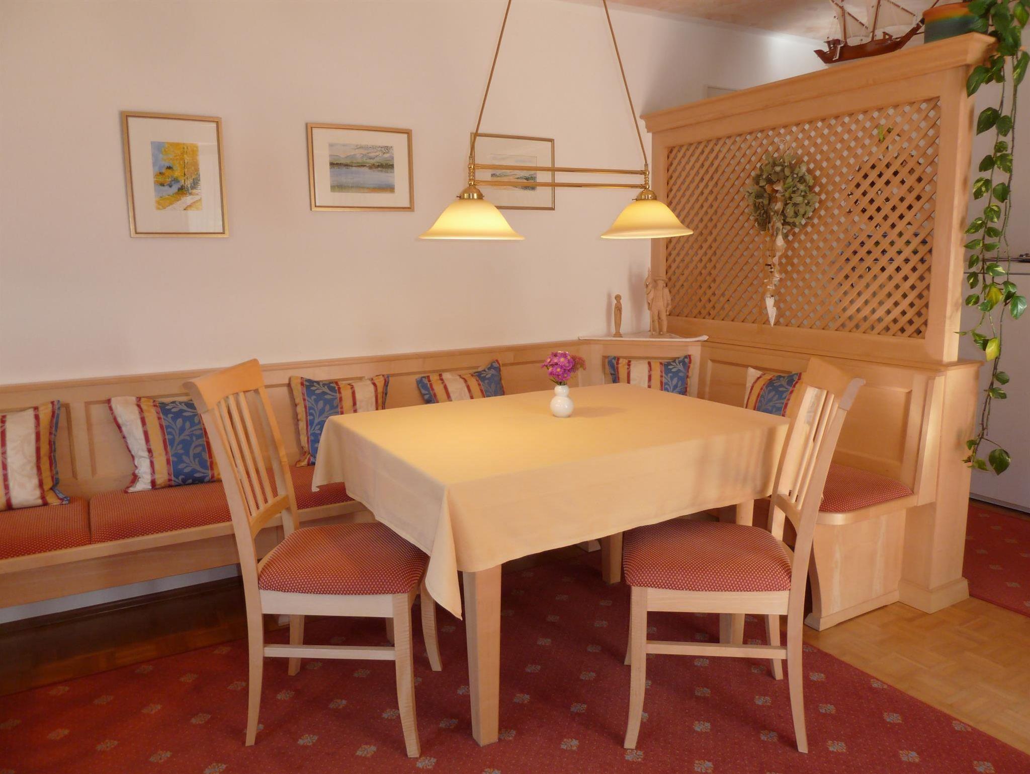 Neue, schöne, gemütliche und liebevoll eingerichtete Ferienwohnung mit möblierten Südbalkon, mit Blick auf unseren Hausberg Hörnle. Im geräumigen Wohn-und Esszimmer mit Balkontüre, Smart TV und Lan Anschluss am großen Esstisch für 6 Personen, bequemer Bank und dreh Sesseln, laden zum gemütlichen beisammen sein ein. Komfortables Sofa (als Schlafgegenheit möglich) und einen Schlafsessel (102cm*190cm).
