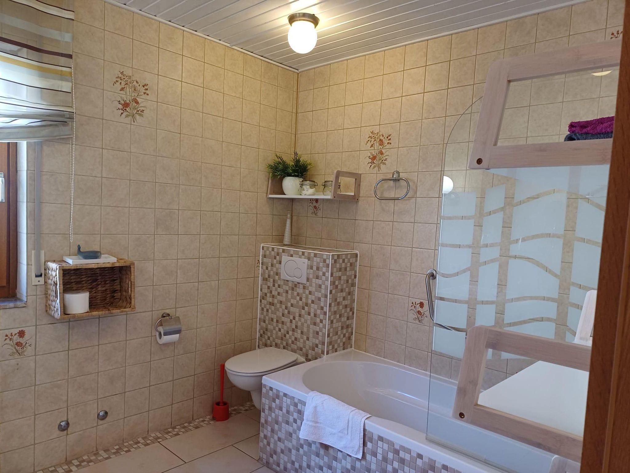 Gemütliche Ferienwohnung mit TV, Stereoanlage und Tageslichtbad; Leseecke, Essecke und Geschirrspüler sowie überdachter Terrasse.