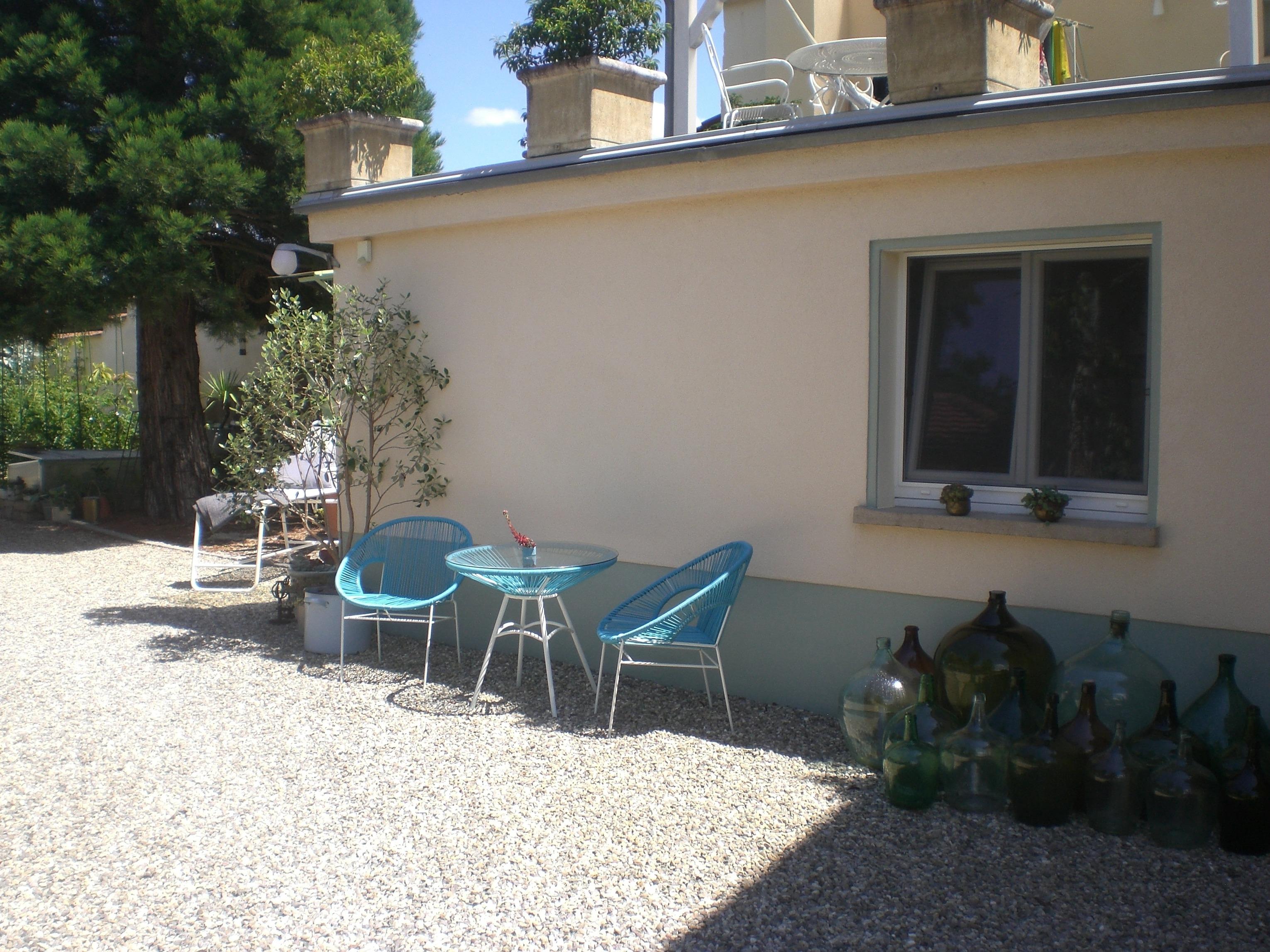 Das 2019 ausgebaute Studio im Anbau unseres Hauses befindet sich im Gartenbereich unseres Grundstückes, direkt davor befindet sich eine kleine Terrasse zum gemütlichen Verweilen.