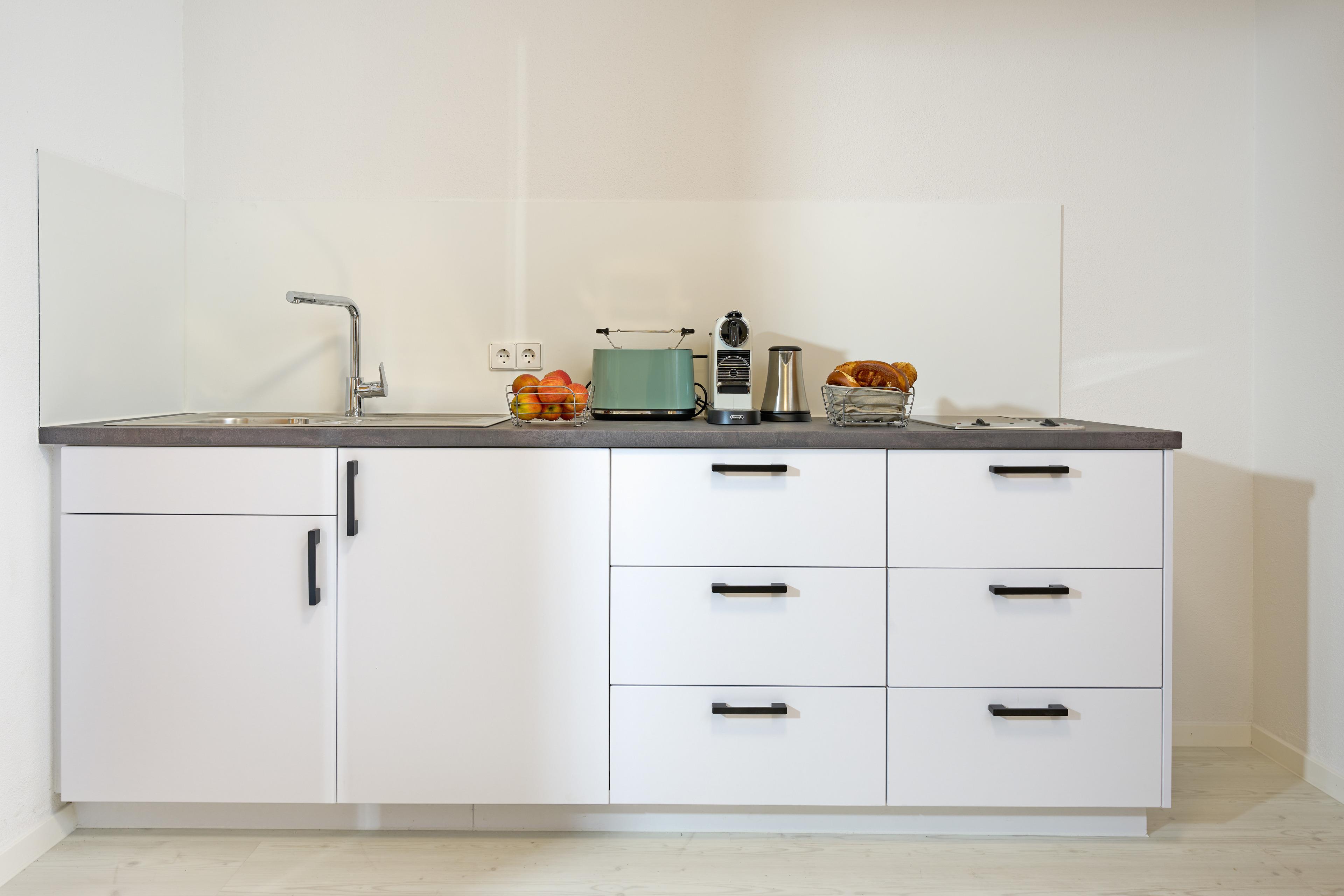 Das kleine Appartement hat trotzdem alles, was es für einen Appartementaufenthalt benötigt. Es ist ein Raumappartement. Das Doppelbett ist ein hochwertiges Boxspringbett, es gibt eine Sitz-Essecke und eine Küchenzeile mit einem 2 Plattenherd, einer Nespressokaffeemaschine, Toaster und einem Wasserkocher. Das Bad ist ebenerdig, ohne Stufen. Das Appartement hat auch eine kleine Terrasse, die Richtung Osten ausgerichtet ist. Das Appartement befindet sich im EG. und ist ohne Stufen zu erreichen. Die Lage des Appartements ist sehr ruhig. Im Bad lässt sich beim Duschen wohlfühlen - in der Dusche umgibt sie ein Schwarzwaldbächle.