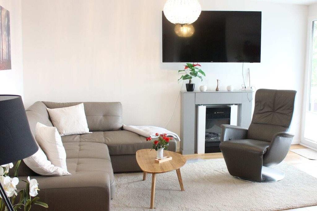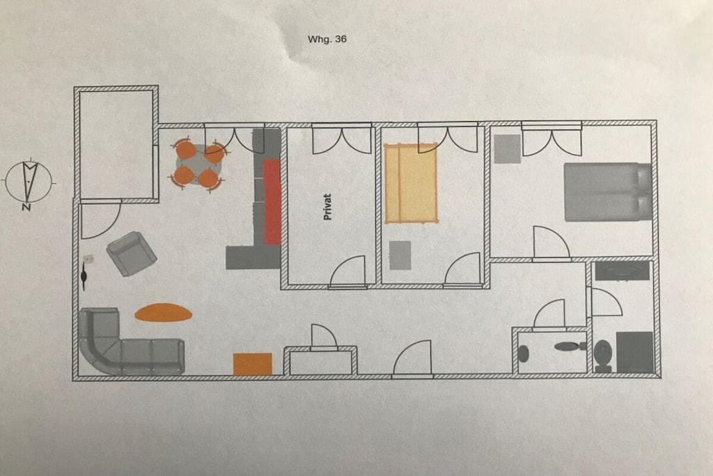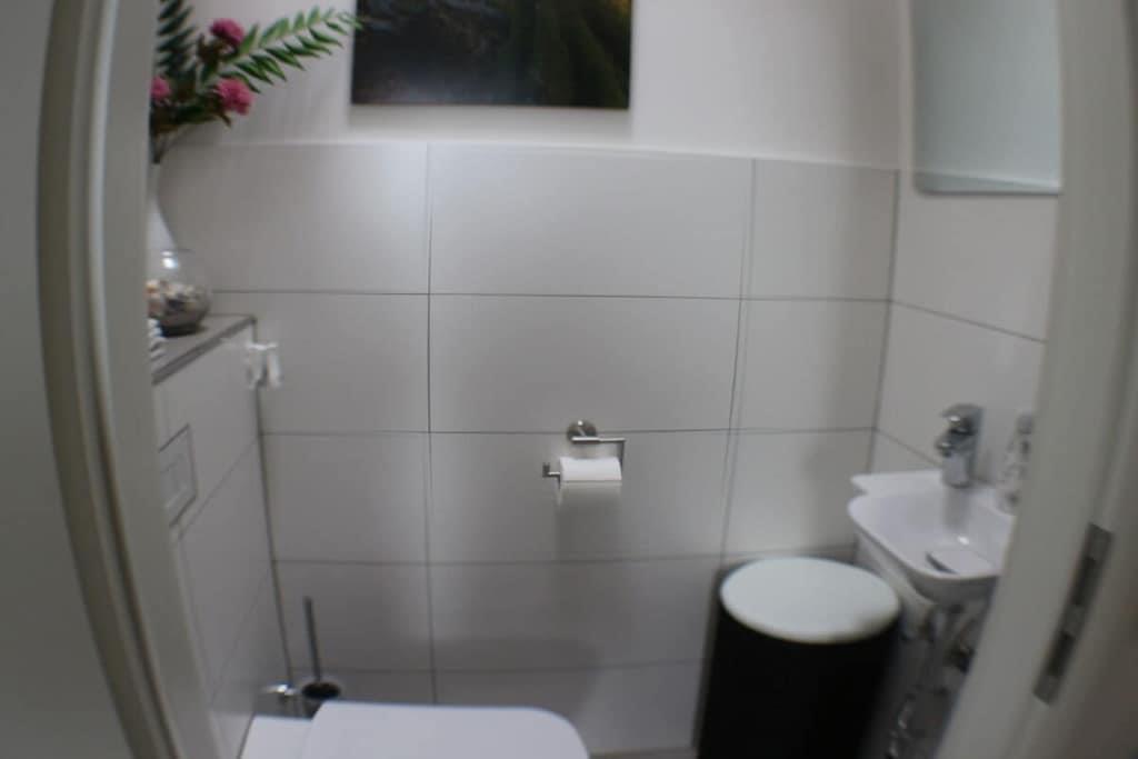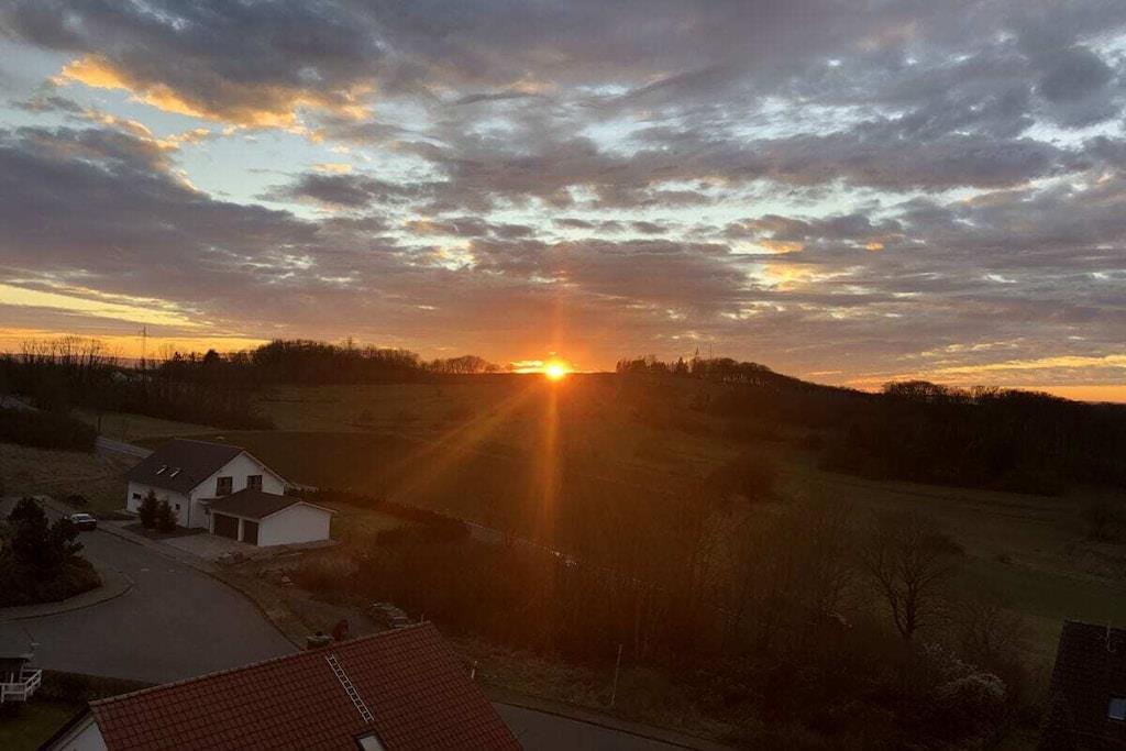 Ferieleiligheten «Traum am Paradies» ligger i toppetasjen i en bygård i de sørlige Harz-fjellene. Utsikten er fantastisk. Eiendommen har en førsteklasses beliggenhet i kurbyen Bad Lauterberg. Parkering er gratis, det er et innendørsbasseng i kjelleren og et treningsrom med bordtennisbord. Leiligheten ble totalrenovert i 2020 og har moderne fasiliteter. Leiligheten har en stor stue med integrert kjøkken og en tilstøtende balkong. Kjøkkenet er fullt utstyrt, og det er to soverom, ett med en stor dobbeltseng og ett med en enkeltseng. Badet er utstyrt med dusj og toalett, og det er et separat toalett ved siden av. Alle rom har vinduer, og badene har takvinduer.