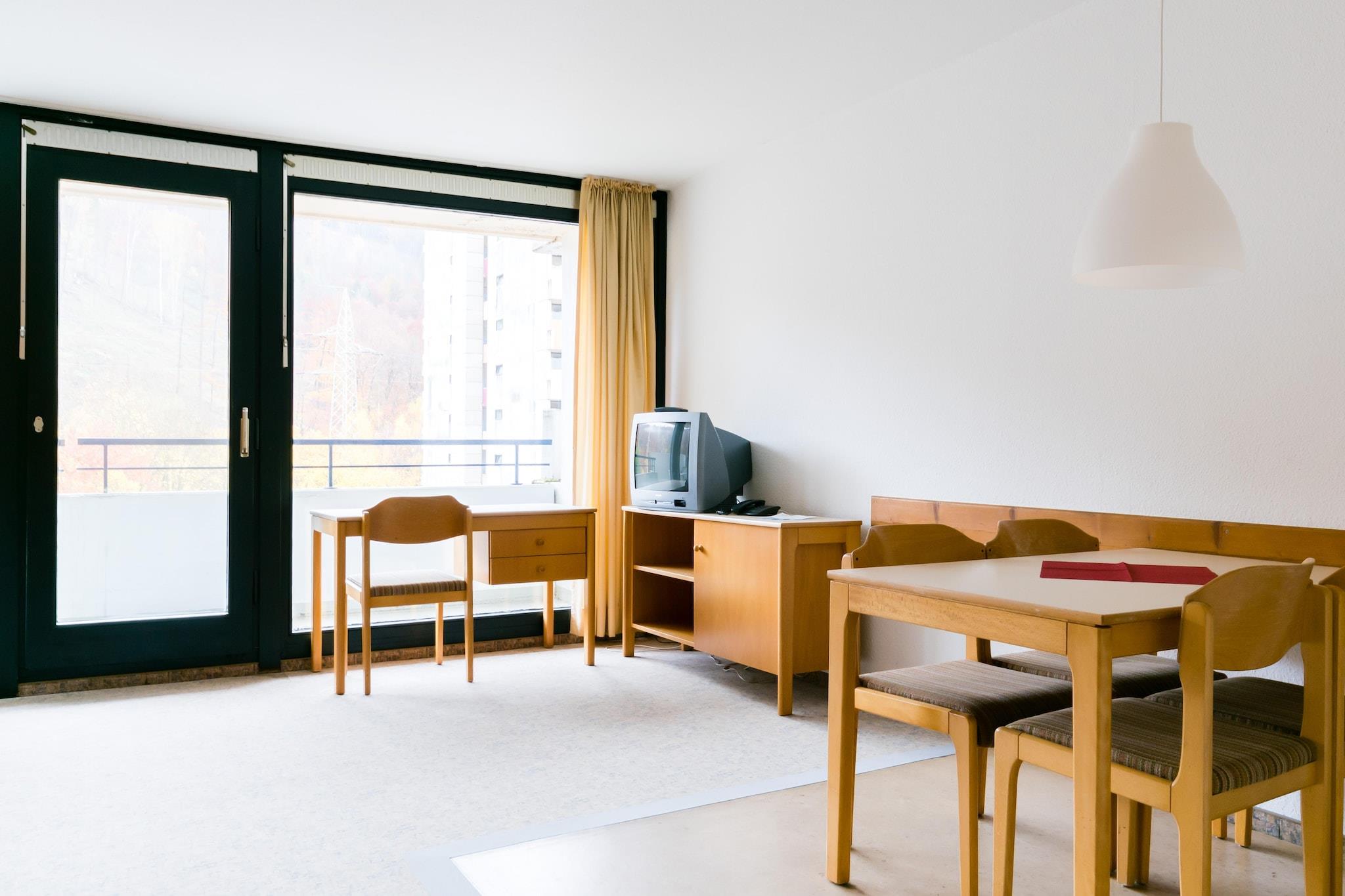 Åpent kjøkken(komfyr med kokeplater(komfyr med 4 kokeplater), vannkoker, brødrister, kaffetrakter, kjøleskap), Stue/spisestue(1 persons sovesofa, 1 persons sovesofa, TV(flatskjerm, satellitt), spisebord), soveværelse(enkeltseng, enkeltseng), bad(dusj, håndvask, toalett), Massasje, Restaurant, Innendørs lekeområde, Barneklubb, badstue(deles med andre gjester, betalt), balkon, hagemøbler, parkering, svømmebasseng(deles med andre gjester, oppvarmet, innendørs, inkludert separat barnesvømmebasseng (dybde 50cm)), heis, Håndklær/sengetøy (inkl.)