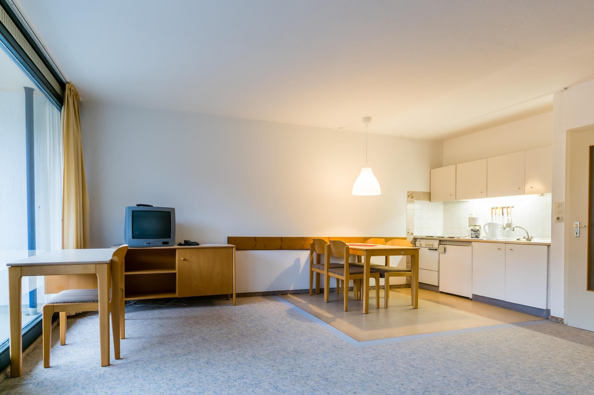 Åpent kjøkken(komfyr med kokeplater(komfyr med 4 kokeplater), vannkoker, brødrister, kaffetrakter, kjøleskap), Stue/spisestue(1 persons sovesofa, 1 persons sovesofa, TV(flatskjerm, satellitt), spisebord), soveværelse(enkeltseng, enkeltseng), bad(dusj, håndvask, toalett), Massasje, Restaurant, Innendørs lekeområde, Barneklubb, badstue(deles med andre gjester, betalt), balkon, hagemøbler, parkering, svømmebasseng(deles med andre gjester, oppvarmet, innendørs, inkludert separat barnesvømmebasseng (dybde 50cm)), heis, Håndklær/sengetøy (inkl.)
