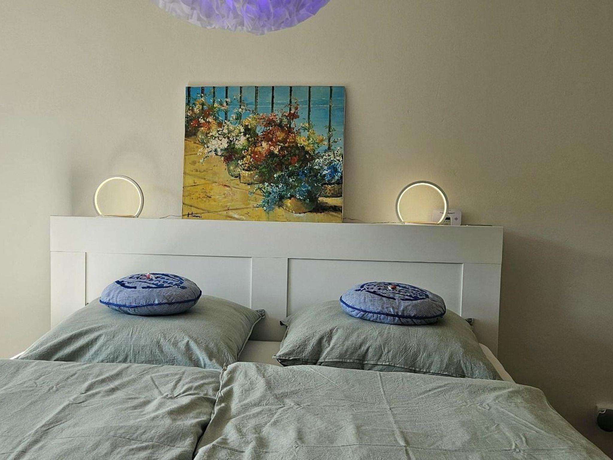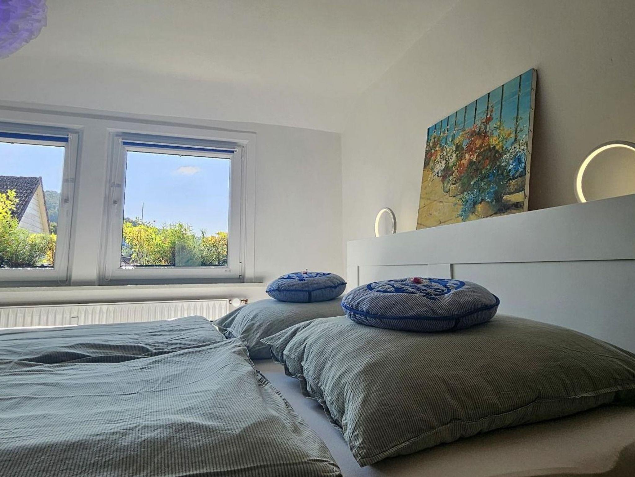 Unsere moderne Ferienwohnung bietet ein großzügiges Schlafzimmer, ein Wohnzimmer, eine Küche und ein Badezimmer. Im Schlafzimmer steht ein Doppelbett (180 x 200 cm), wodurch die Wohnung Platz für maximal zwei Erwachsene und ein Kind bis 3 Jahre bietet. Bei Bedarf kann ein Kinderreisebett (inklusive Bettwäsche) im Schlafzimmer aufgestellt werden, ebenso wie ein Kinderhochstuhl, beides ohne zusätzliche Kosten. Handtücher und bezogene Betten sind ebenfalls vorhanden. Die Ferienwohnung liegt im Dachgeschoss auf der 2. Etage,
