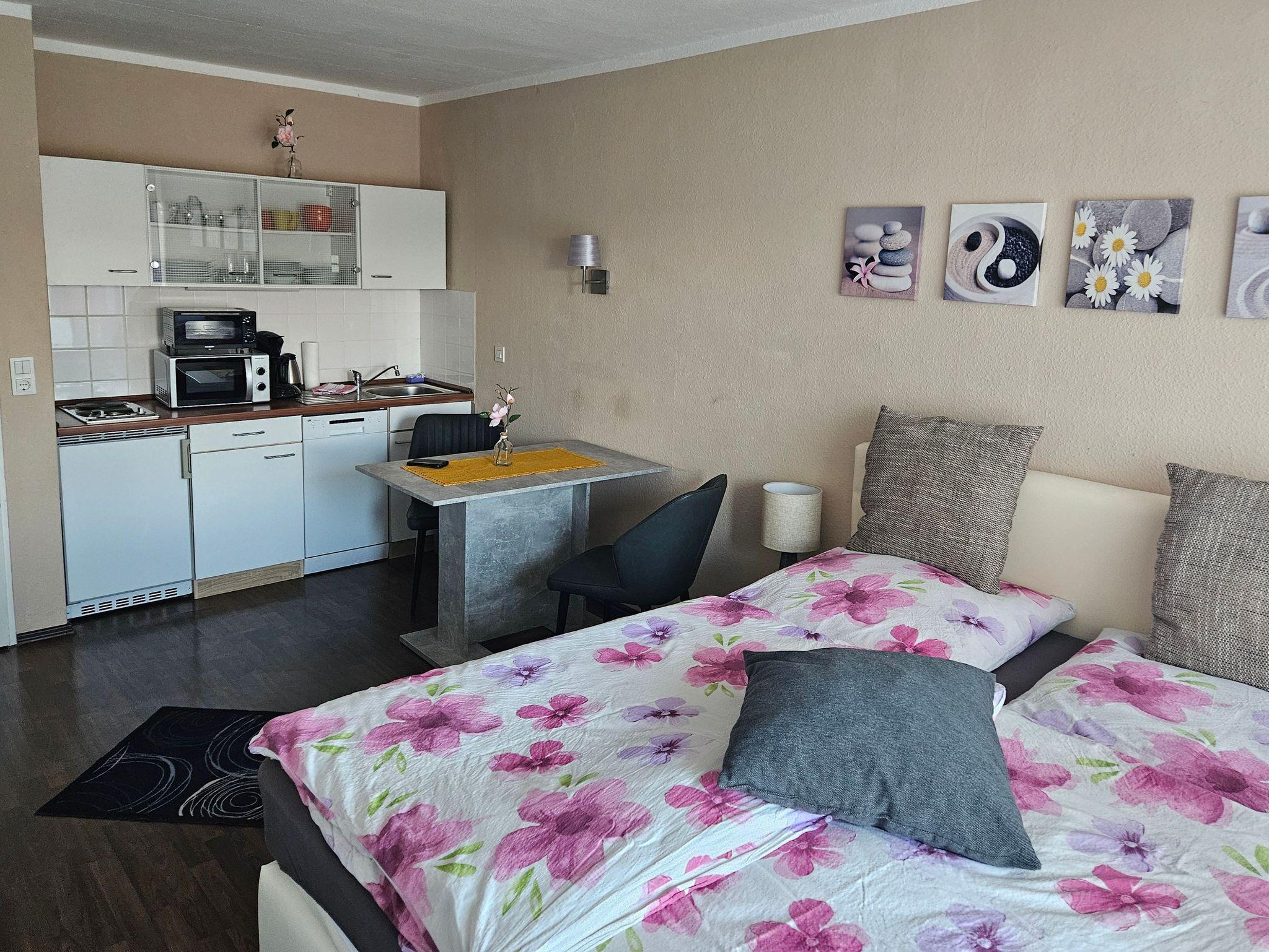 Auf knapp 28 Quadratmetern Wohnfläche, finden Sie einen Ihren Urlaubsbedürfnissen angemessenen Wohnraum für 2 Personen. Ob Sie Ihr Sonnenbad auf dem Balkon nehmen und den Blick ins Grüne genießen oder aber kurz den hauseigenen Wellnessbereich mit Schwimmbad und Sauna nutzen mögen. Die Wohnung befindet sich Hochparterre.