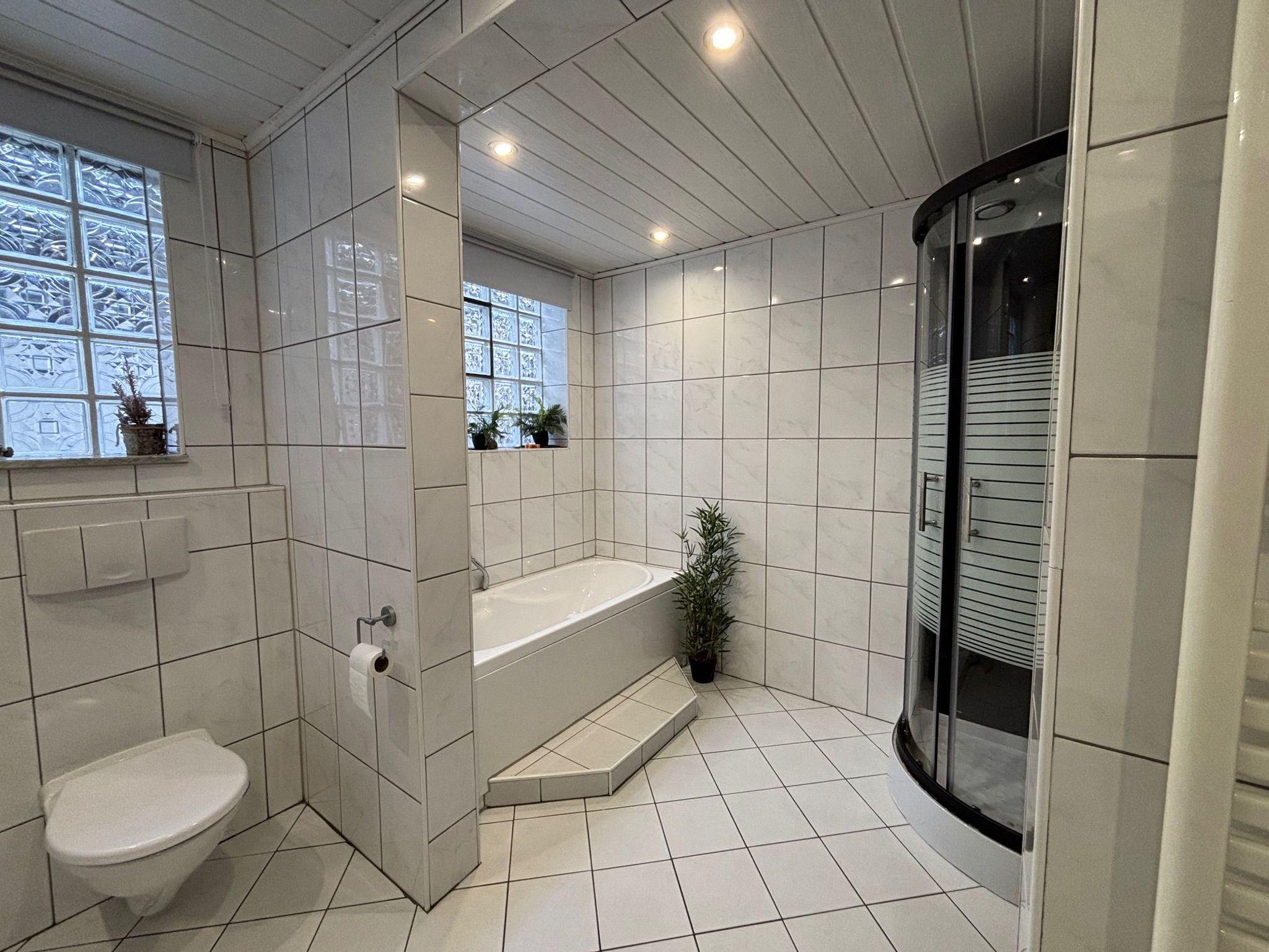 Die helle, geräumige Ferienwohnung besteht aus Flur, Wohnzimmer, Küche und 2 Schlafzimmern. An eines davon schließt direkt ein kleines Bad mit WC und Waschbecken an. Darüber hinaus gibt es weiteres großes Bad mit Badewanne, separater Dusche, Waschtisch und WC.