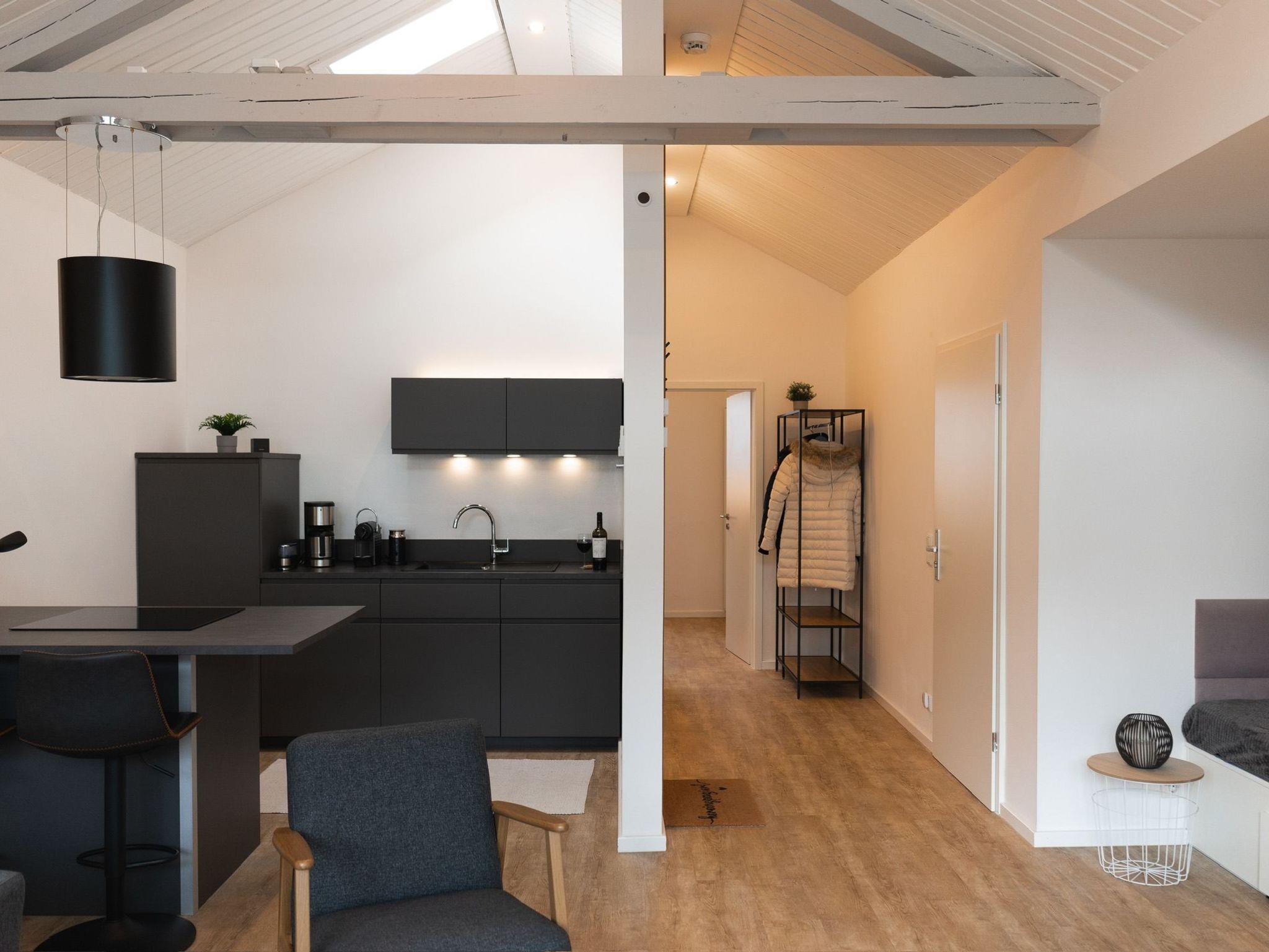 Die stilvoll eingerichtete Ferienwohnung befindet sich im 1. Obergeschoss und ist bequem über eine Haustreppe erreichbar. Auf ca. 52m² erwartet Sie ein durchdachtes Raumkonzept mit viel Komfort und Wohlfühlatmosphäre.