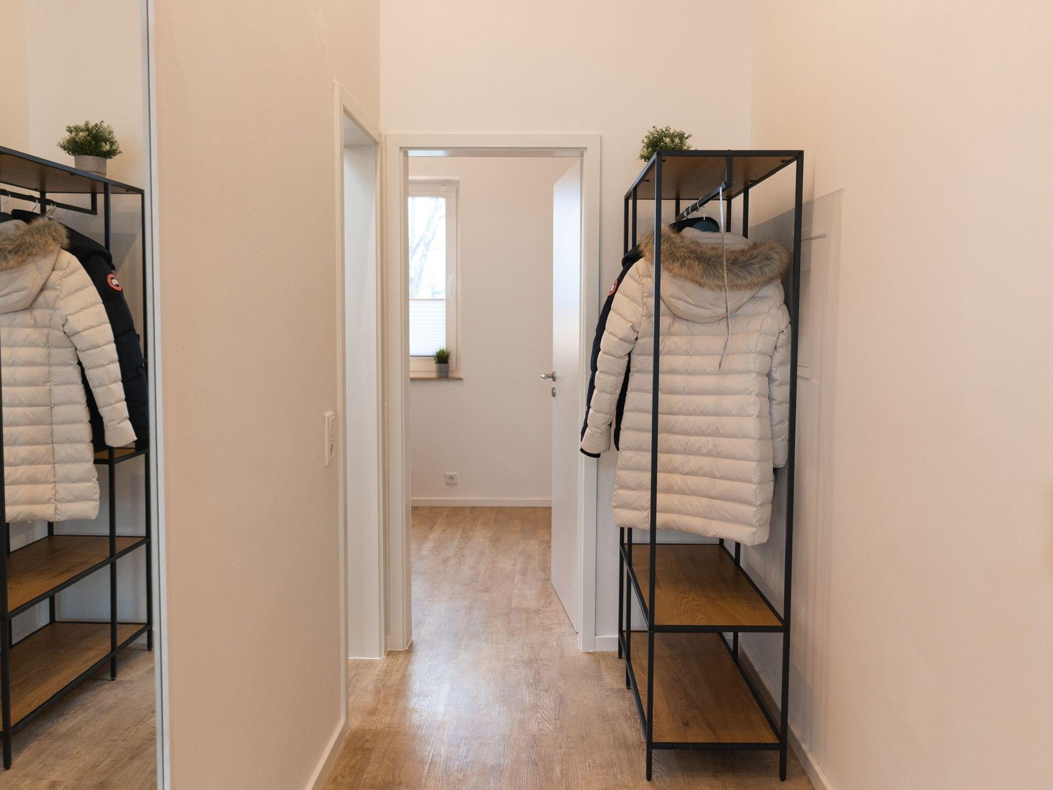 Der großzügige Eingangsflur bietet ausreichend Platz für Ihre Garderobe und führt direkt in den offenen, lichtdurchfluteten Wohnbereich. Hier lädt ein modernes Wohnzimmer mit integrierter, voll ausgestatteter Küche zum Entspannen, Kochen und Genießen ein.