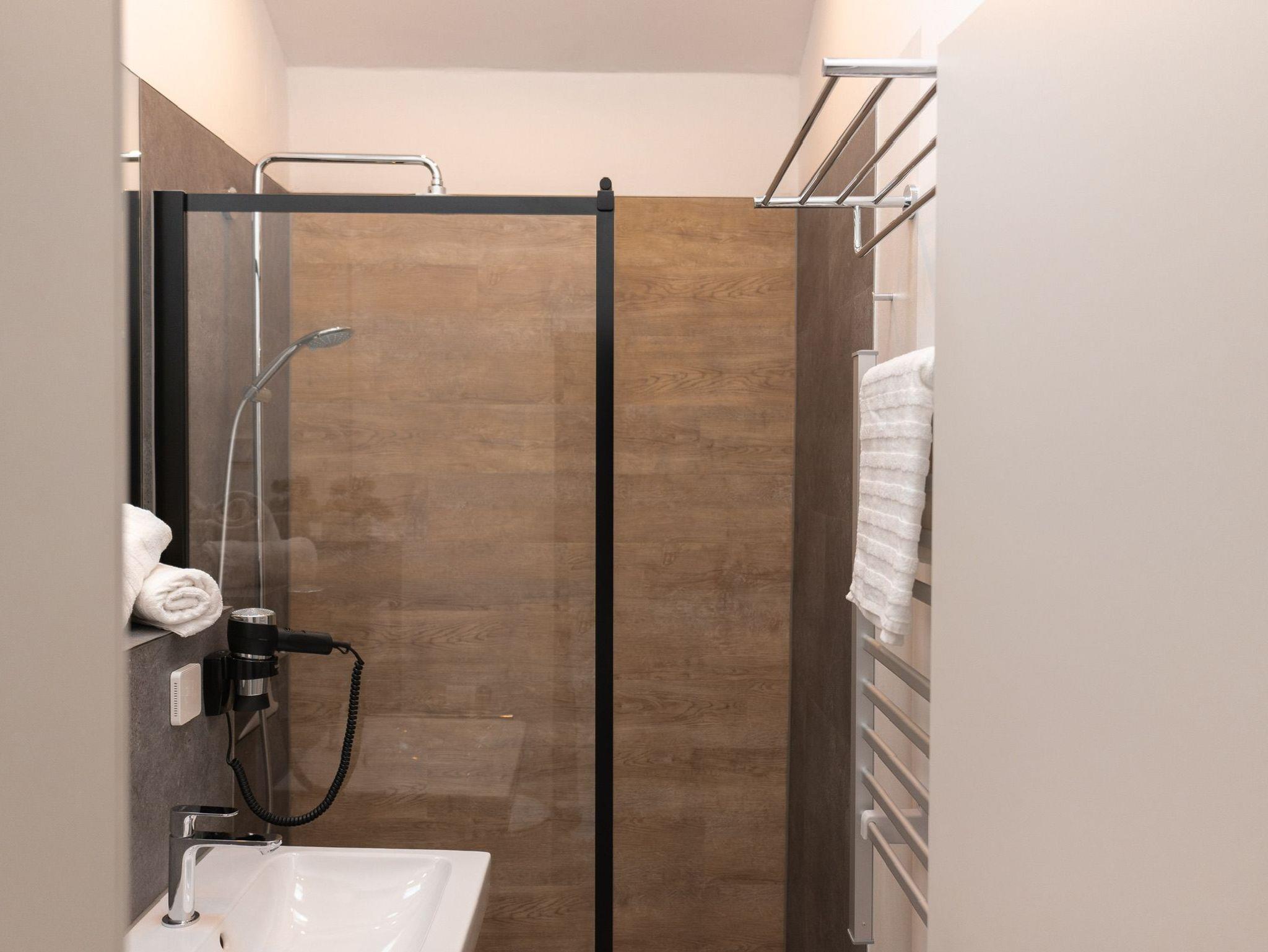 Das Badezimmer ist funktional, modern und gepflegt ideal für Ihren Aufenthalt.