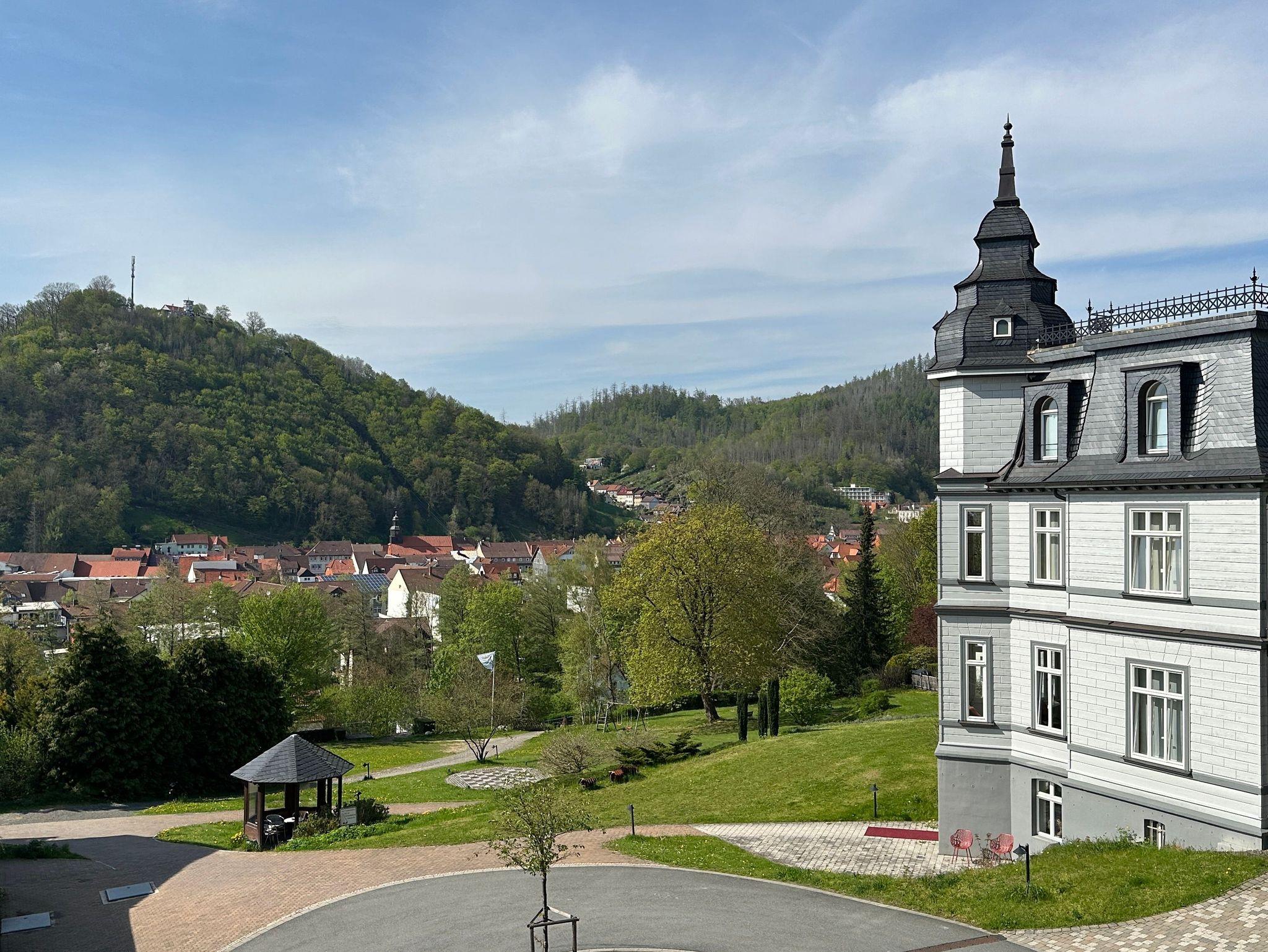 Von hier aus genießen Sie einen atemberaubenden Blick auf den Hausberg, den Bismarckturm sowie die beeindruckende Berglandschaft des Harzes.
