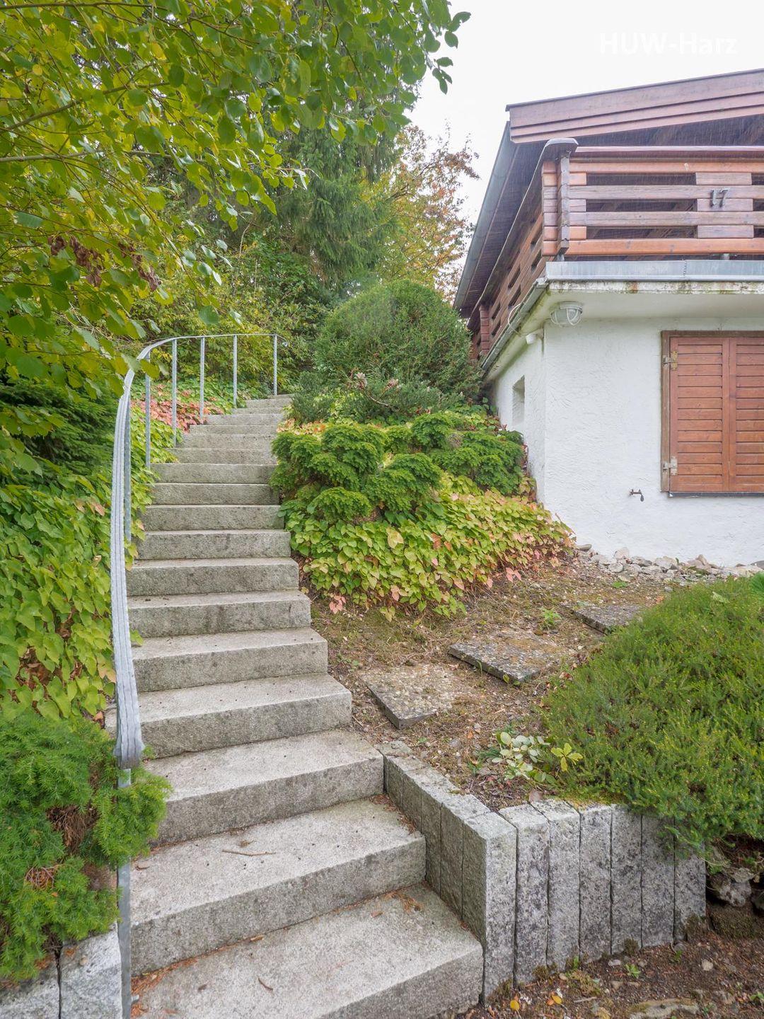 Es gibt einen schönen Garten mit Gartenmöbeln, die für Sie bereit stehen. Auf der großen überdachten Terrasse mit Blick auf die Burgruine Scharzfels gibt es einen Esstisch mit Bank. Weiterhin gibt es einen großen, überdachten Balkon mit Außenkamin für herrliche Abende am Kaminfeuer.