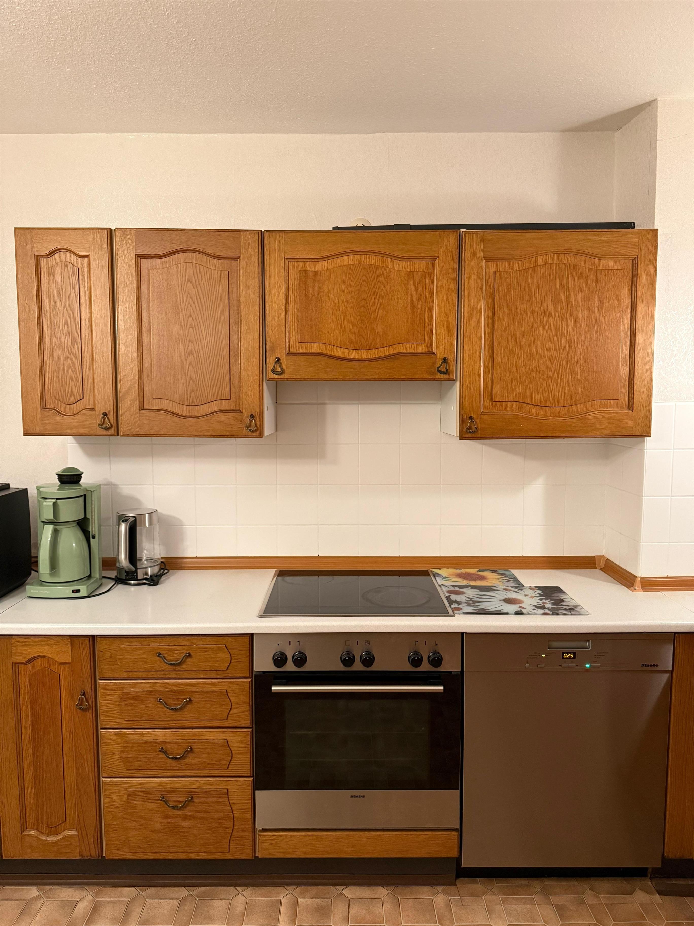 Die Küche war wirklich super gut ausgestattet und ließ keine Wünsche offen. Von modernen Küchenutensilien bis hin zu einer Vielzahl von Geschirr war alles vorhanden, was man für die Zubereitung von Mahlzeiten benötigt. Die gemütliche, aber ältere Ausstattung verlieh der Küche einen besonderen Charme und machte das Kochen zu einem Vergnügen.