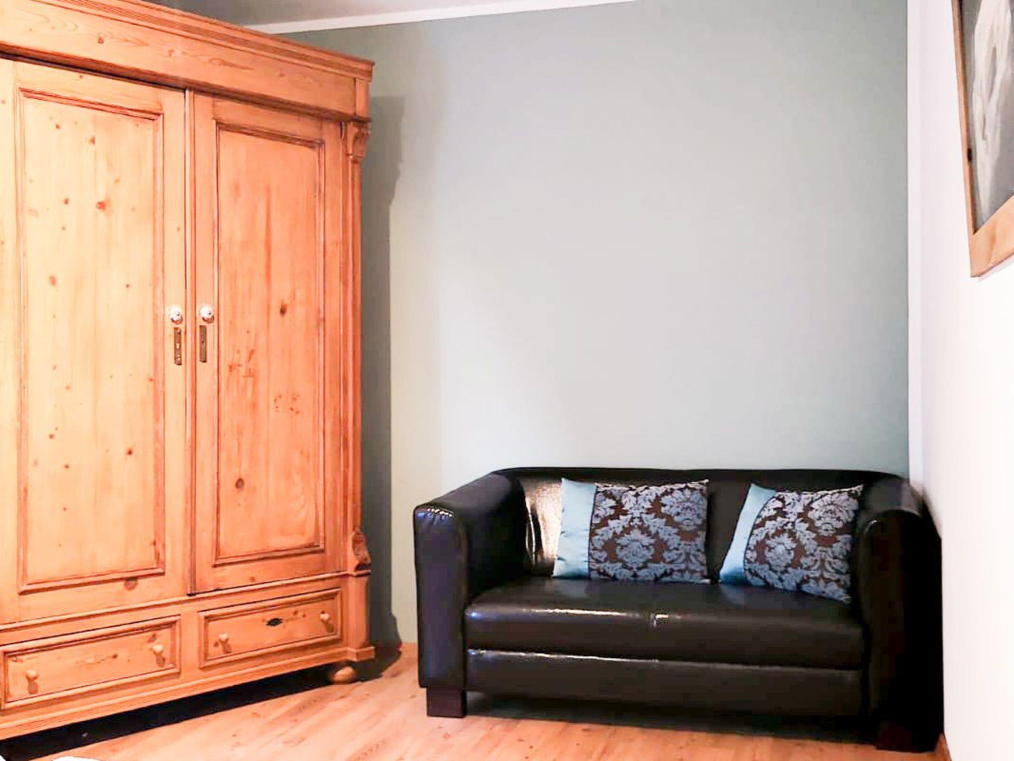 The living room is furnished with a period cupboard, sofa bed (150x200cm), inviting seating, LCD-HD TV and fireplace. Books, games and a CD radio await your visit.