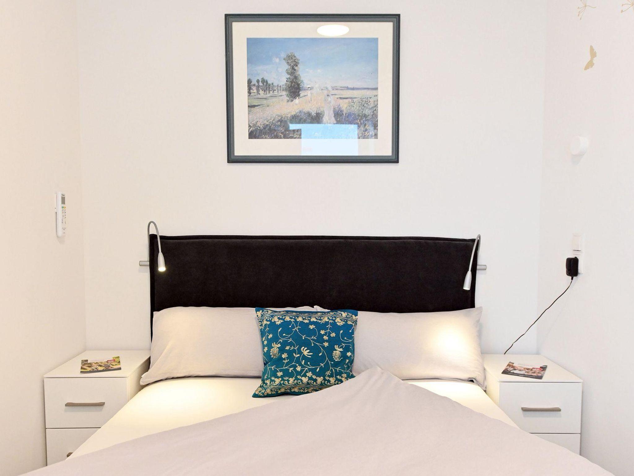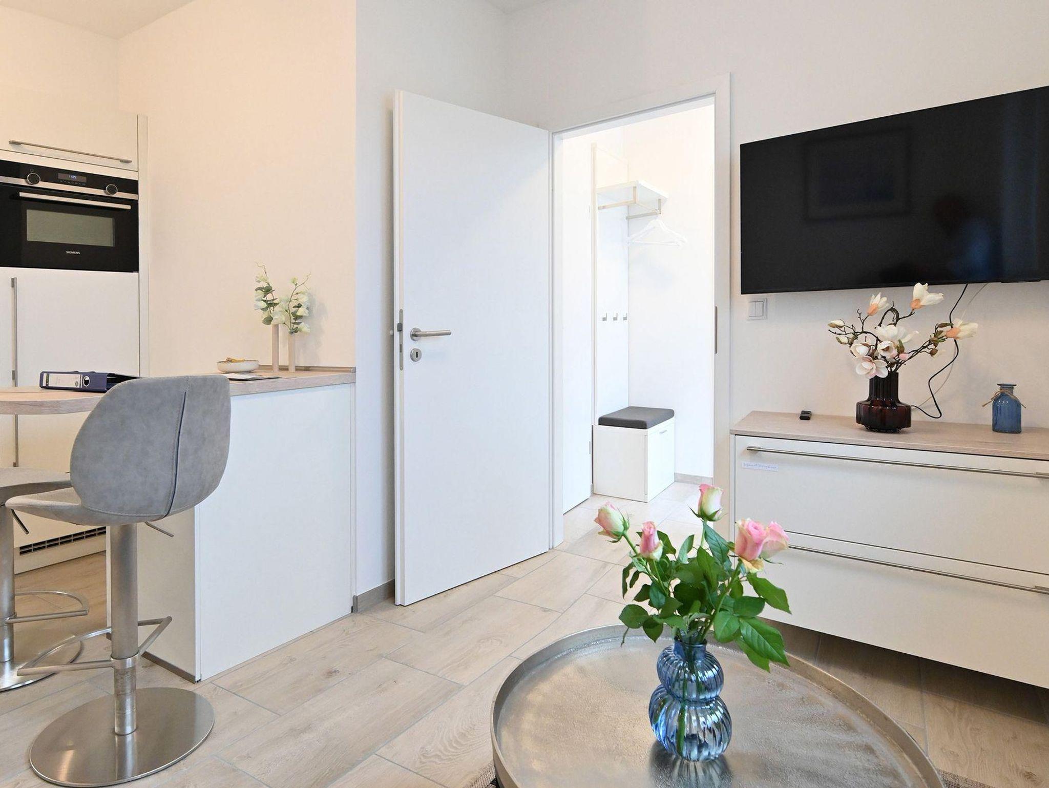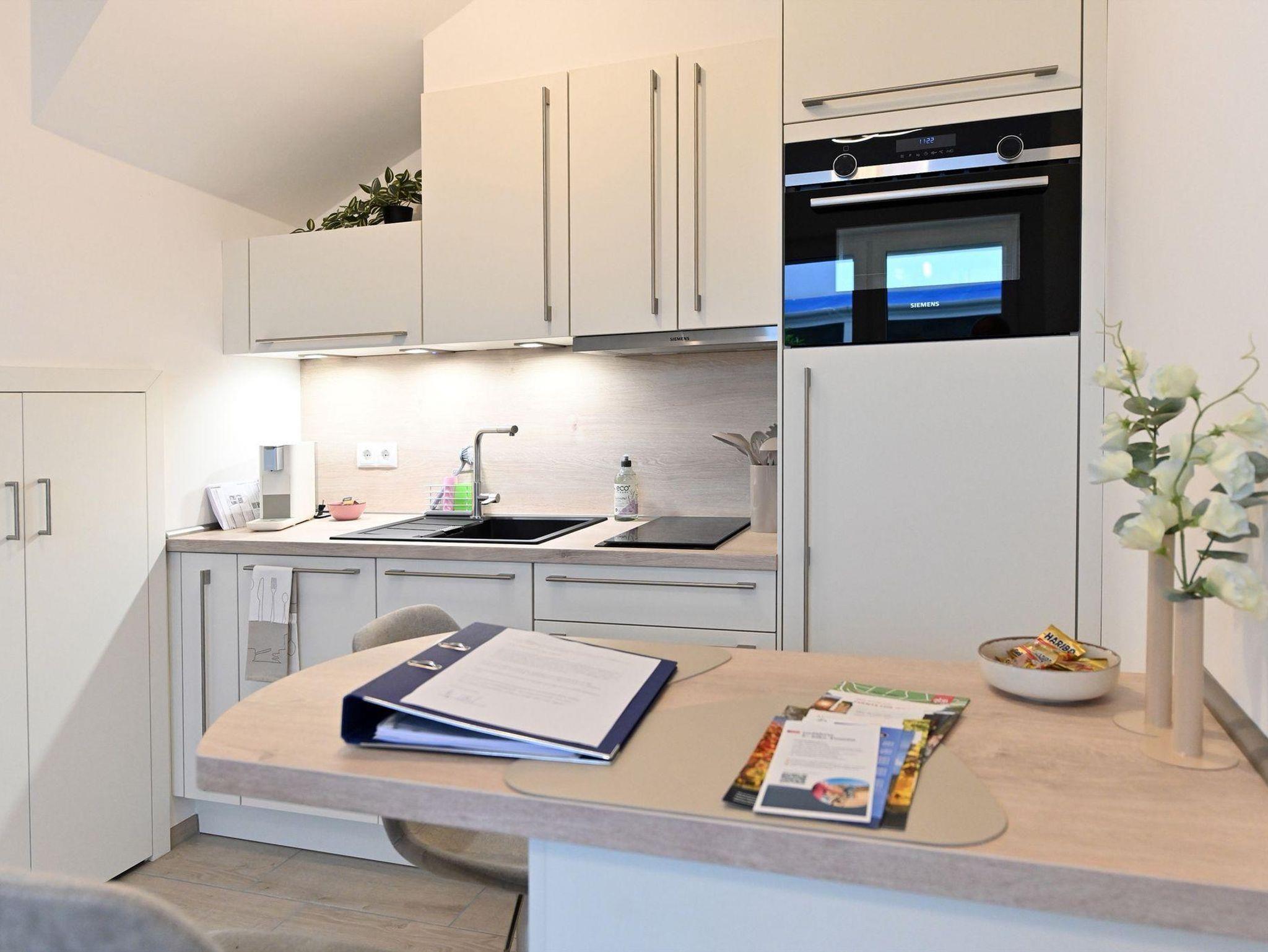 Die Ferienwohnung „Kleines Resort“ bietet auf 37?m² optimalen Komfort für erholsame Tage. Das separate Schlafzimmer ist mit einem hochwertigen Boxspringbett (140 x 200?cm), Kleiderschrank und Klimagerät ausgestattet und garantiert erholsamen Schlaf. Der modern eingerichtete Wohnbereich mit Küche lädt zum Entspannen ein und verfügt über Magenta-TV und kostenloses WLAN. Das Bad überzeugt mit Regendusche, WC und Waschtisch, die Küche mit Spülmaschine. Ein ganz besonderer Vorteil: Ihr eigener „Privat Space“ im Innenhof, perfekt, um die Ruhe zu genießen und den Alltag hinter sich zu lassen.